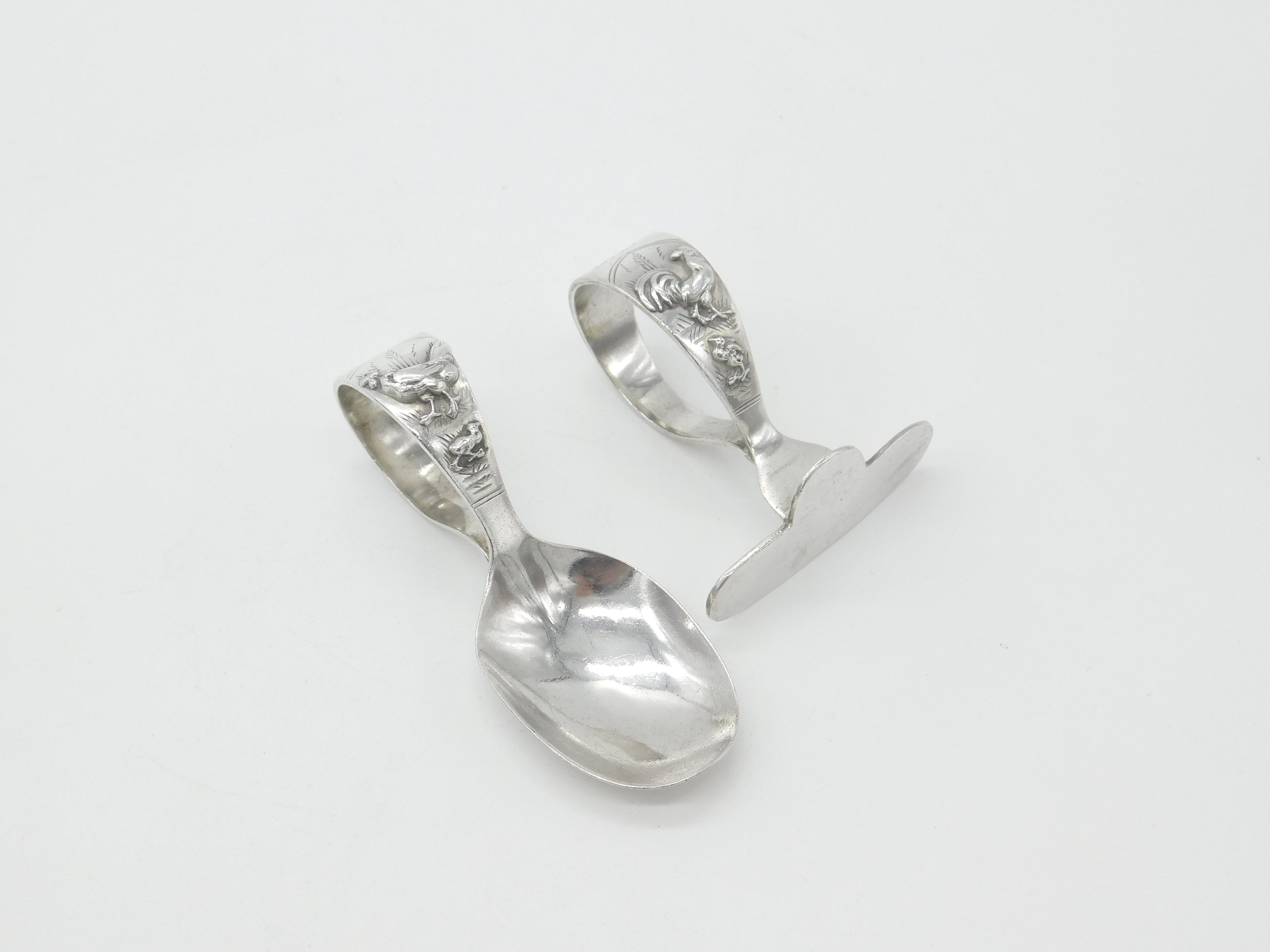 Sterling Silver Mother Hen & Chick Baby Pusher & Feeder 1938 Sheffield Antique