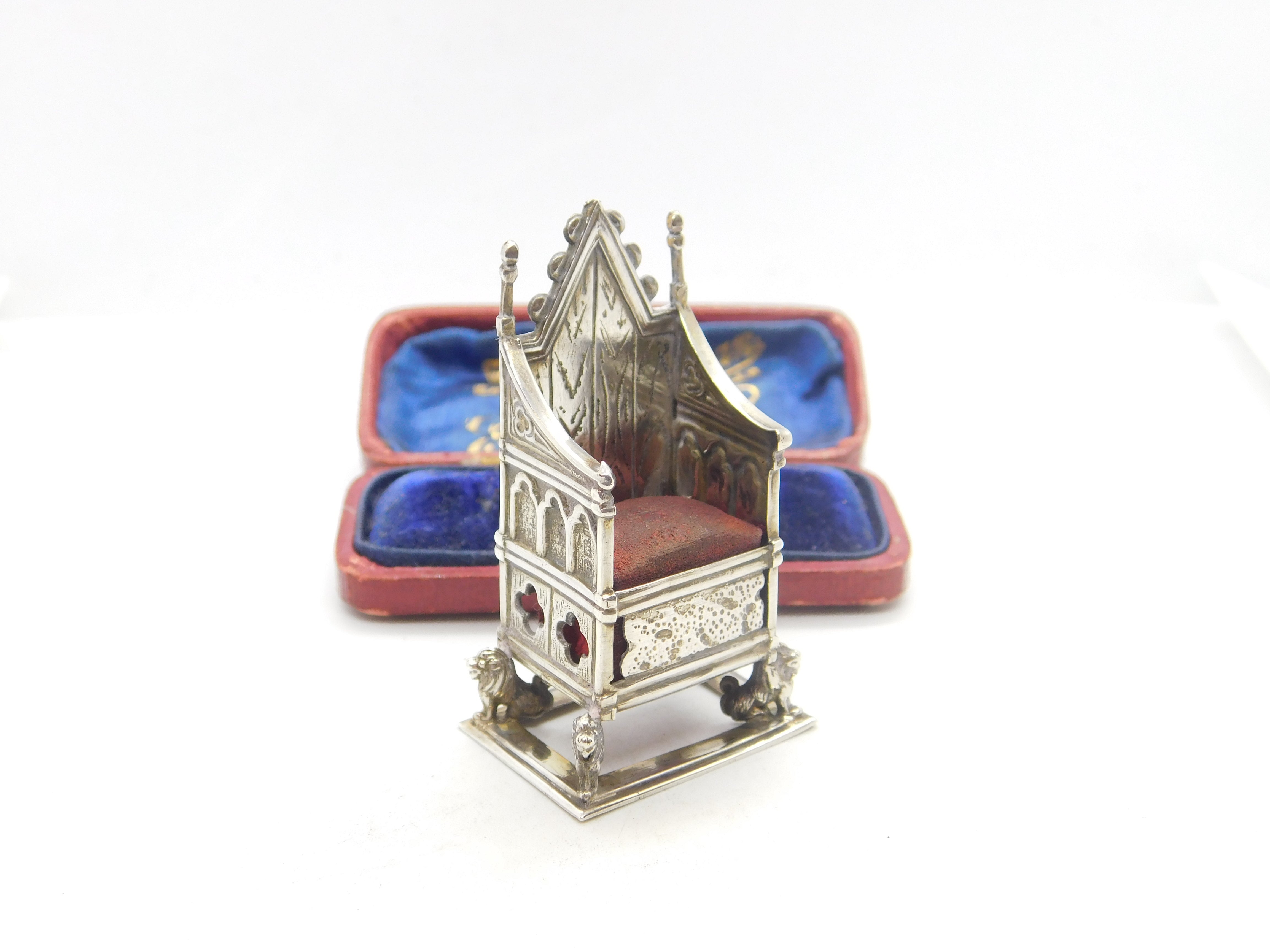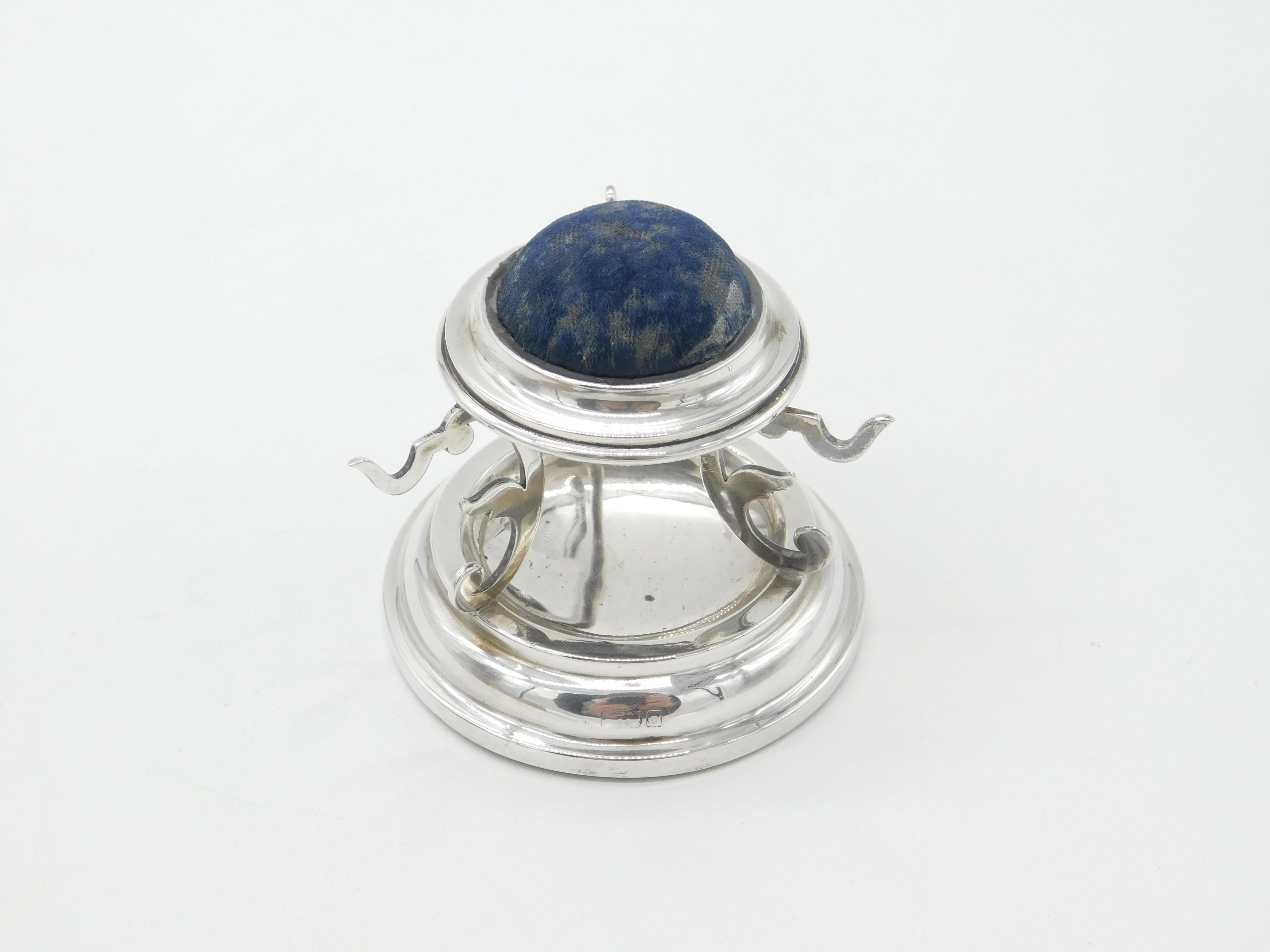 Edwardian Sterling Silver Coronation Throne Pin Cushion 1910 Birmingham Antique