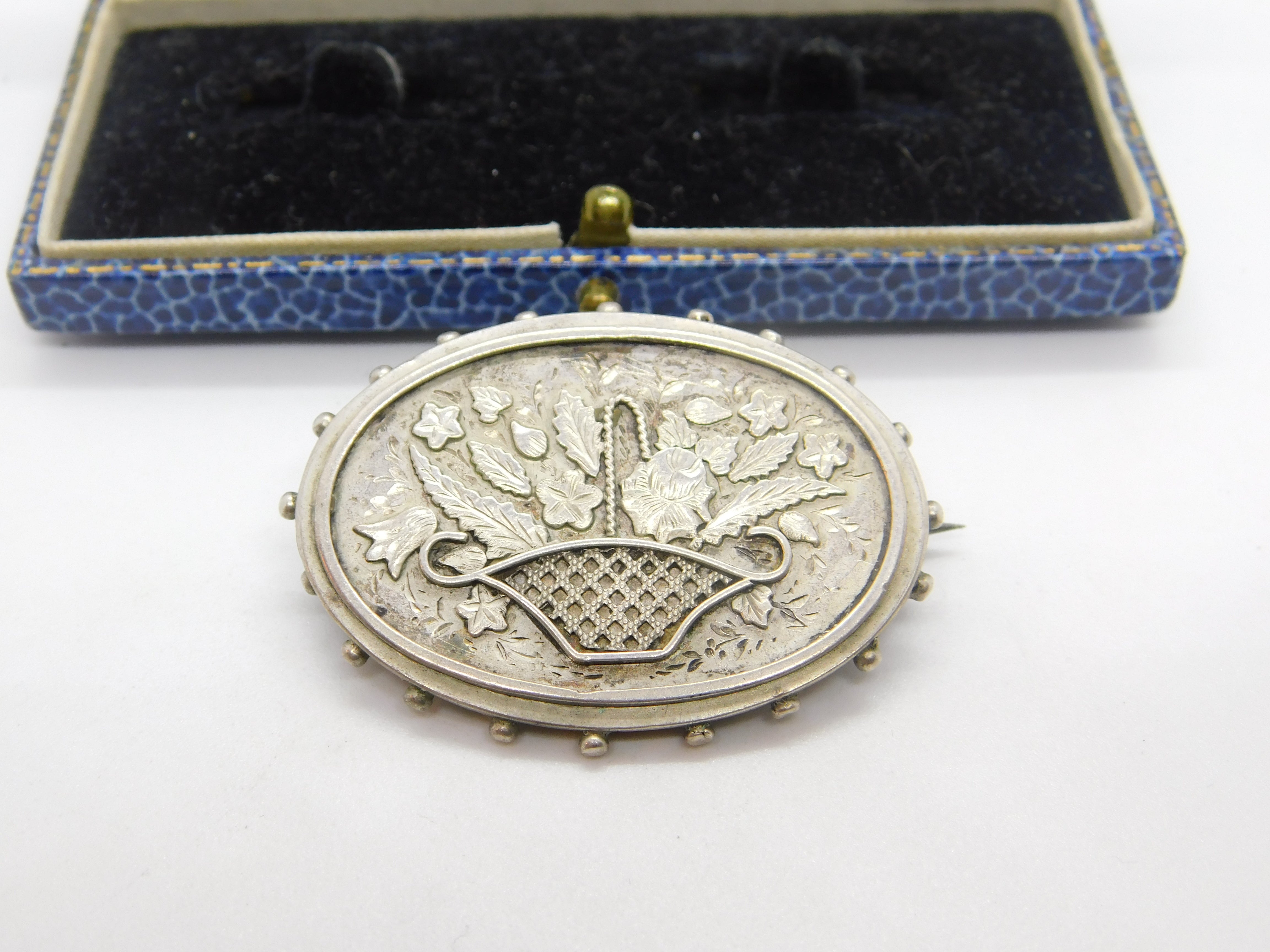 Victorian Sterling Silver Flower Basket Sweetheart Brooch Antique c1880