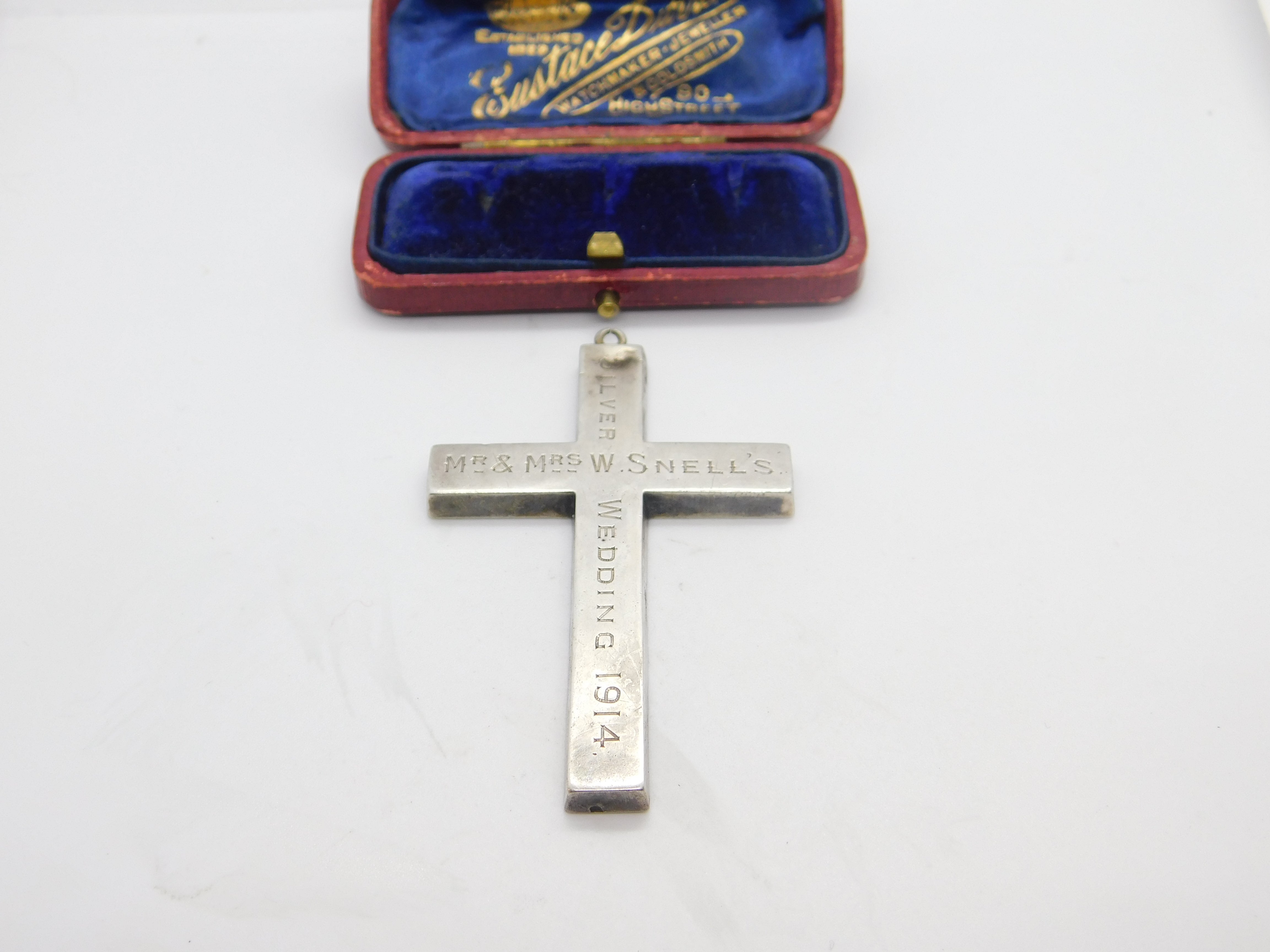 Large Sterling Silver 'Mr & Mrs W. Snell's Silver Wedding' Cross Pendant 1914