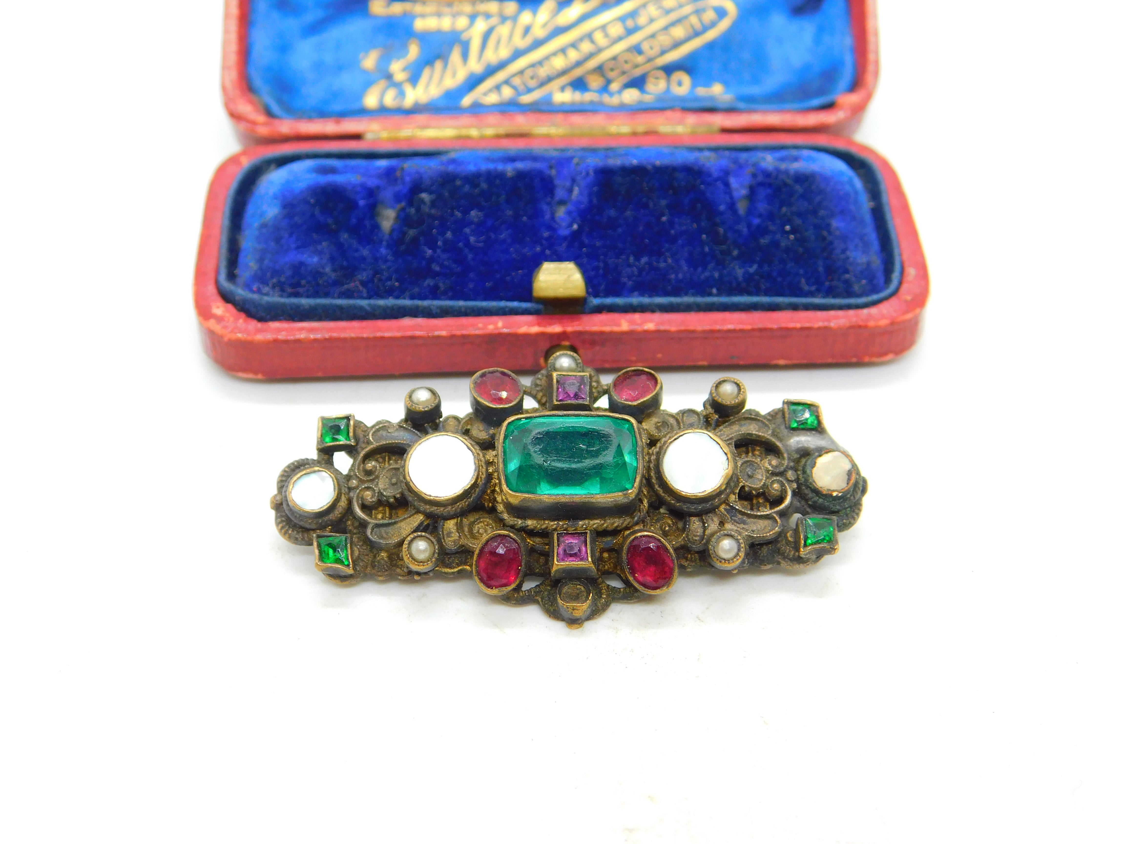 Austro Hungarian Sterling Silver Emerald Paste Brooch Antique Victorian c1860