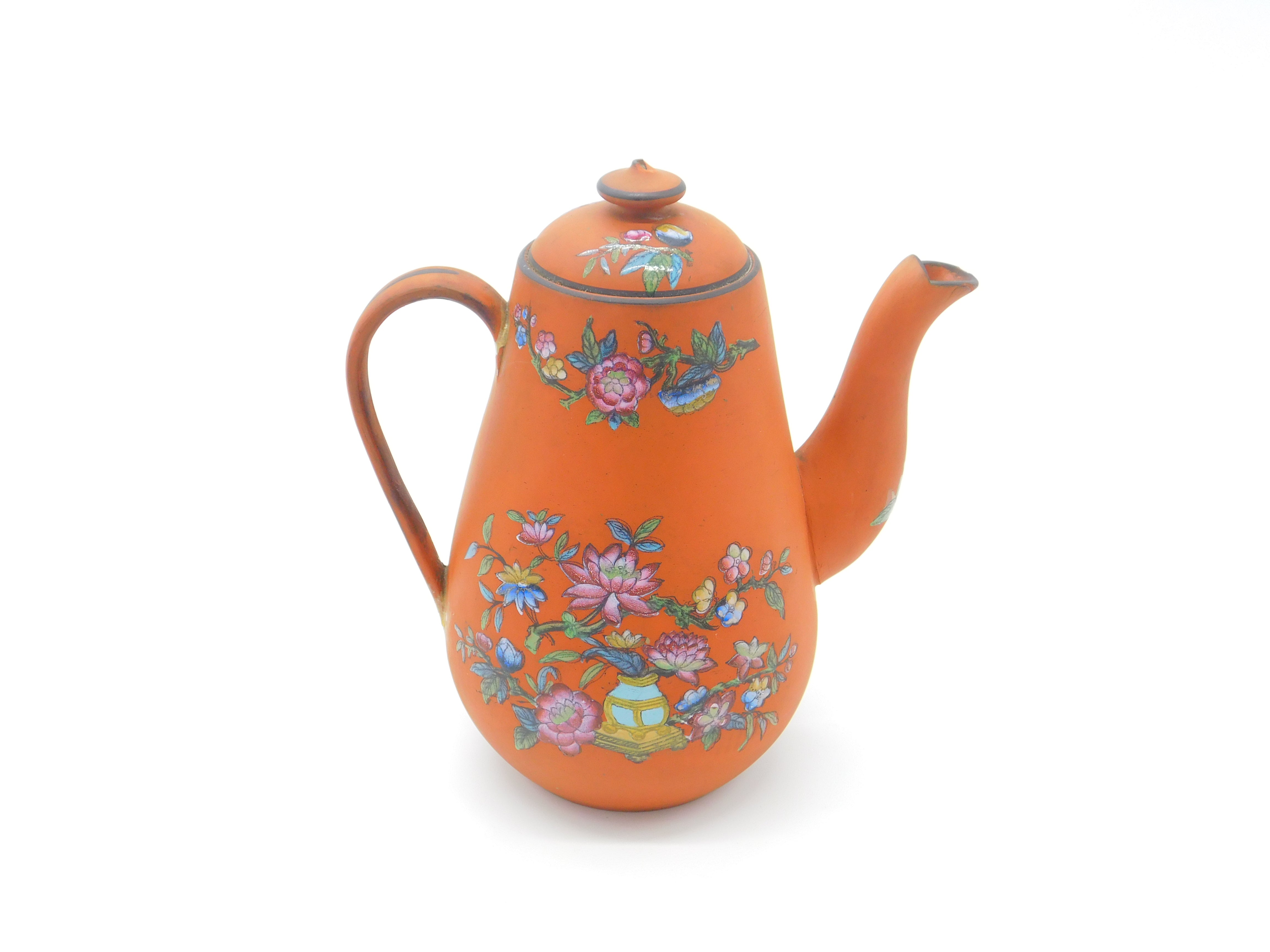 Qing Dynasty Pear Form Chinese Yixing Stoneware Famille Rose Teapot Antique c1850
