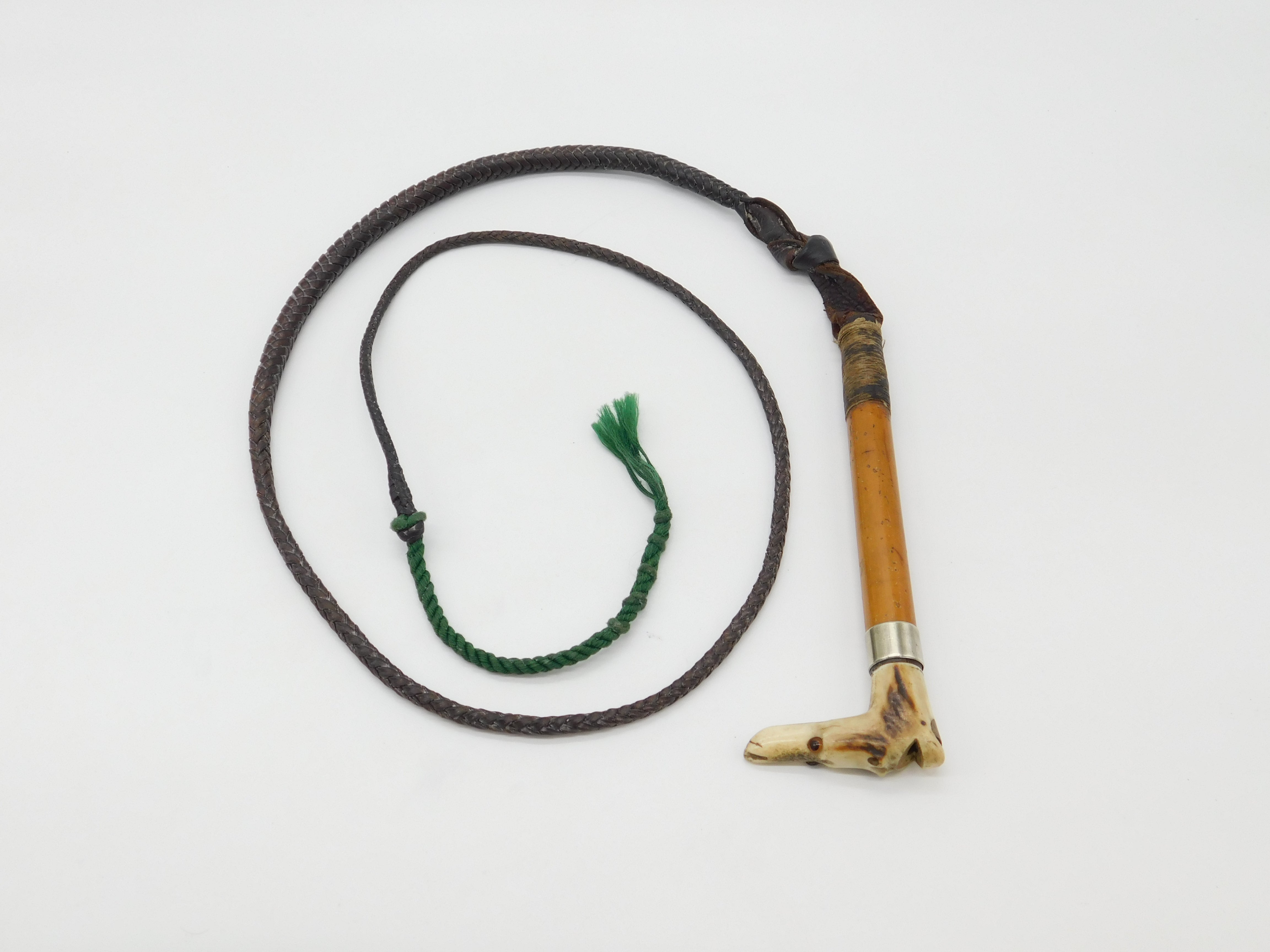 Victorian Leather Dog Form Beagling Crop Whip With Dog Whistle Antique c1890