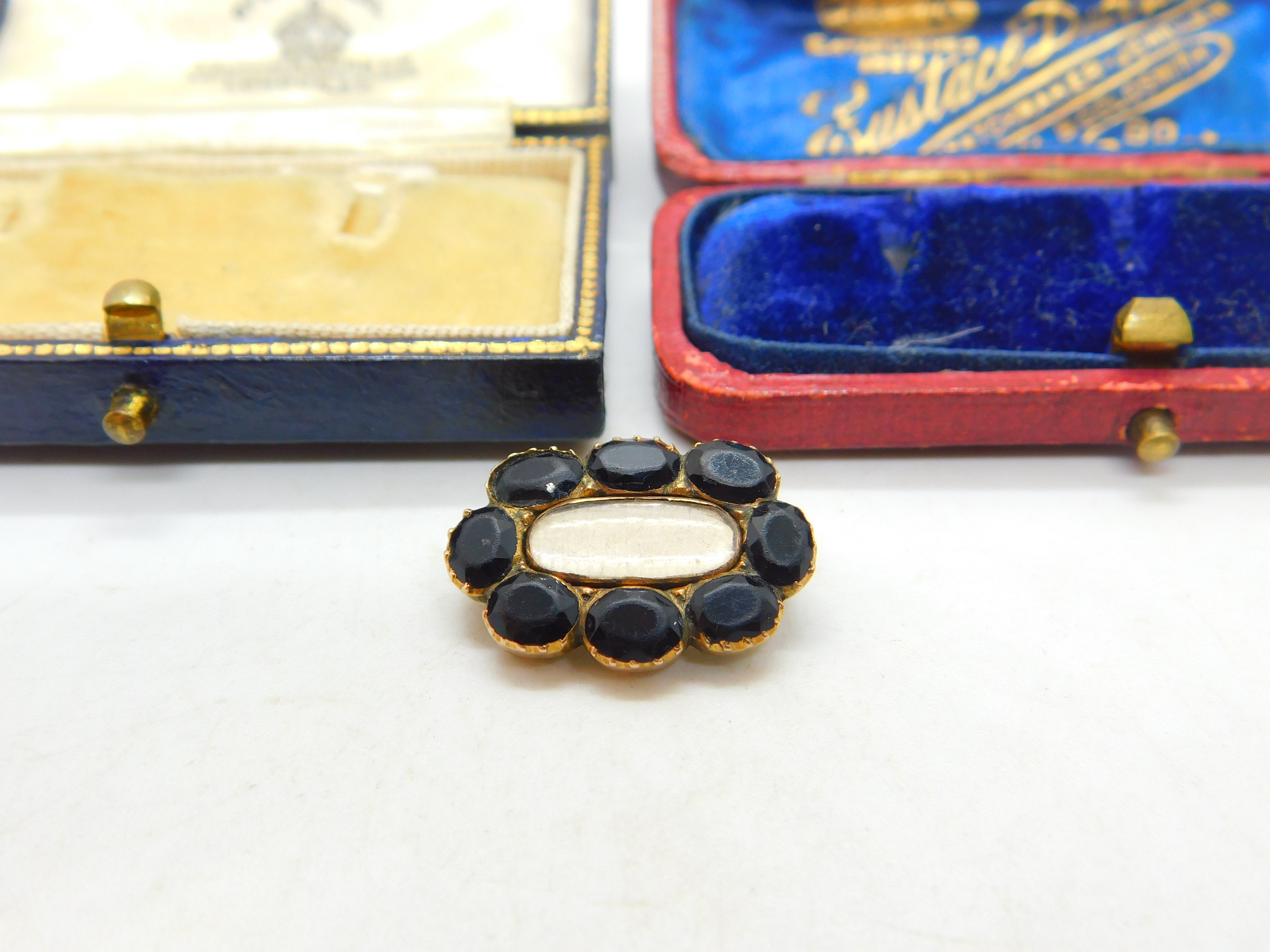 Georgian 9ct Rose Gold & Black Glass Mourning Brooch Antique c1820