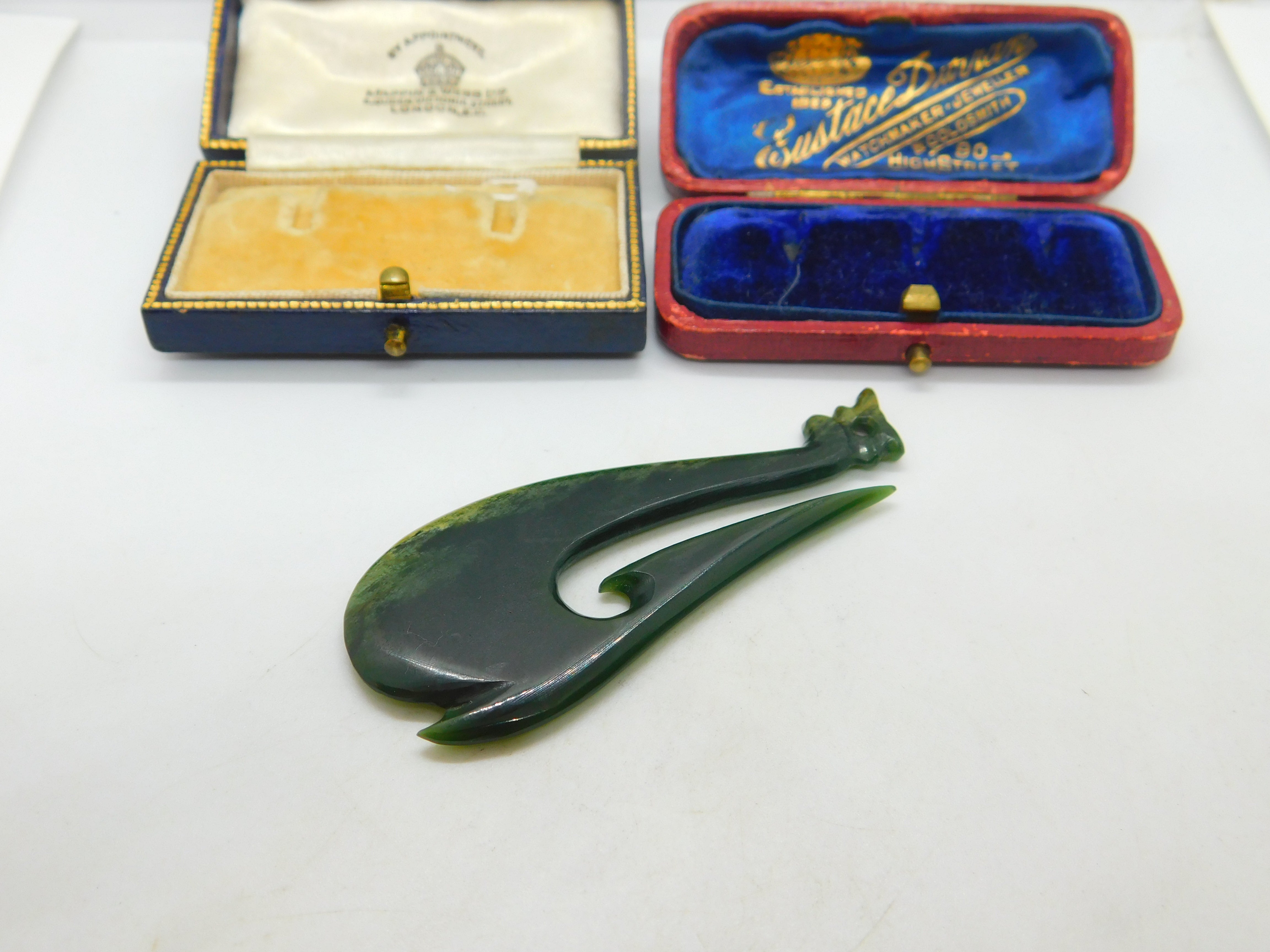New Zealand Maori Nephrite Jade Carved Fish Hook Pendant Vintage c1970
