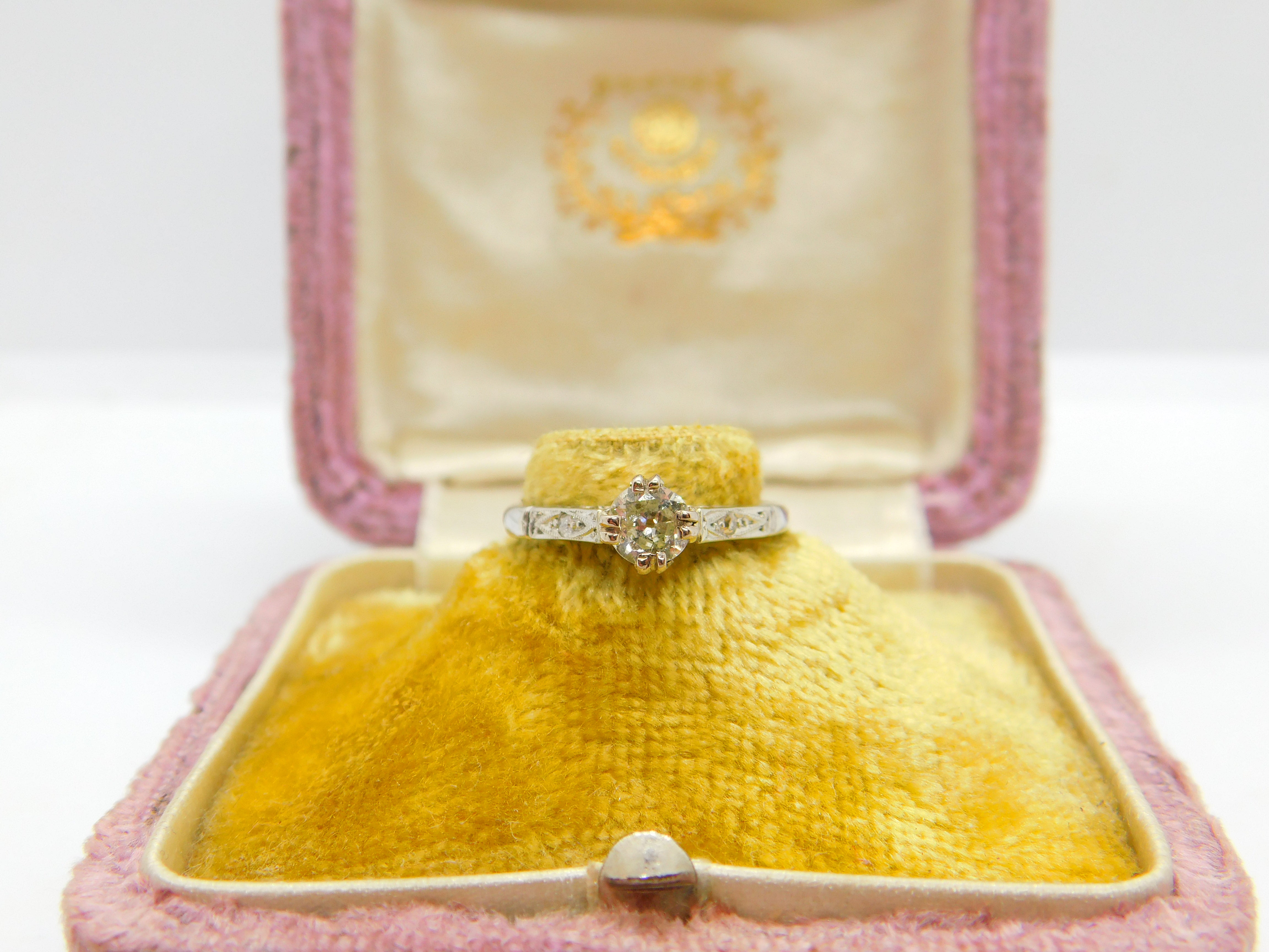 18ct Gold & Platinum Set 0.25ct Diamond Solitaire Ring Antique c1920 Art Deco