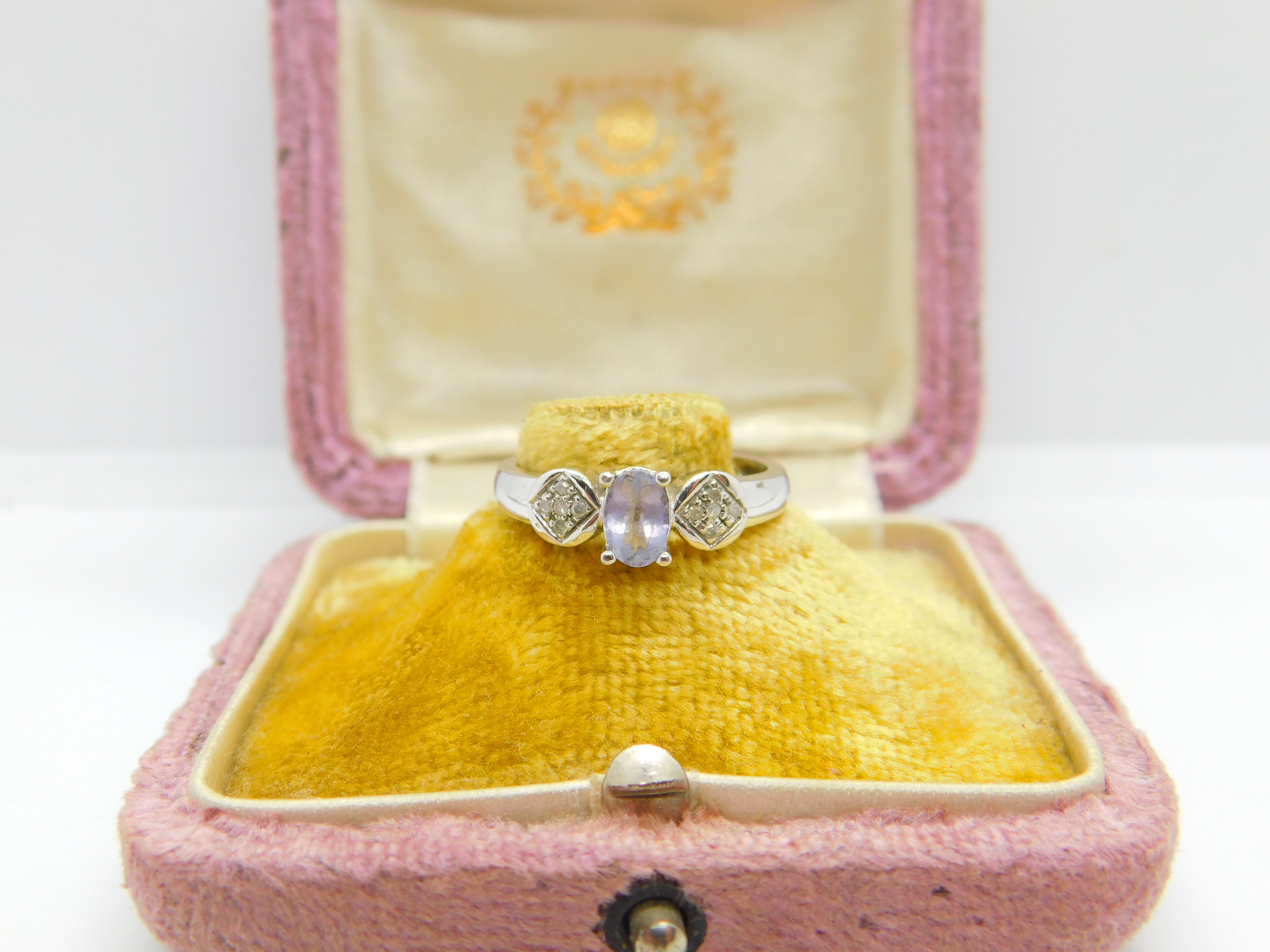 9ct White Gold, Tanzanite & Diamond Paste Dress Ring Vintage 2006 London