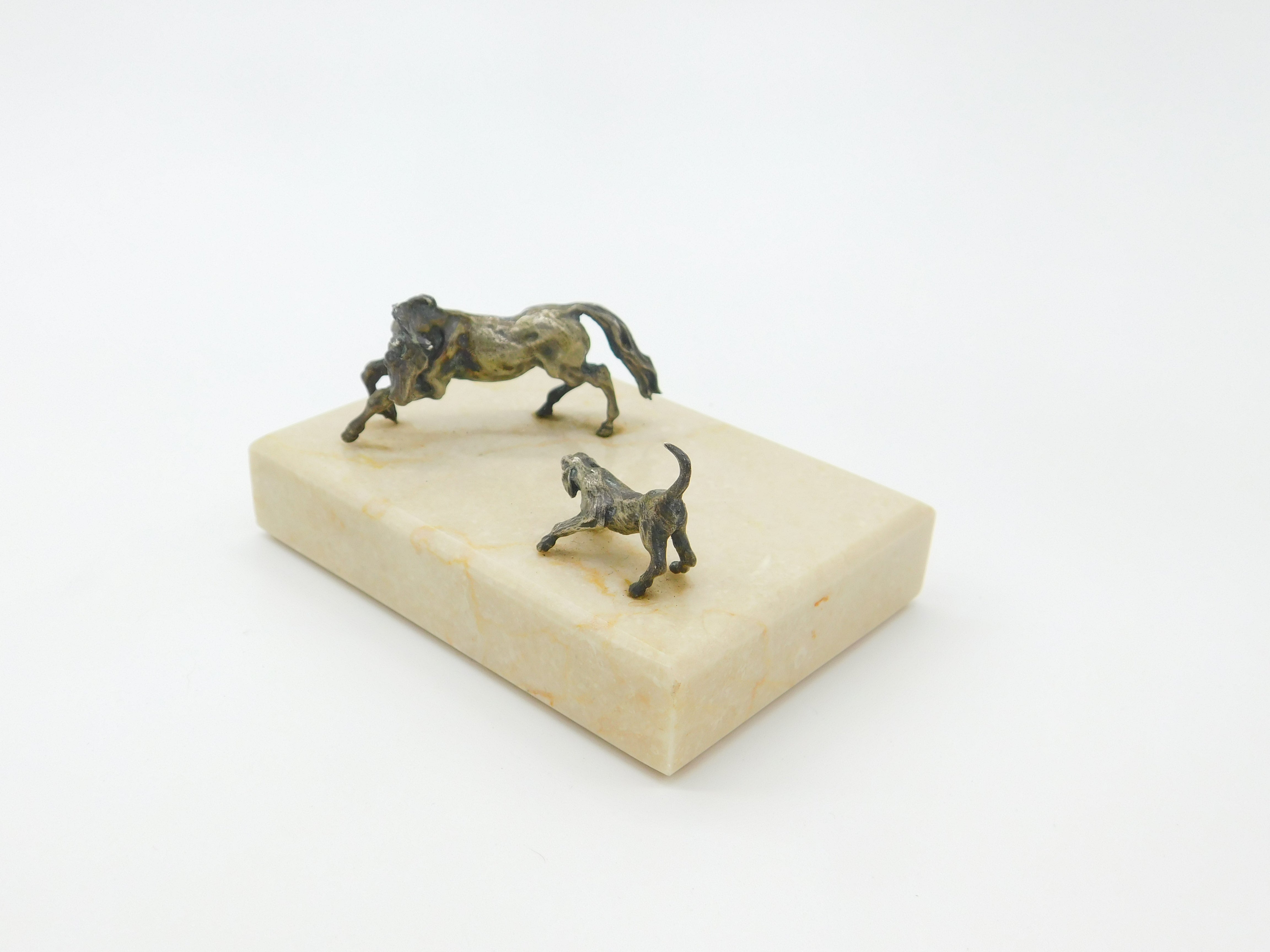 Bronze On Marble Base Sculpture Horse & Hound Vintage c1970 Silvered Bronze