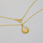14ct Yellow Gold & Gilt Set Cabochon Opal Pendant Necklace Vintage c1970