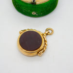15ct Yellow Gold & Carnelian Set Spinner Fob Pendant Antique 1914 Chester