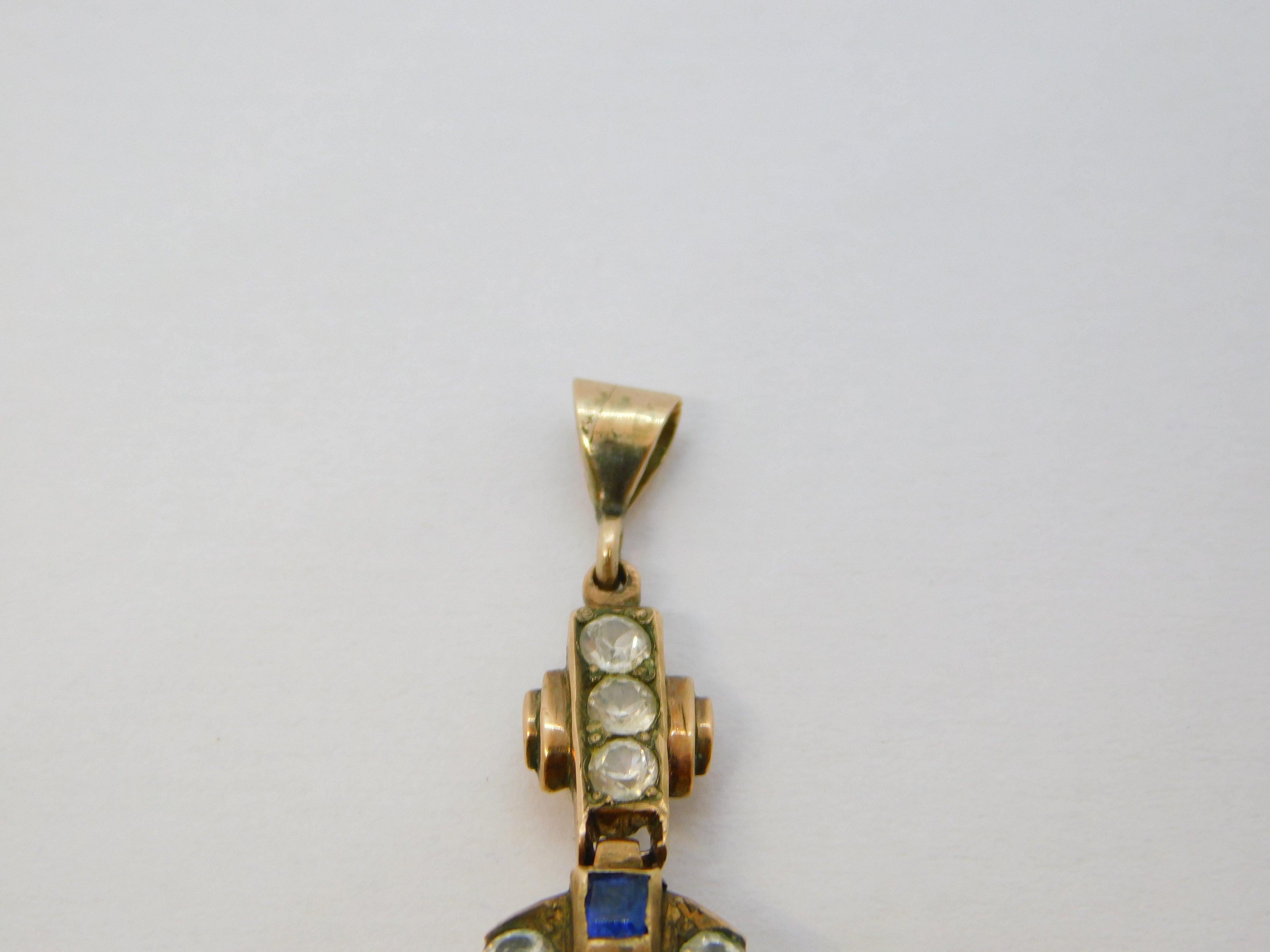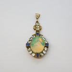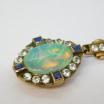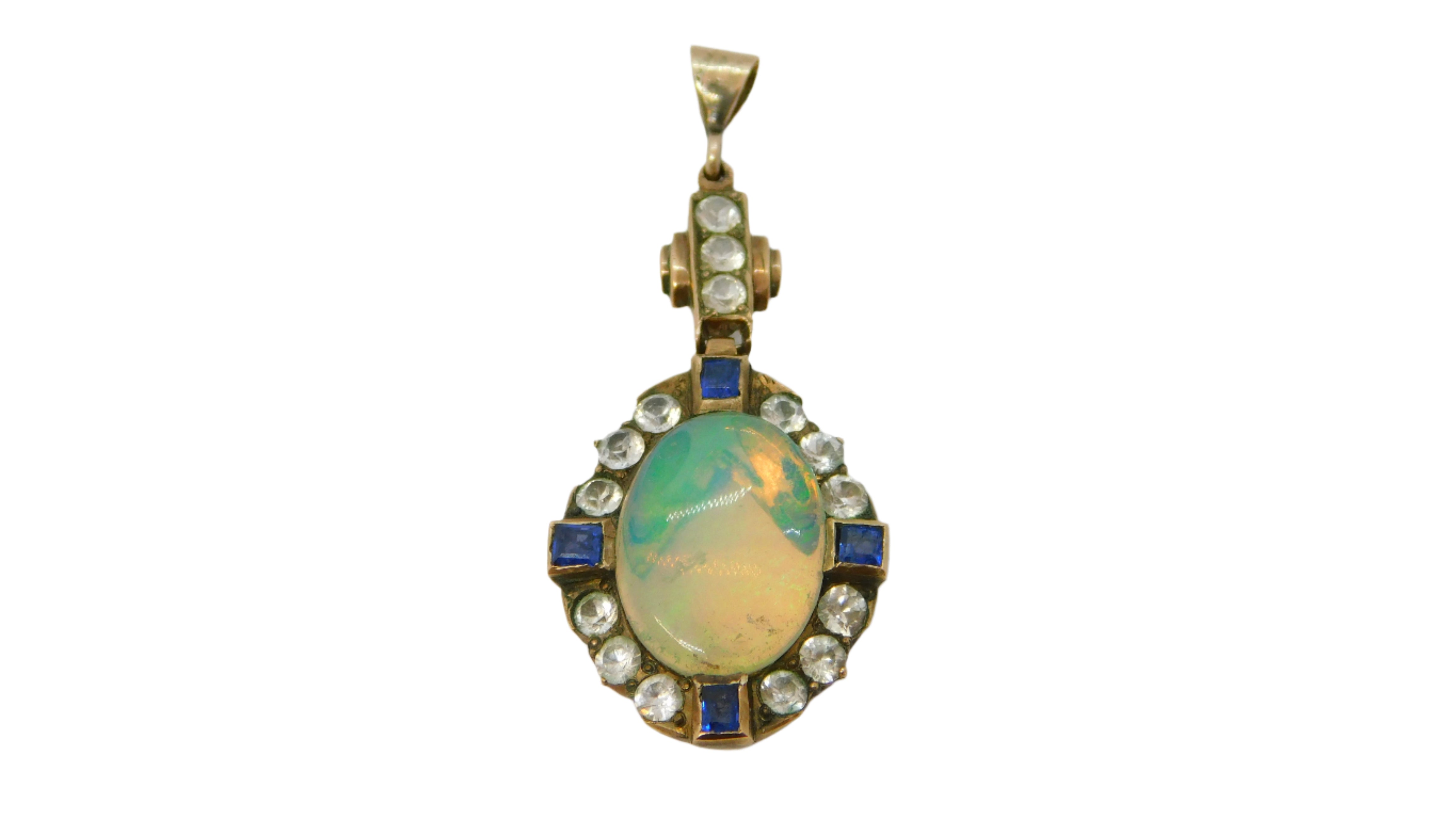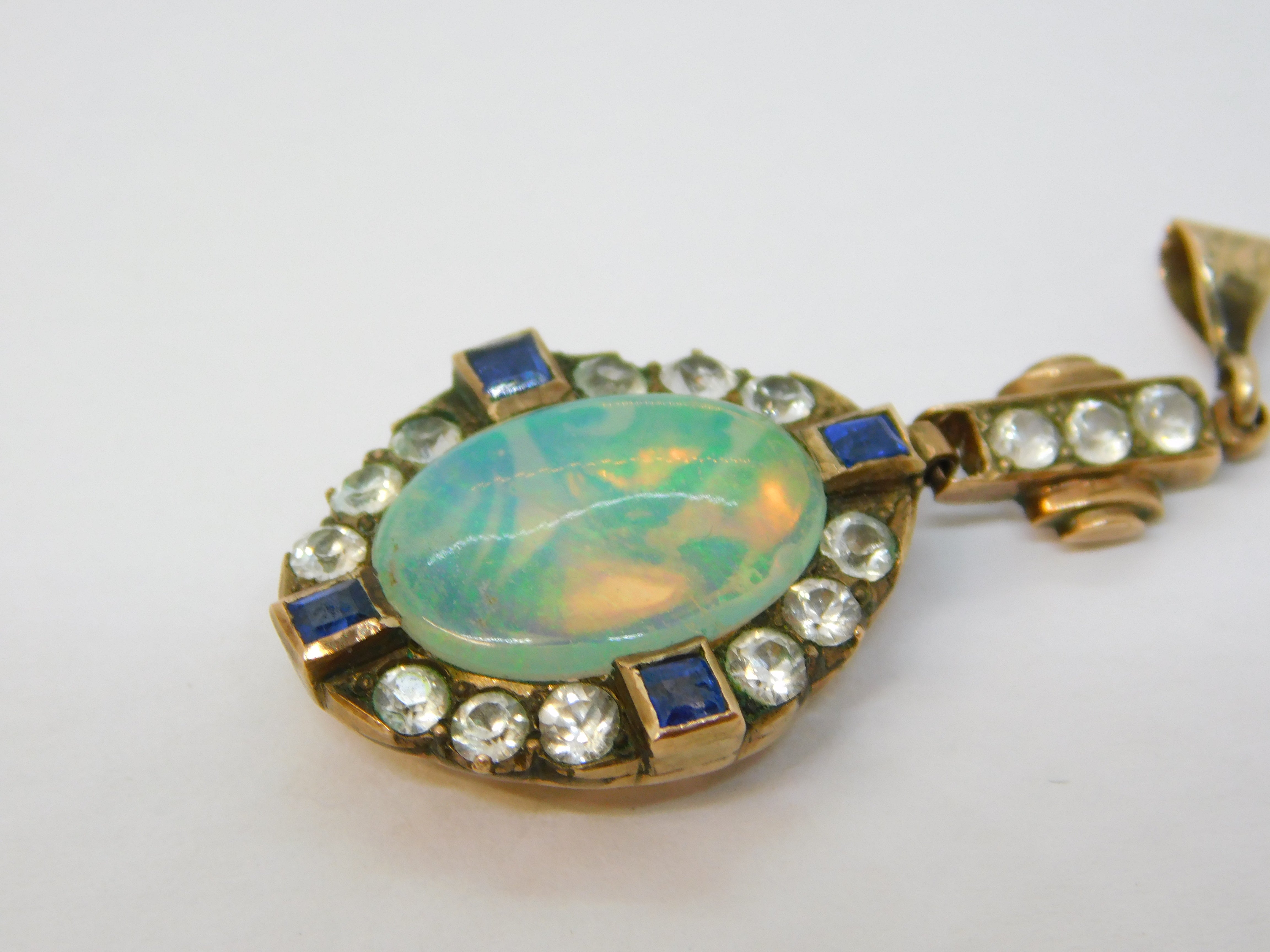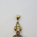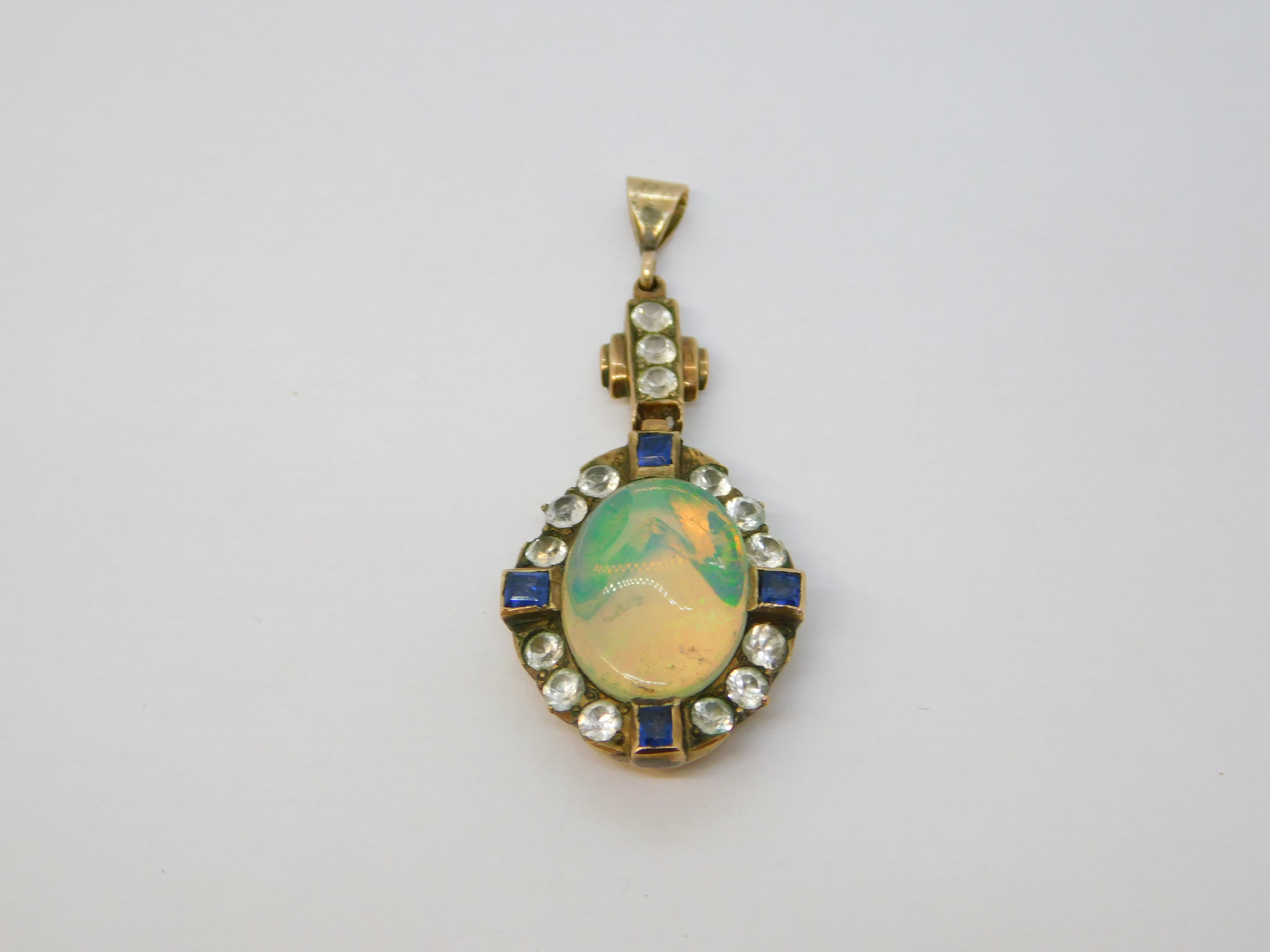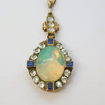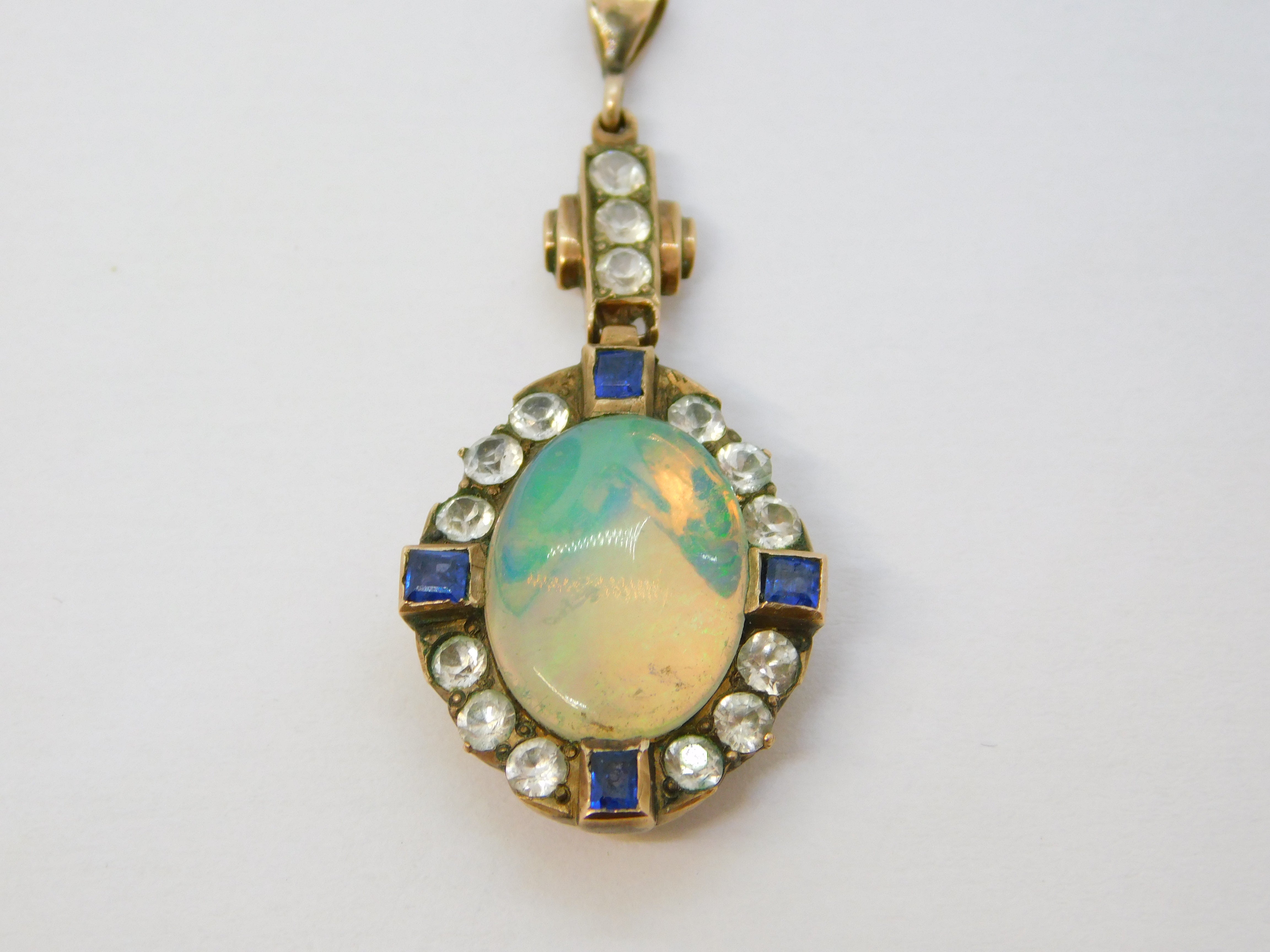 19th Century 14ct Gold, Blue & White Sapphire, Water Opal Drop Pendant Antique c1890