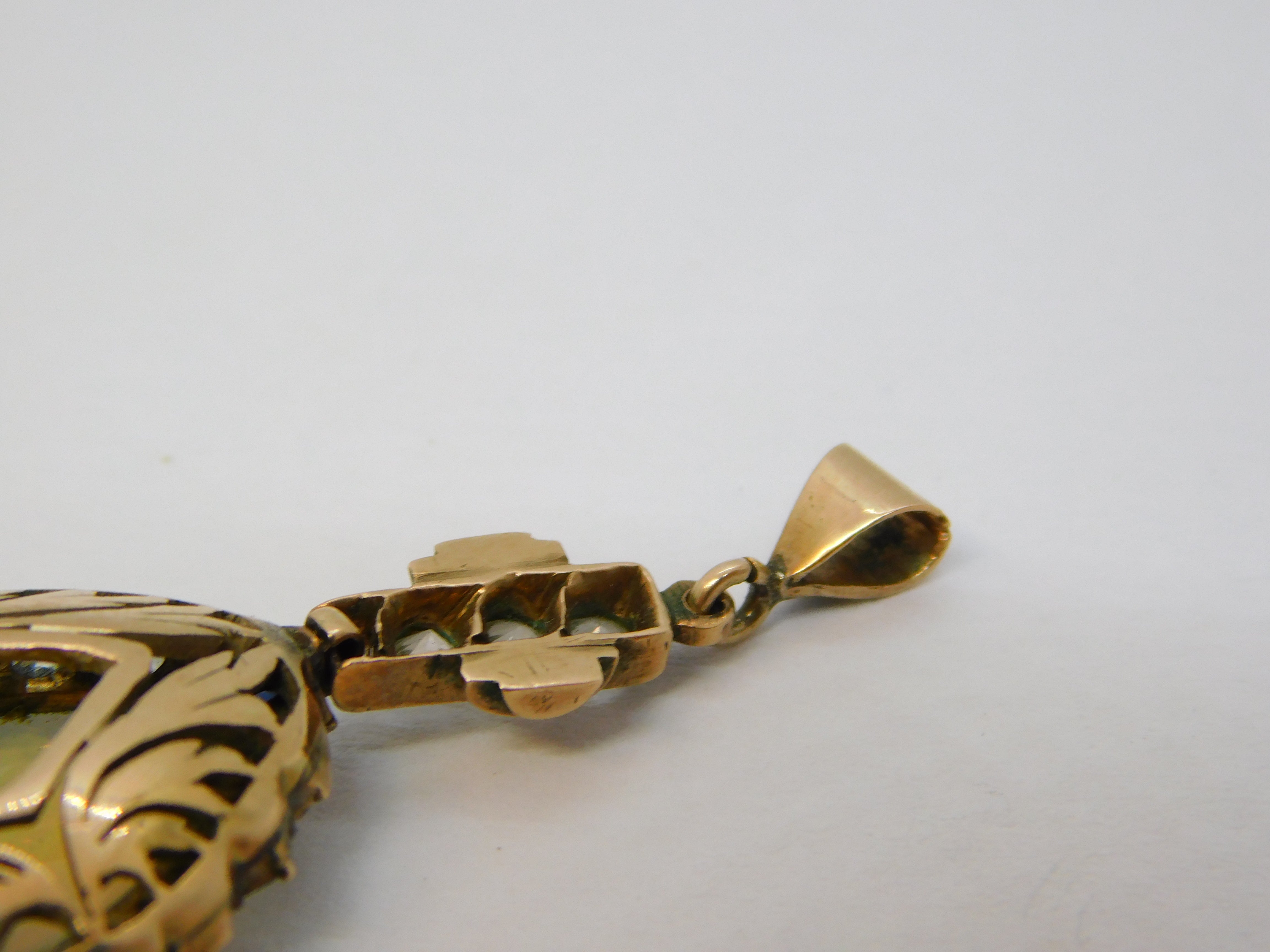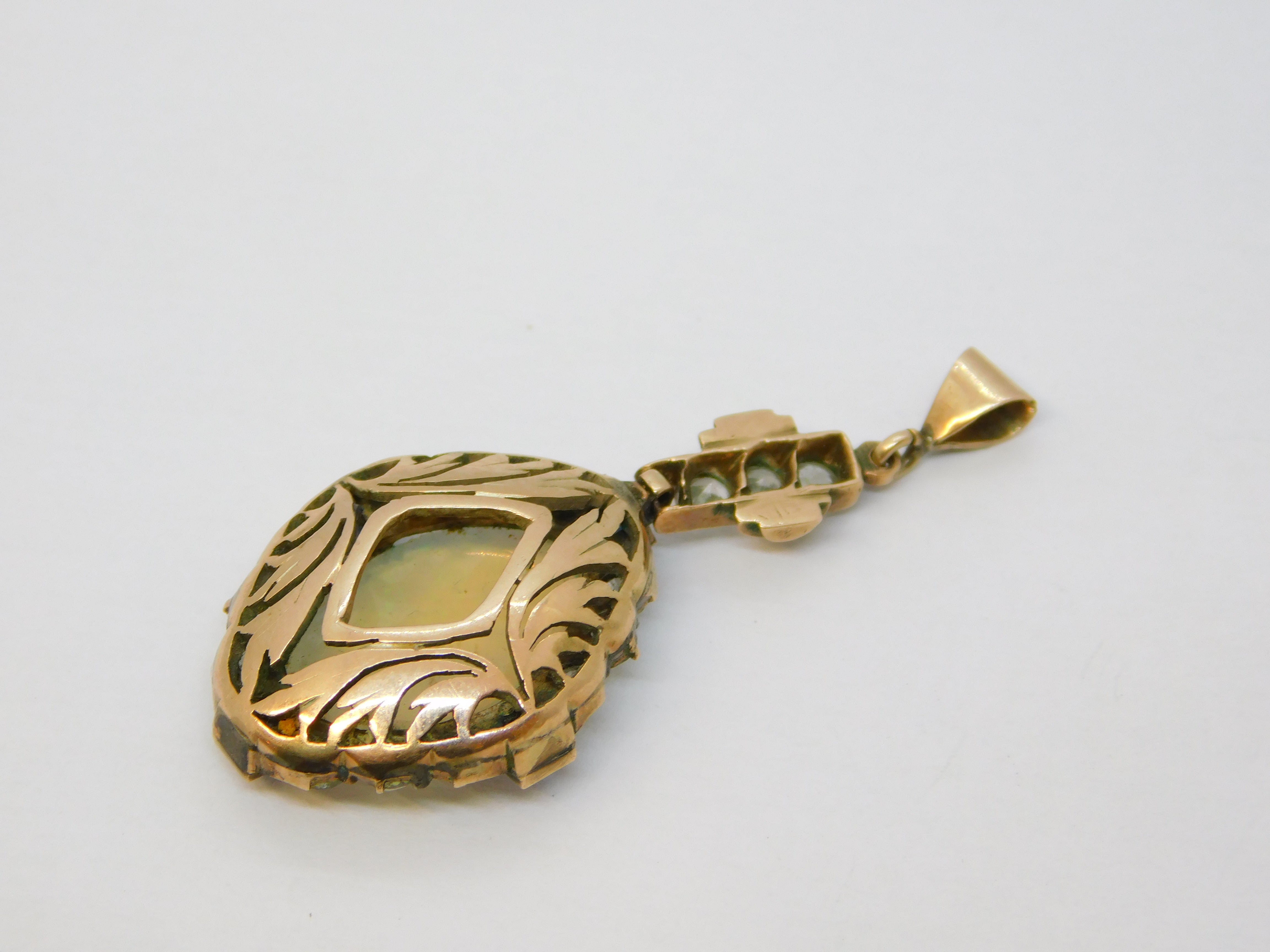 Details: A fantastic and wonderfully designed antique 19th century 14ct rose gold drop pendant set with large cabochon cut water opal flanked with white & blue sapphires c1890, the gold has been XRF tested as it is unmarked, superb orange and green colour to the opal. This is a wonderful item that would make a perfect gift or addition to any collection. The BOX pictured is for PRESENTATION ONLY and is NOT included in the listings but used to frame the pictures unless specifically stated otherwise.