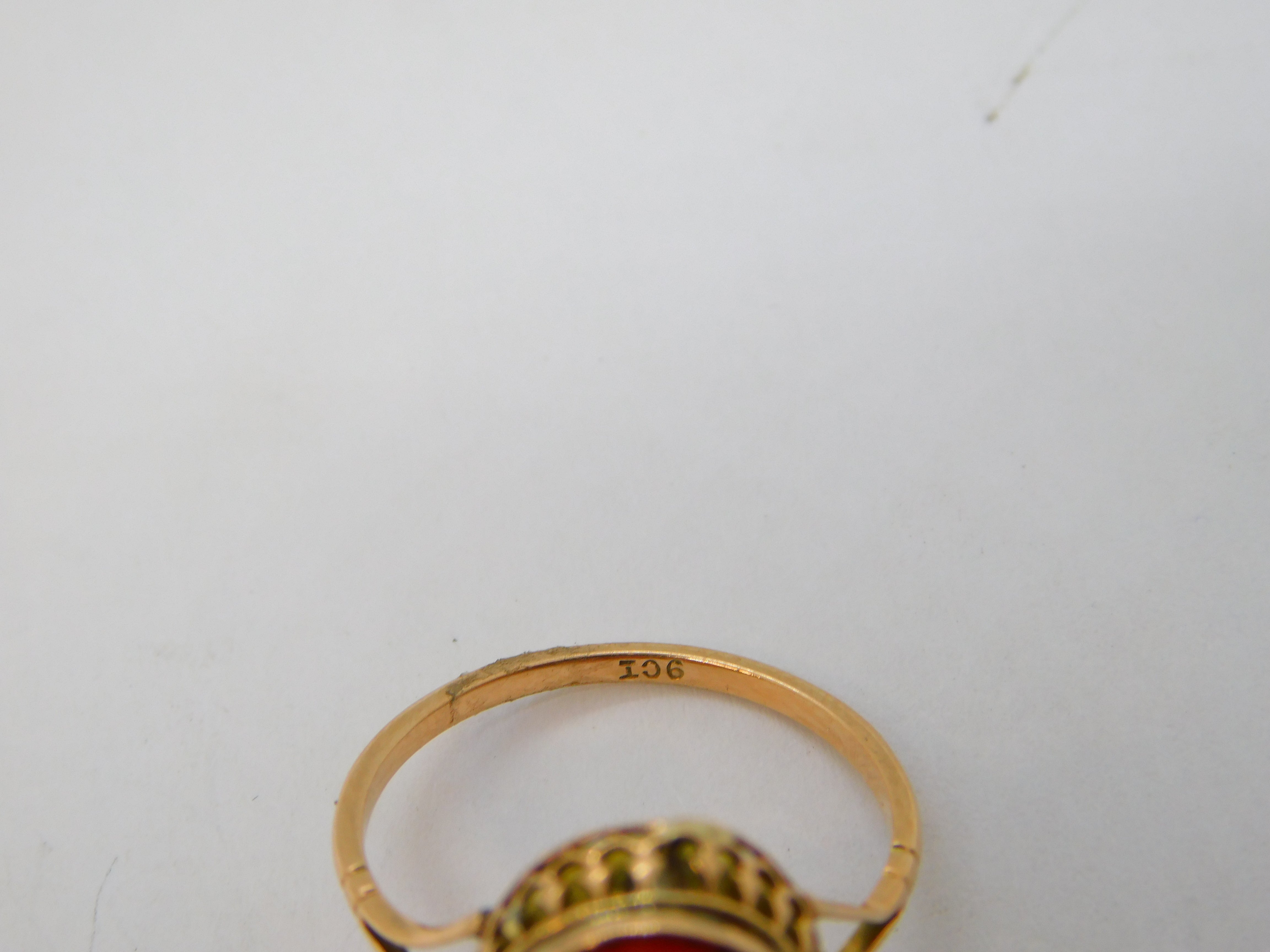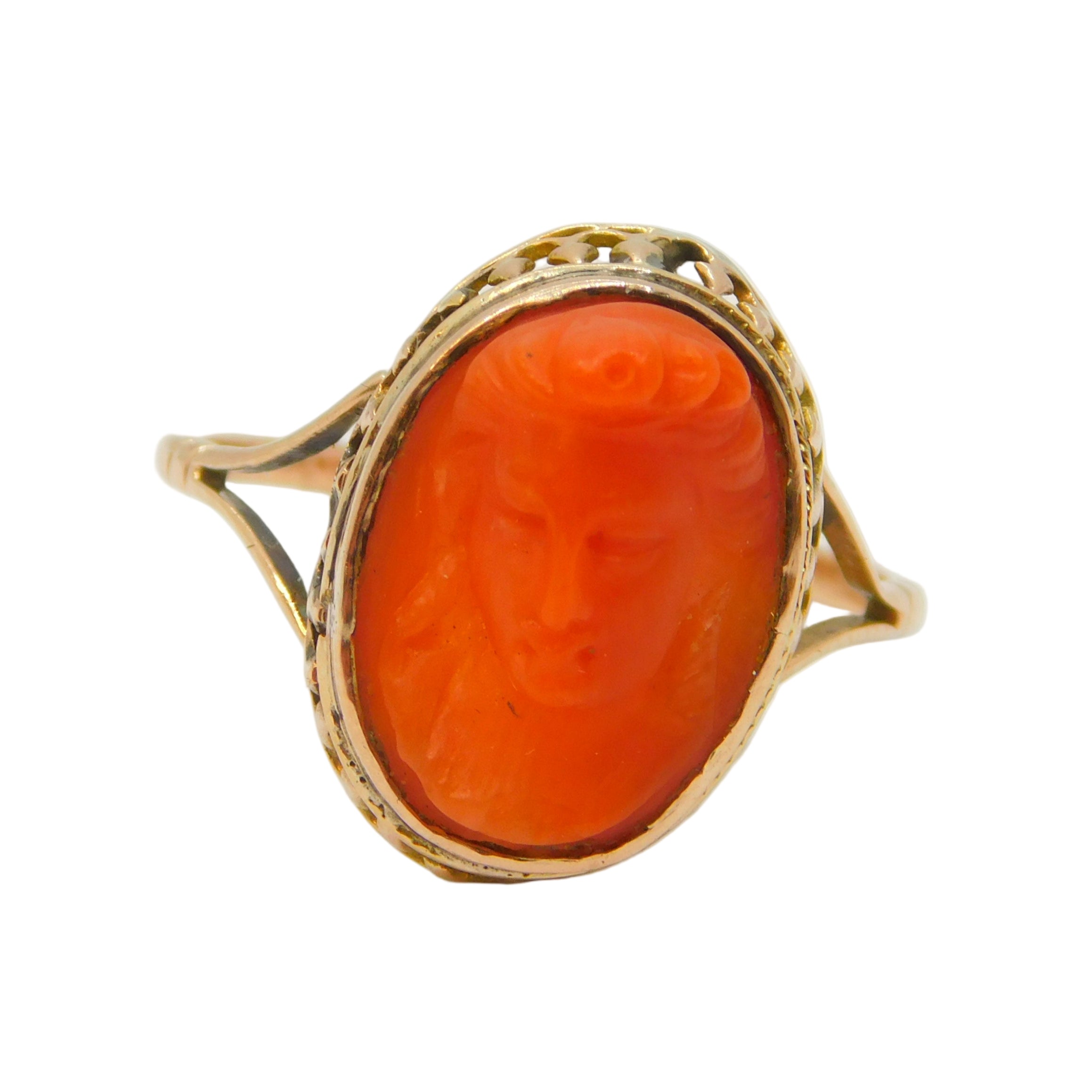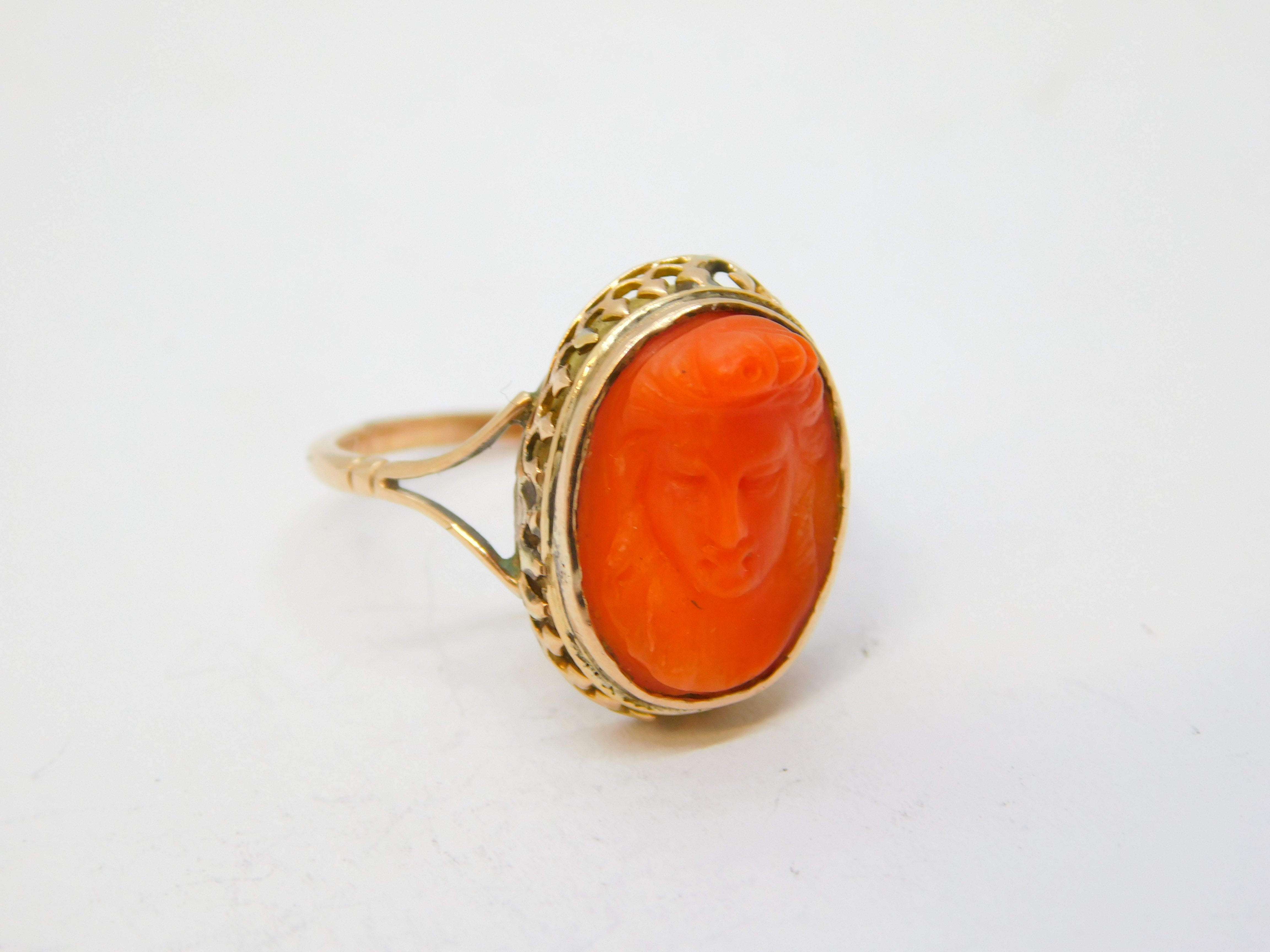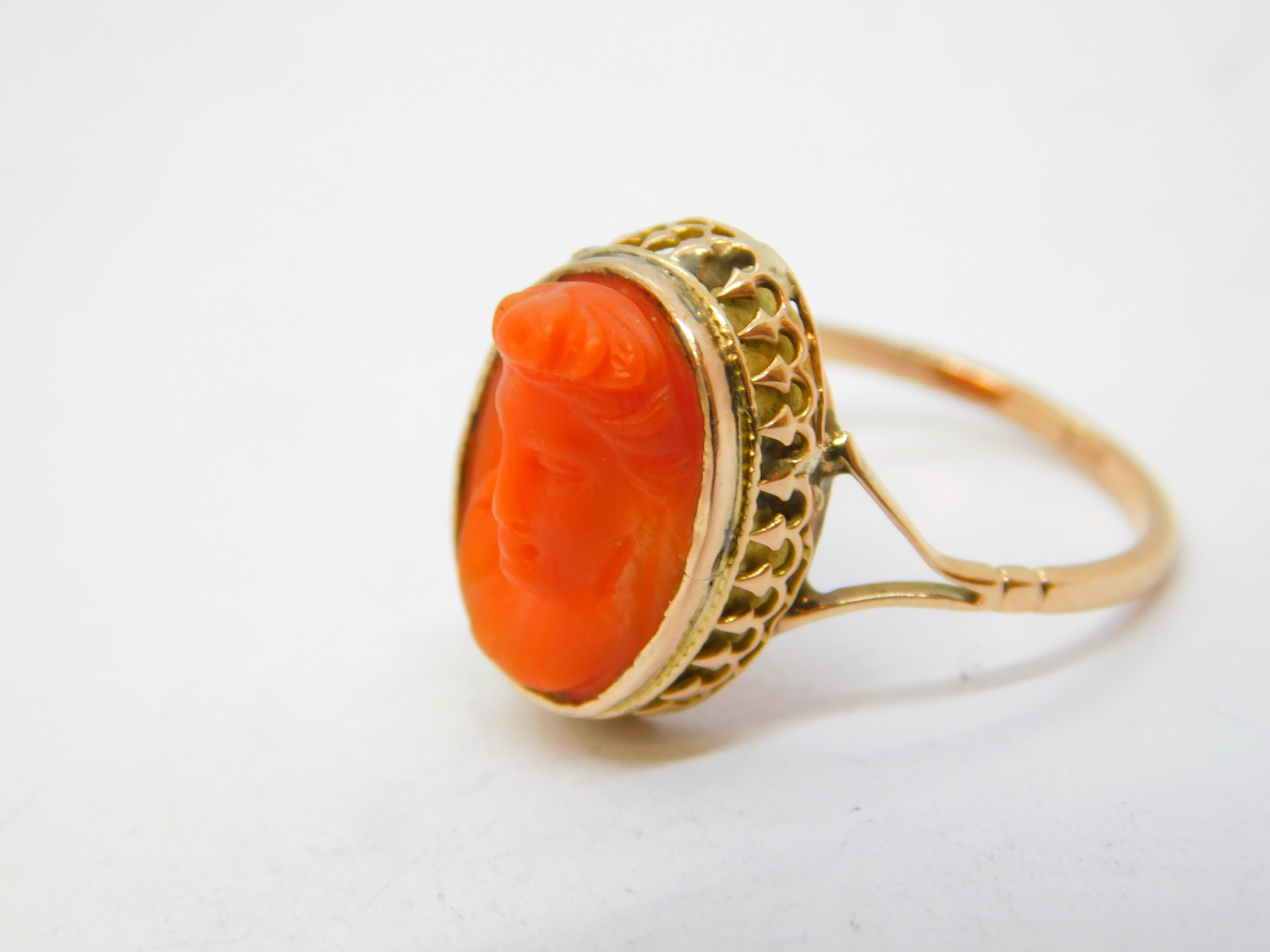 19th Century 15ct Gold Carved Red Coral Classical Cameo Dress Ring Antique c1860