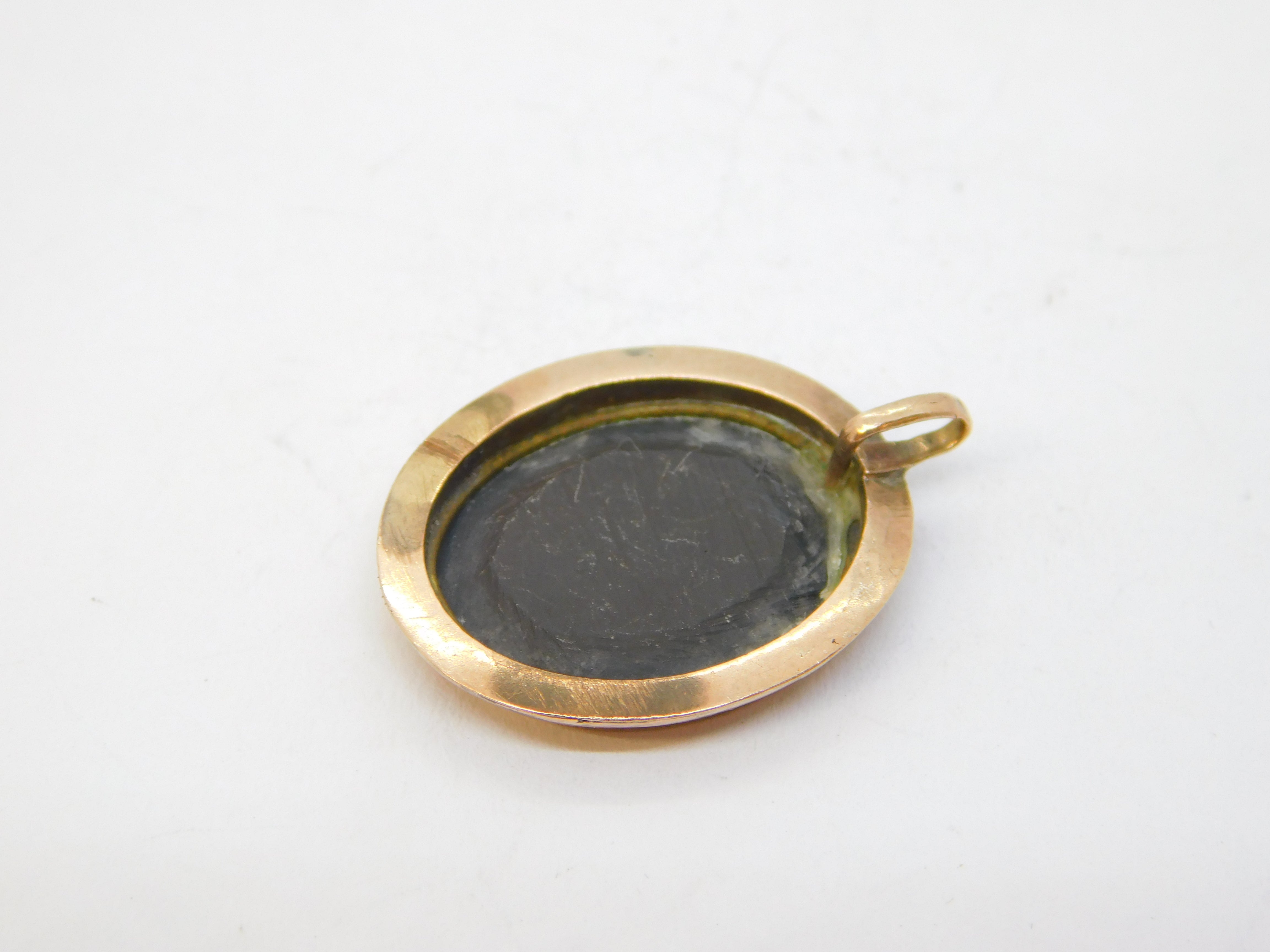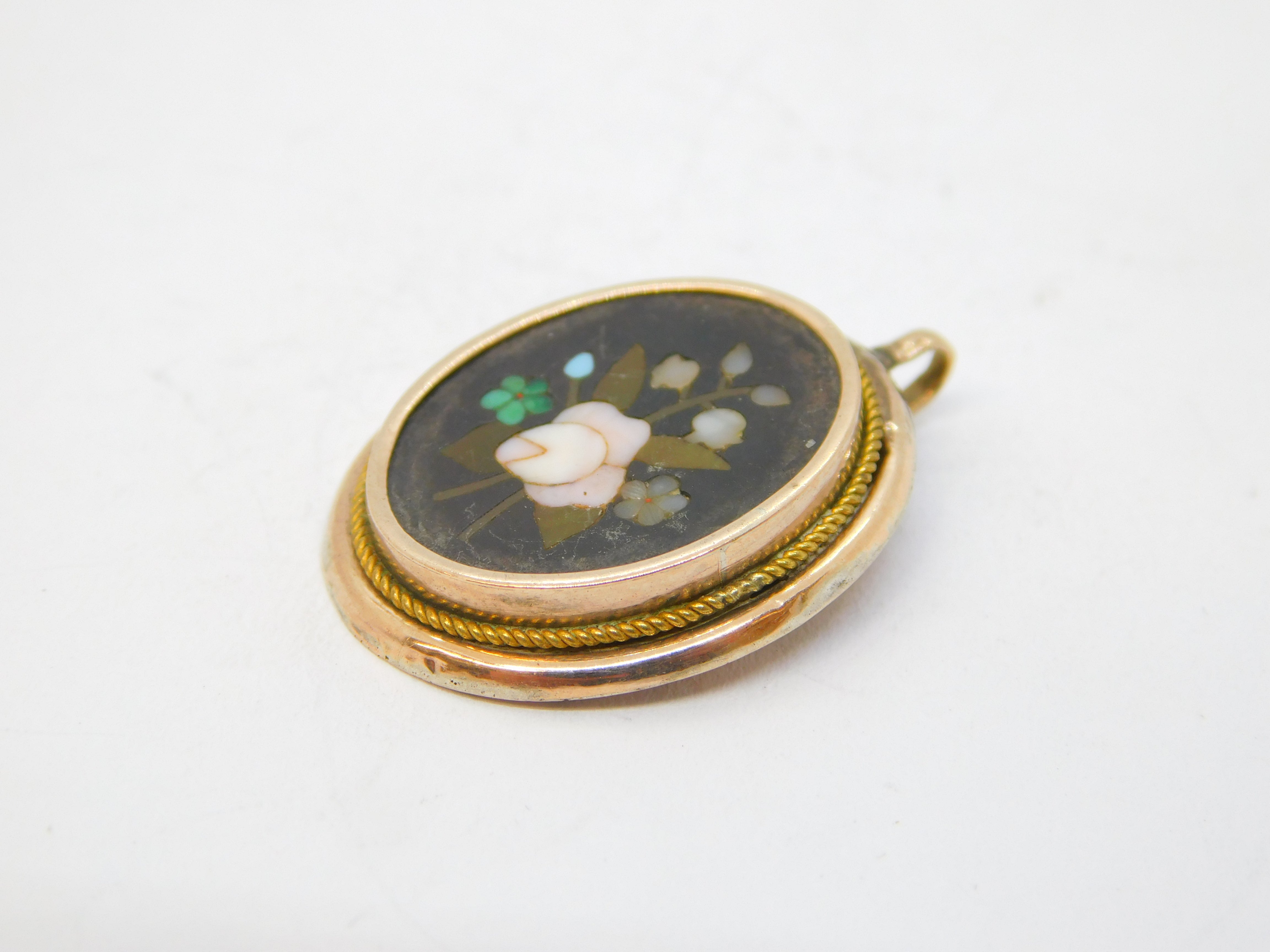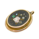 19th Century 9ct Rose Gold Pietra Dura Rose Flower Pendant Antique c1860