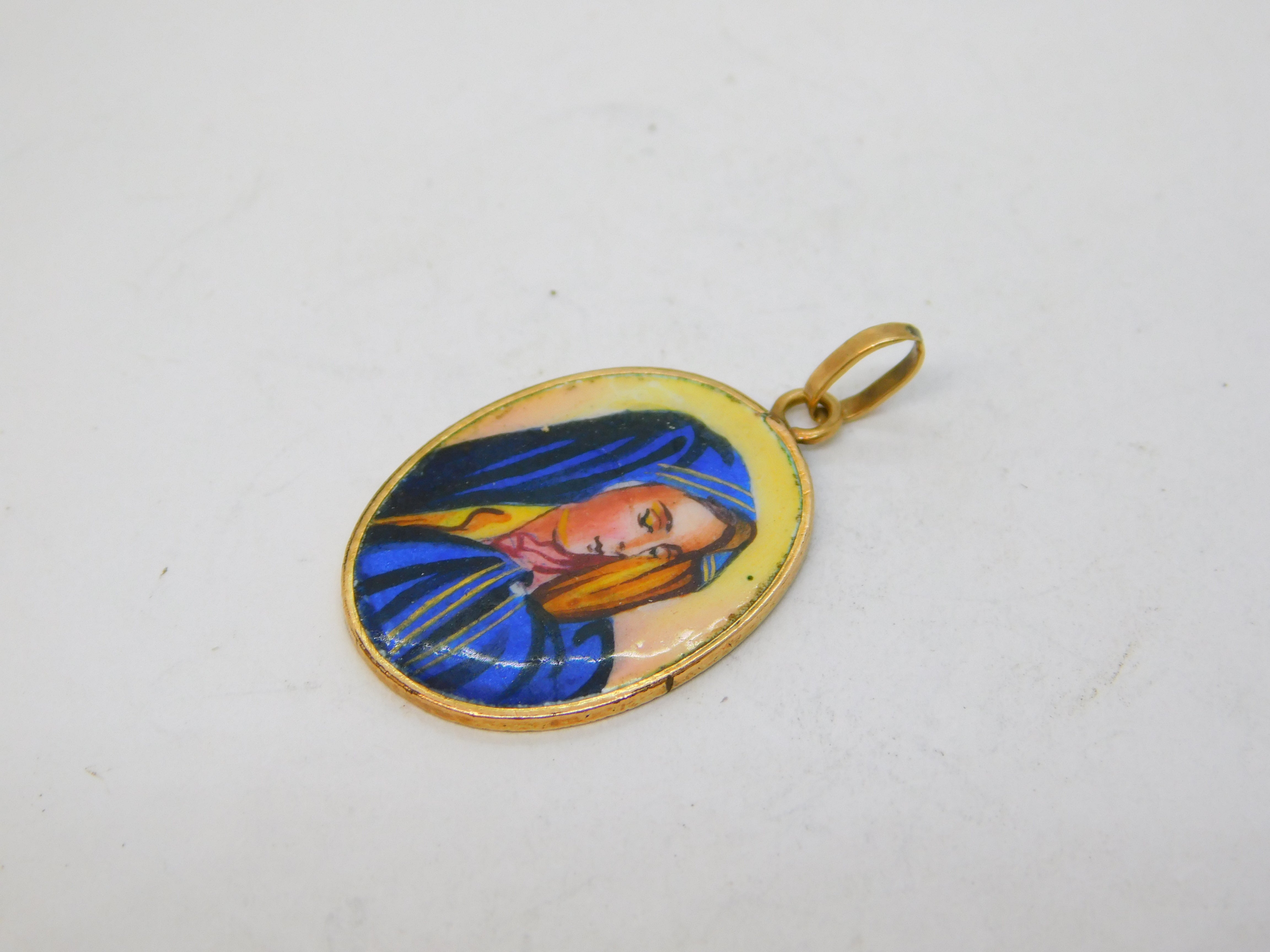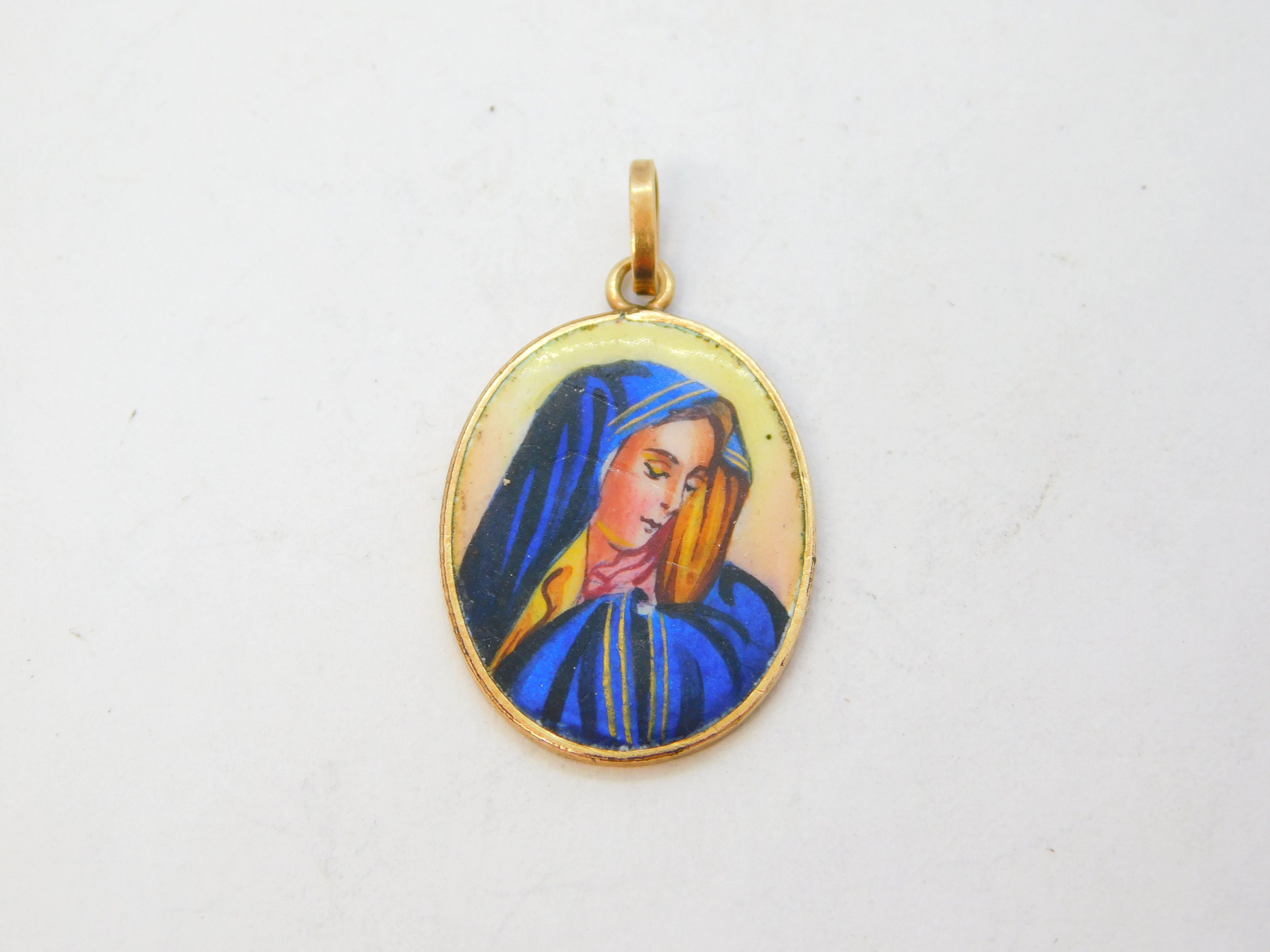 19th Century Austro-Hungarian 14ct Gold & Enamel Mary or Maria Pendant Antique c1880
