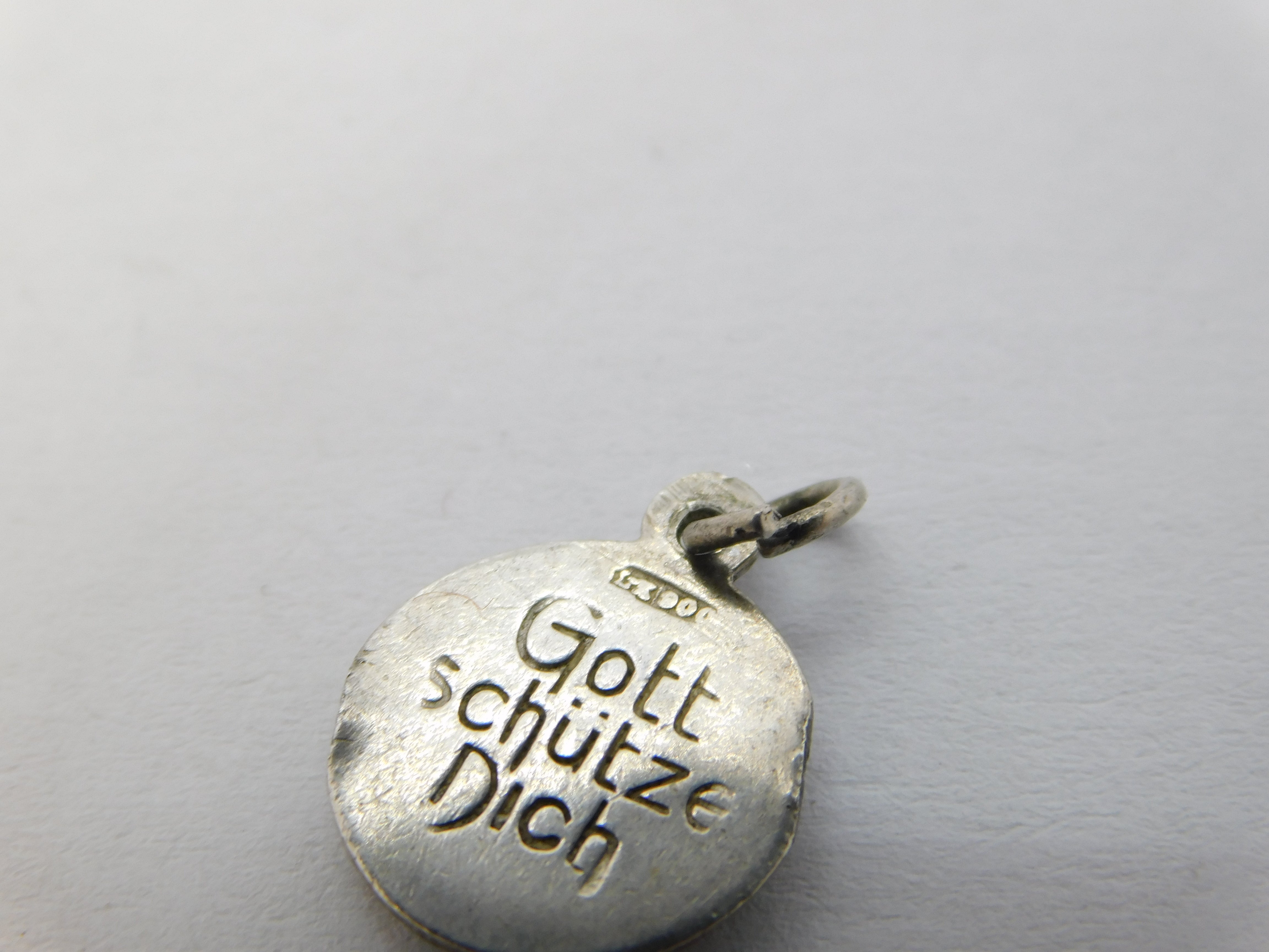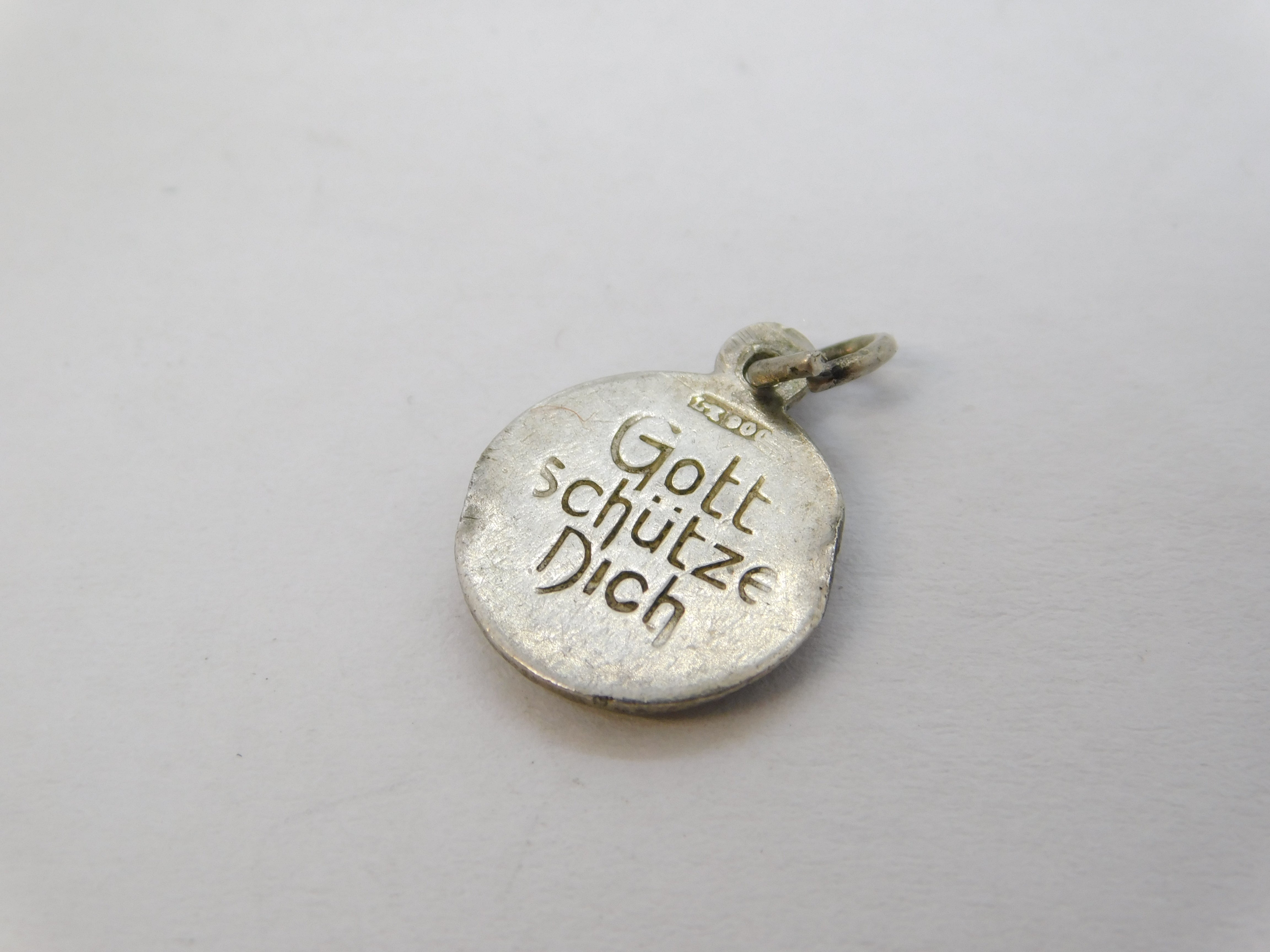 19th Century German .900 Silver Enamel 'Gott Schütze Dich' Religious Charm c1880