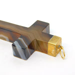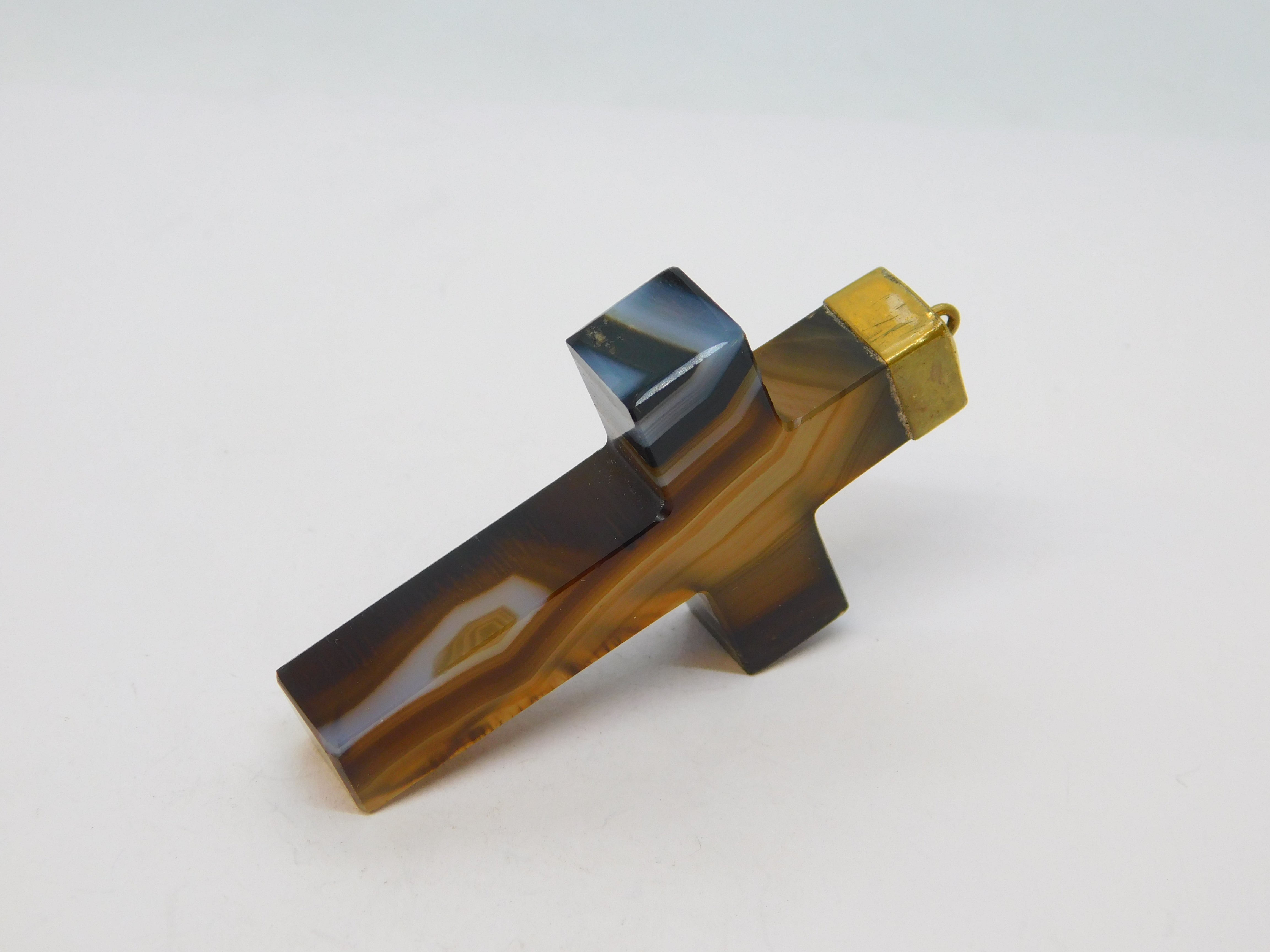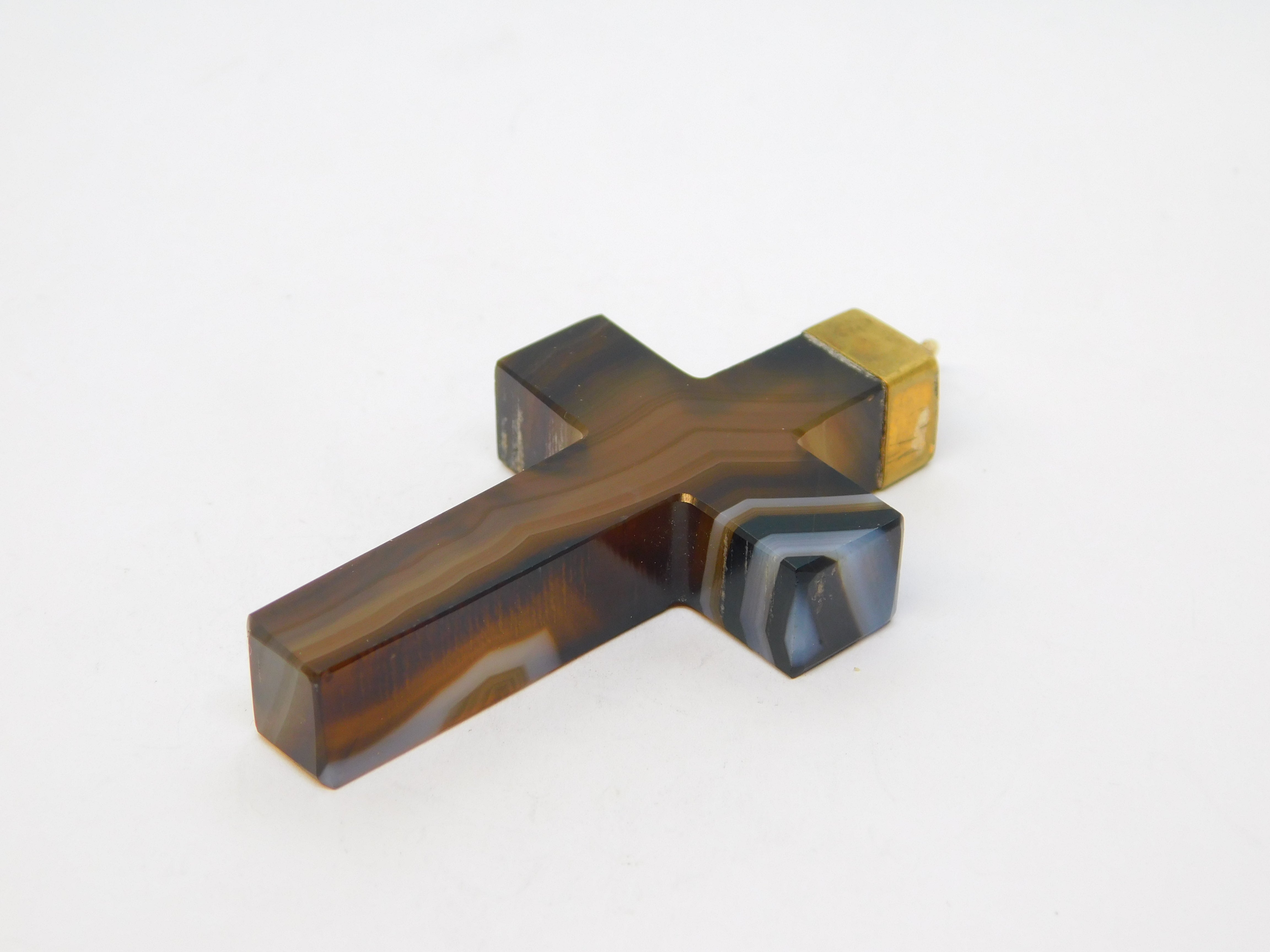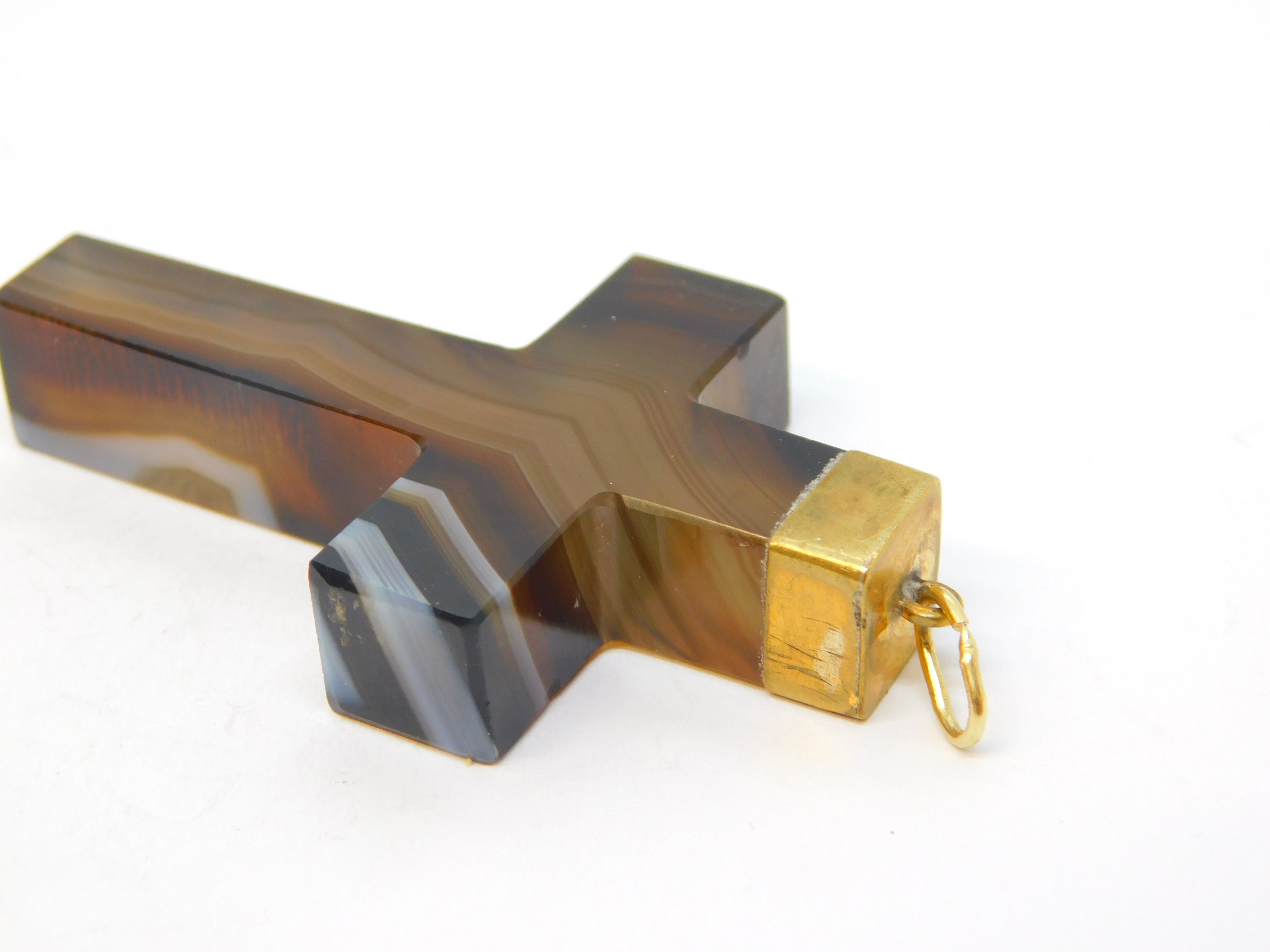 19th Century Large Gold & Banded Agate Cross Crucifix Pendant Antique c1860