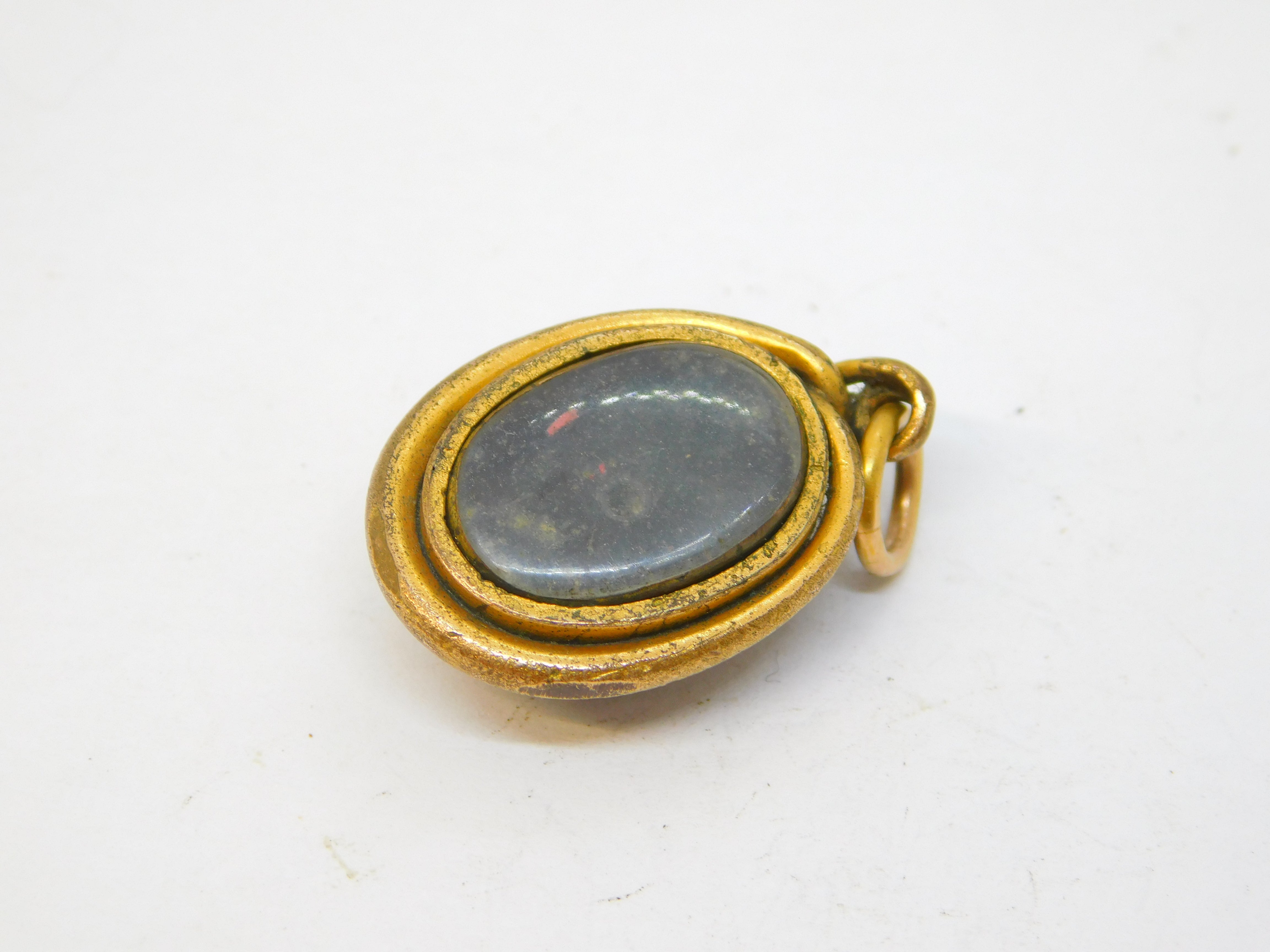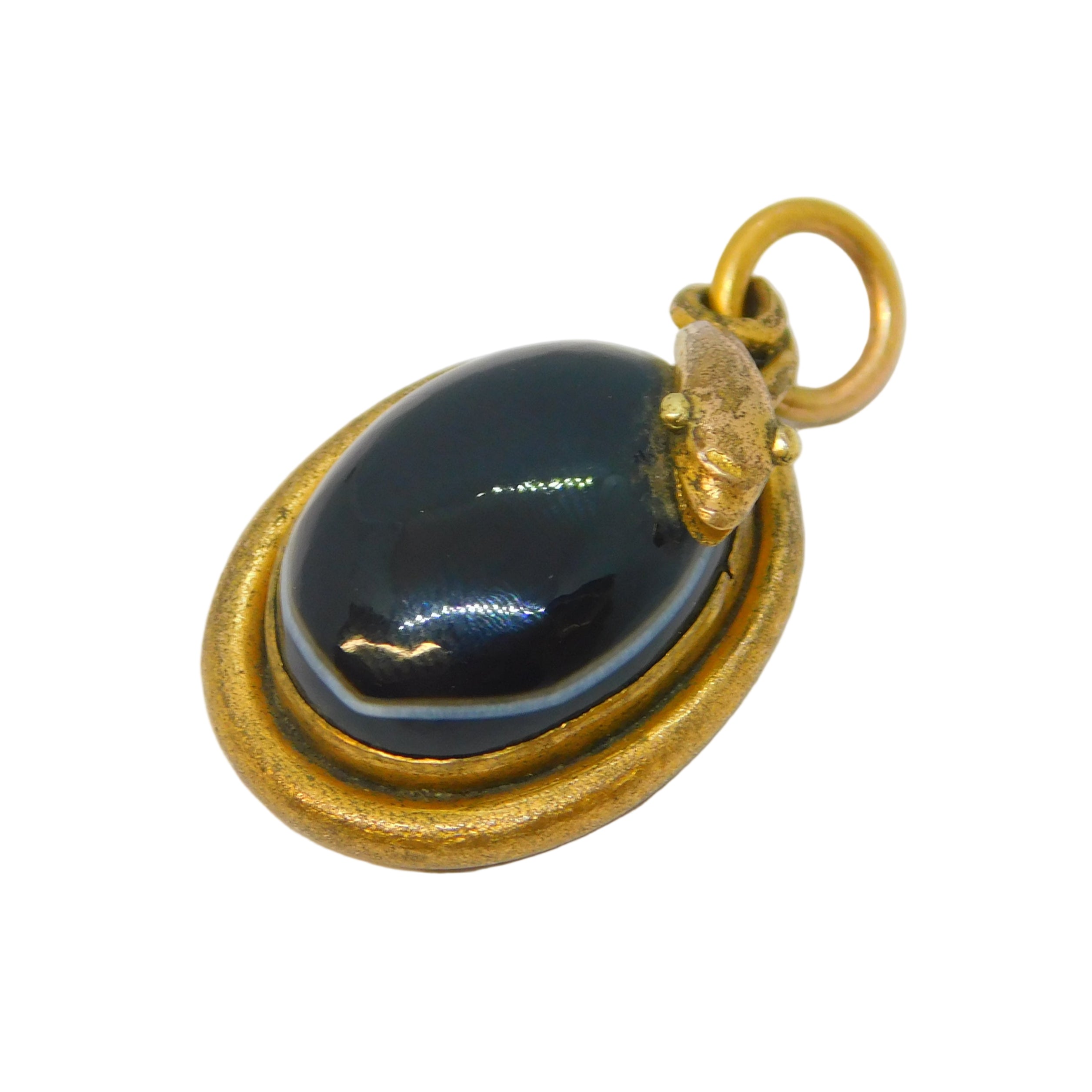 19th Century Rolled Gold Banded Agate Snake Serpent Pendant Antique c1880