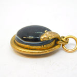 Details: A fantastic and wonderfully designed antique Victorian rolled gold drop pendant set with central cabochon cut banded agate stone flanked with a snake or serpent to the edge c1860, mourning locket section to the reverse. This is a wonderful item that would make a perfect gift or addition to any collection. We are more than happy to provide XRF reports for items upon request.