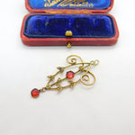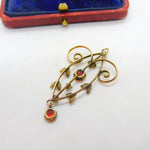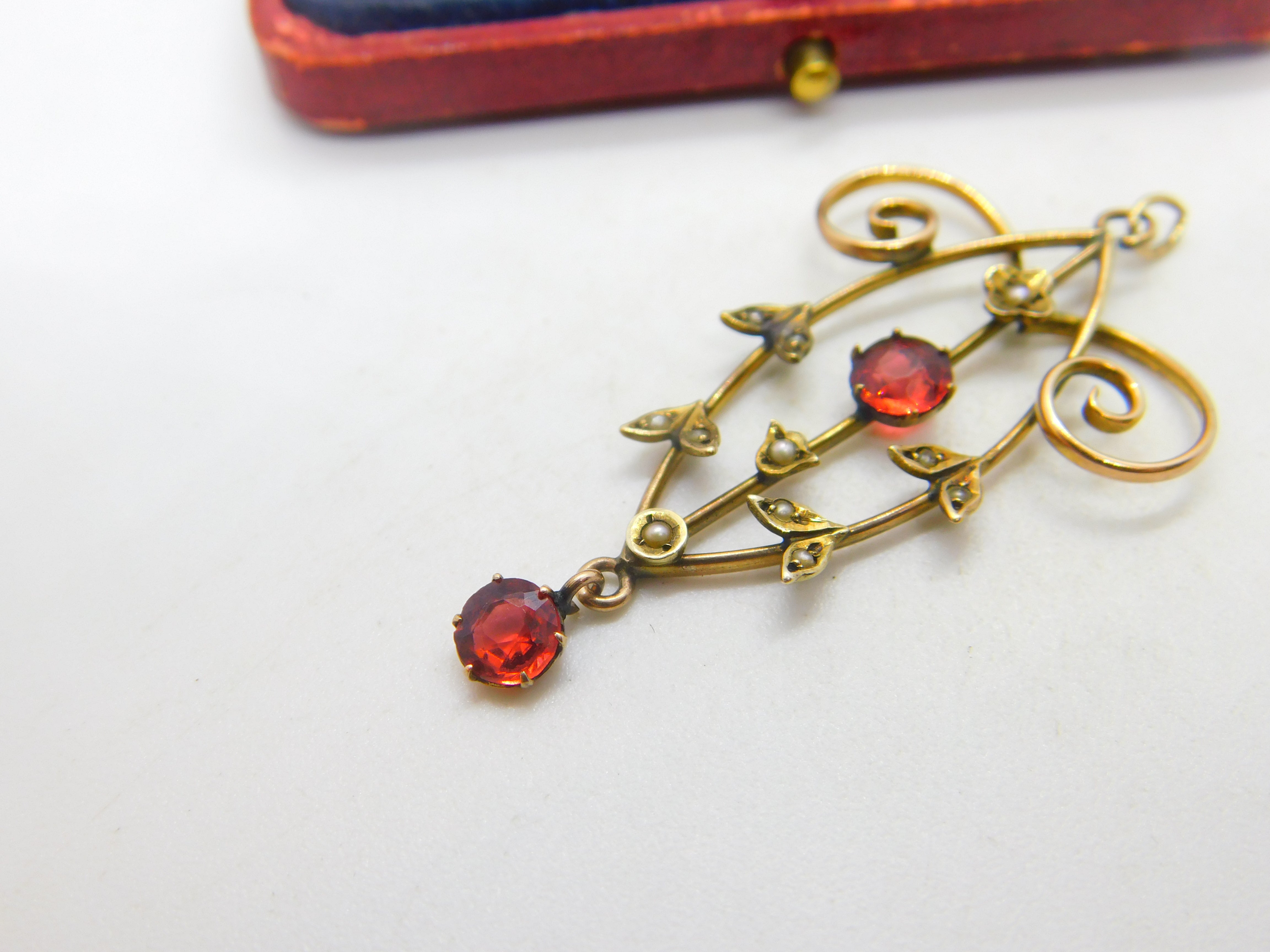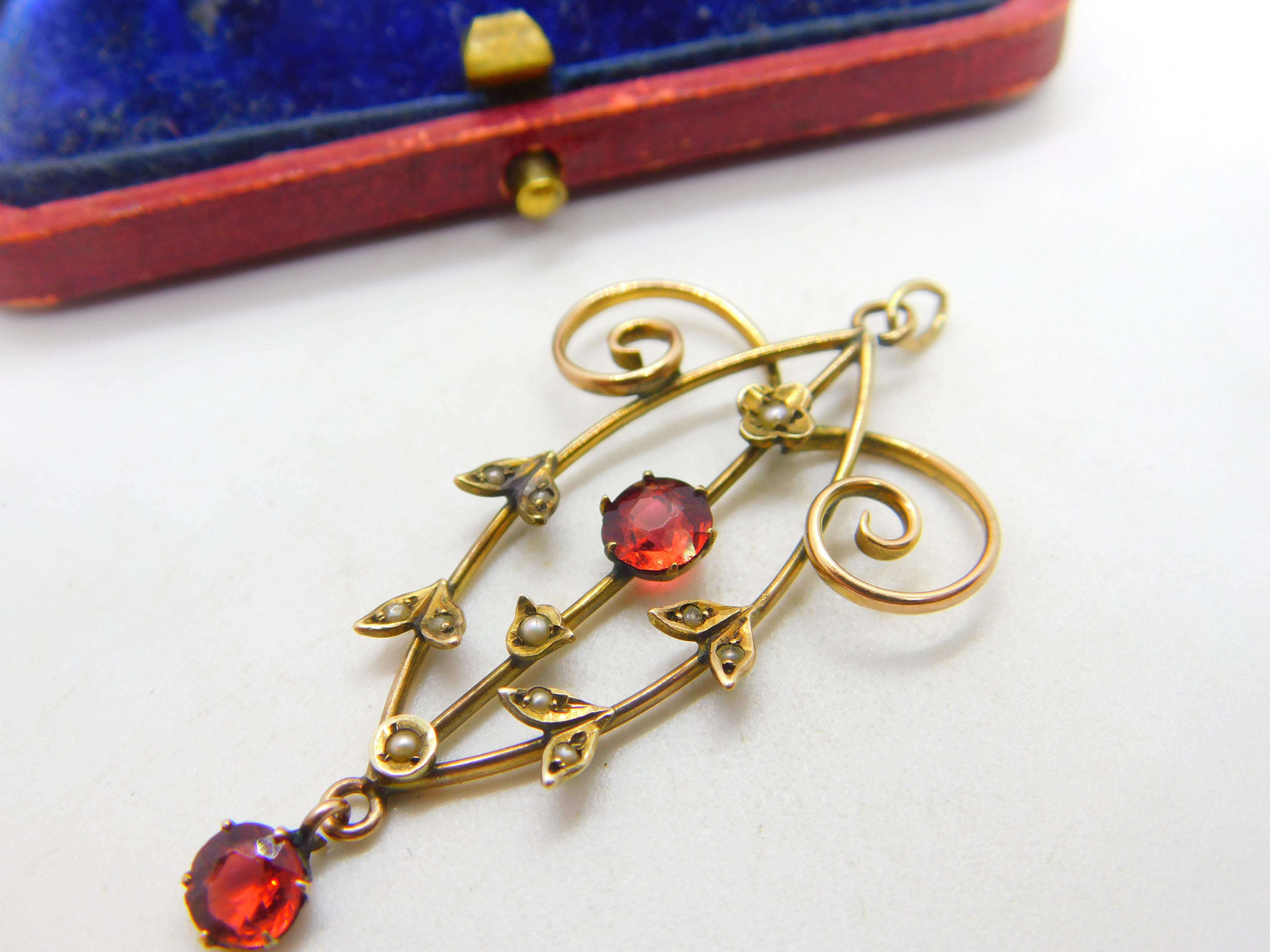 9ct Gold, Garnet & Seed Pearl Lavalier Drop Pendant Antique c1910 Edwardian