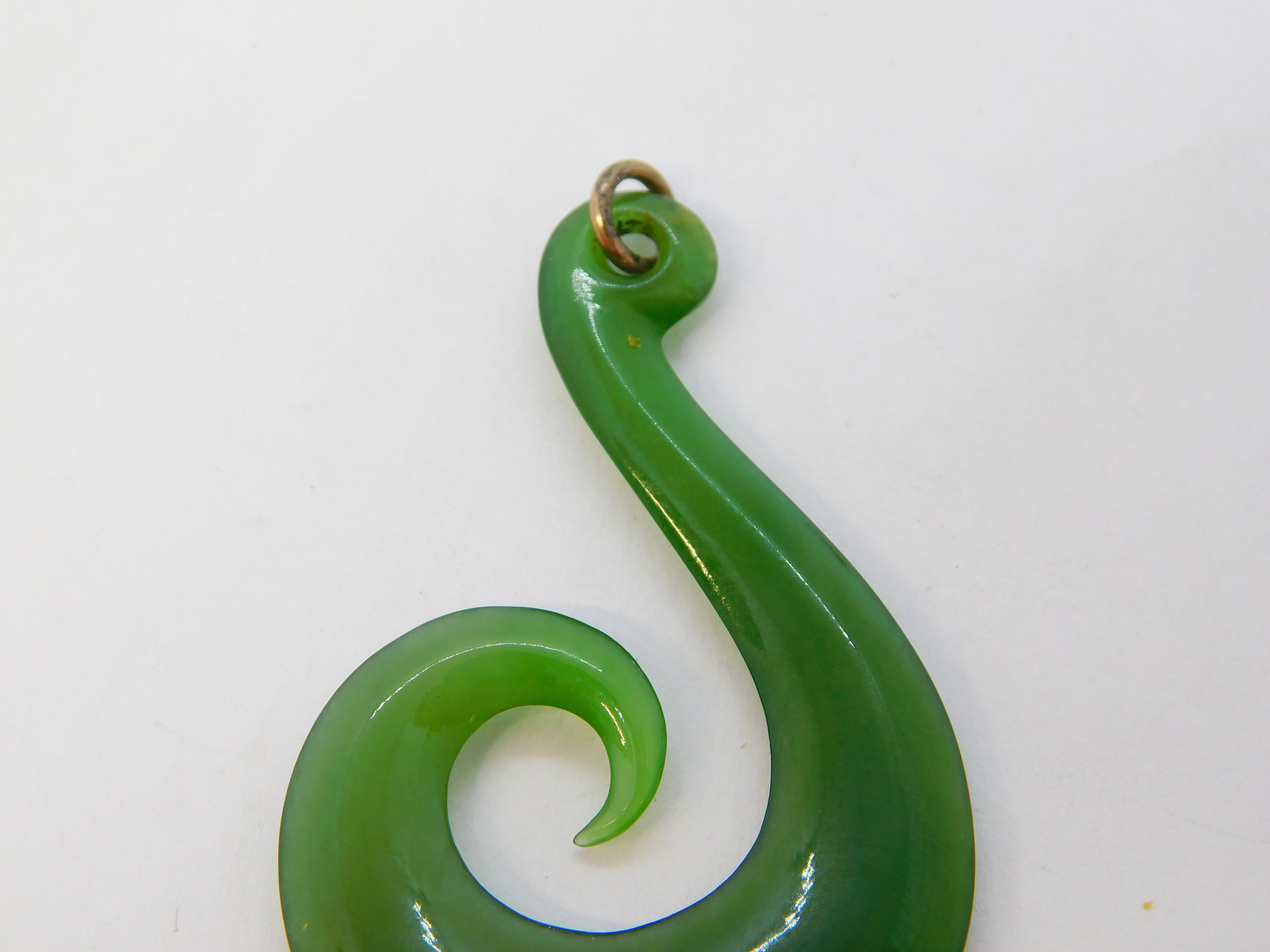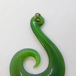 9ct Gold Maori Carved Nephrite Jade 'hei matau' Fish Hook Pendant Antique c1930