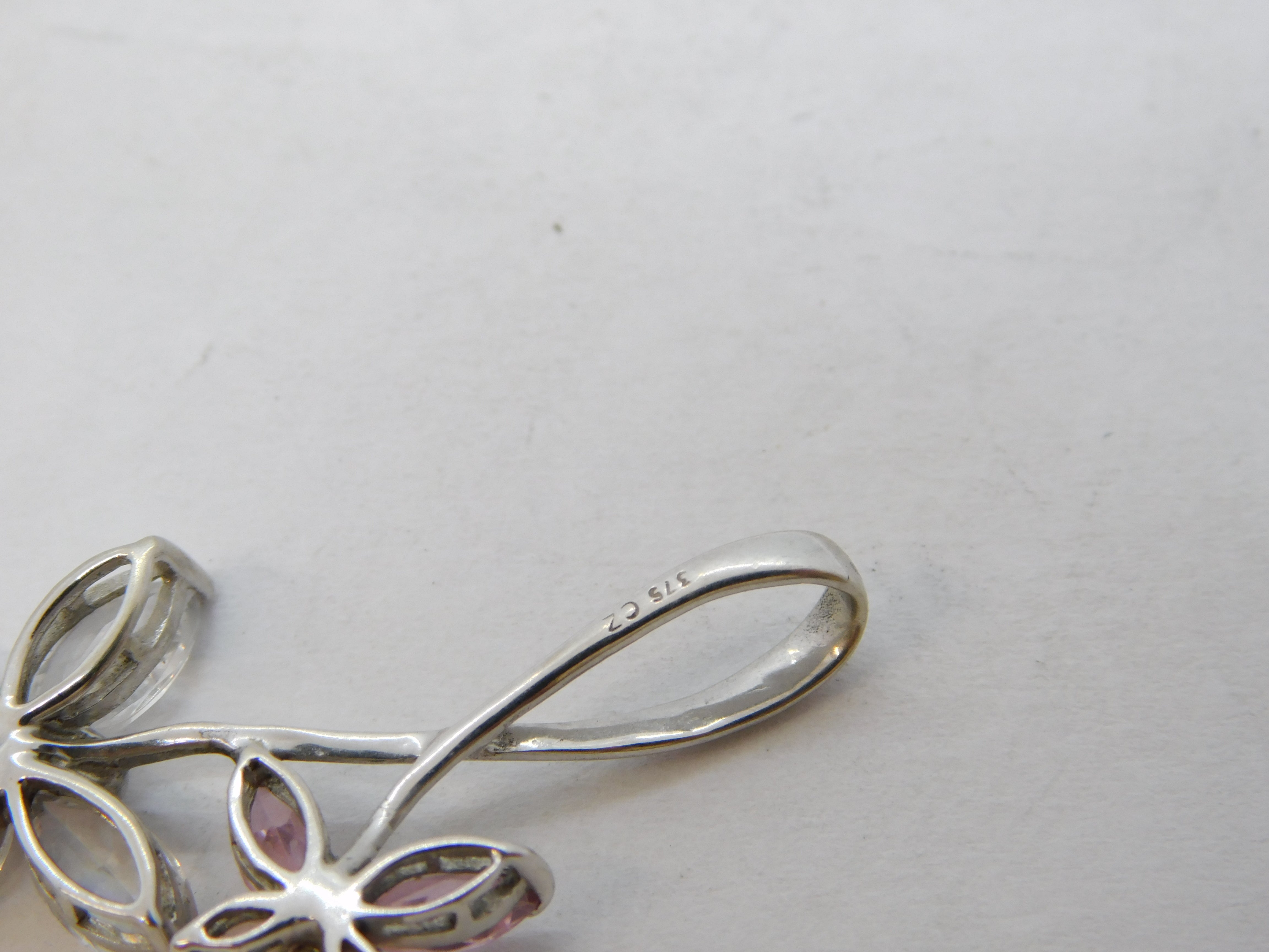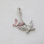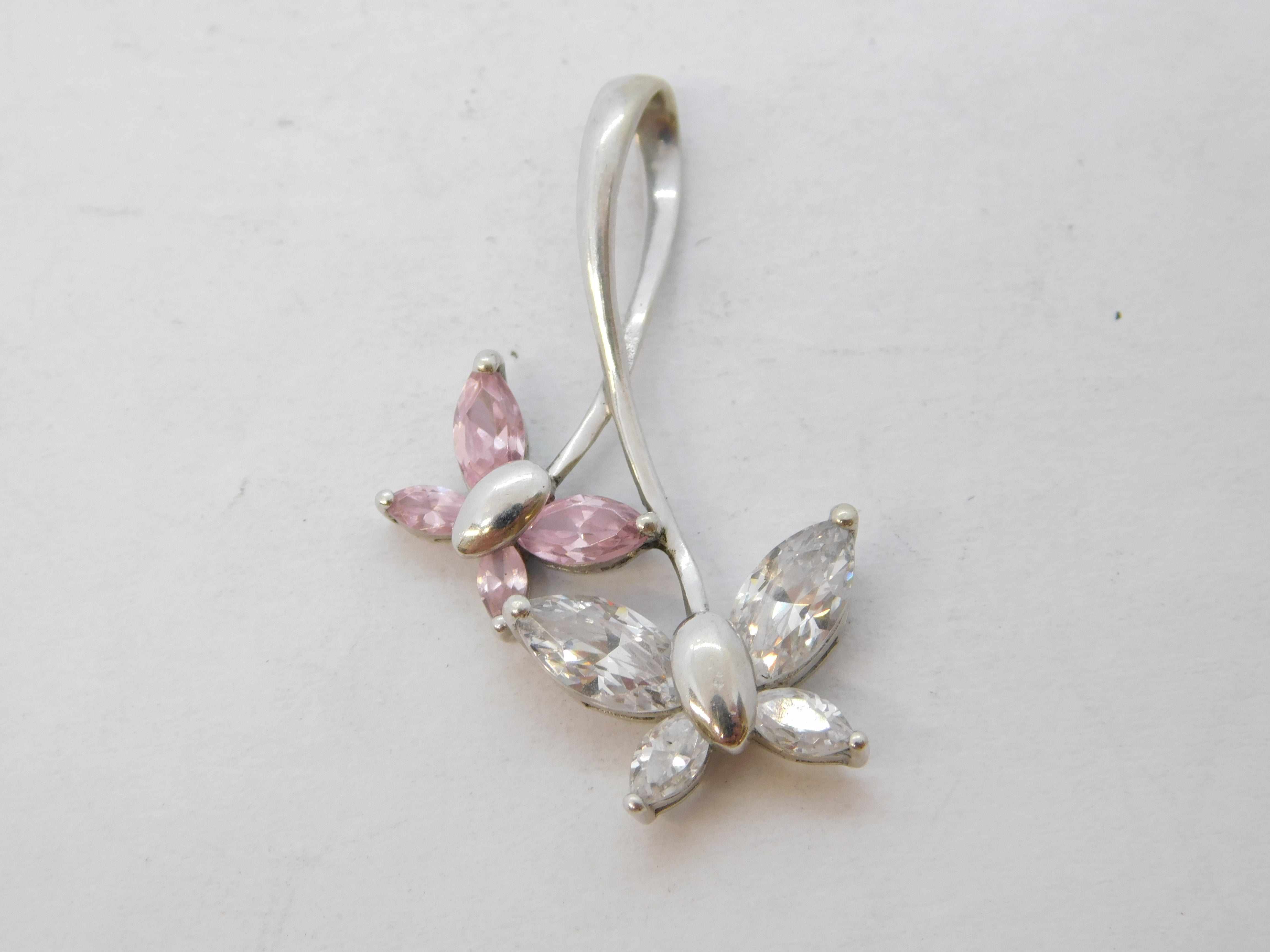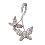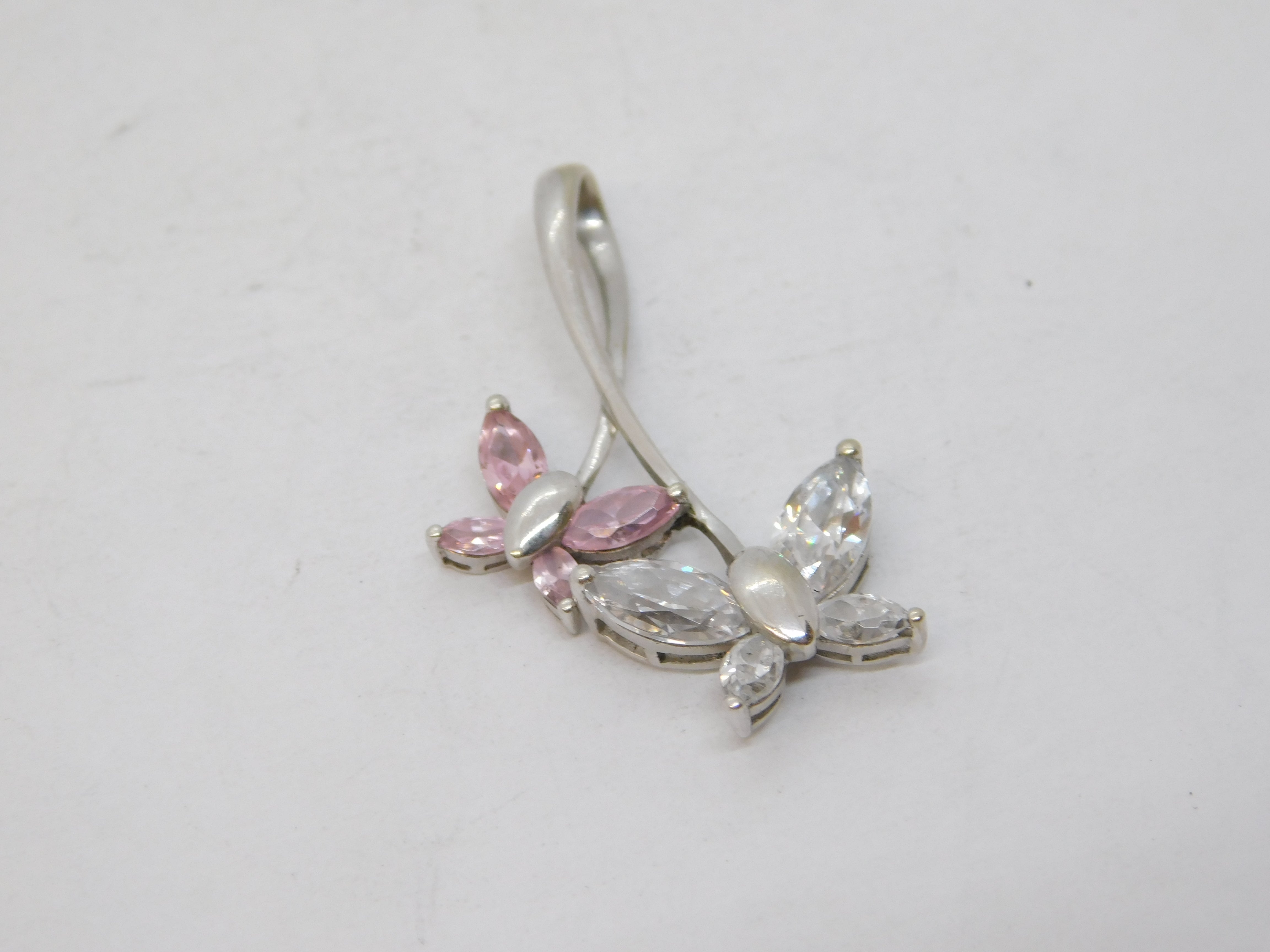9ct White Gold, Pink Topaz & Paste Butterfly Drop Pendant Vintage c1990