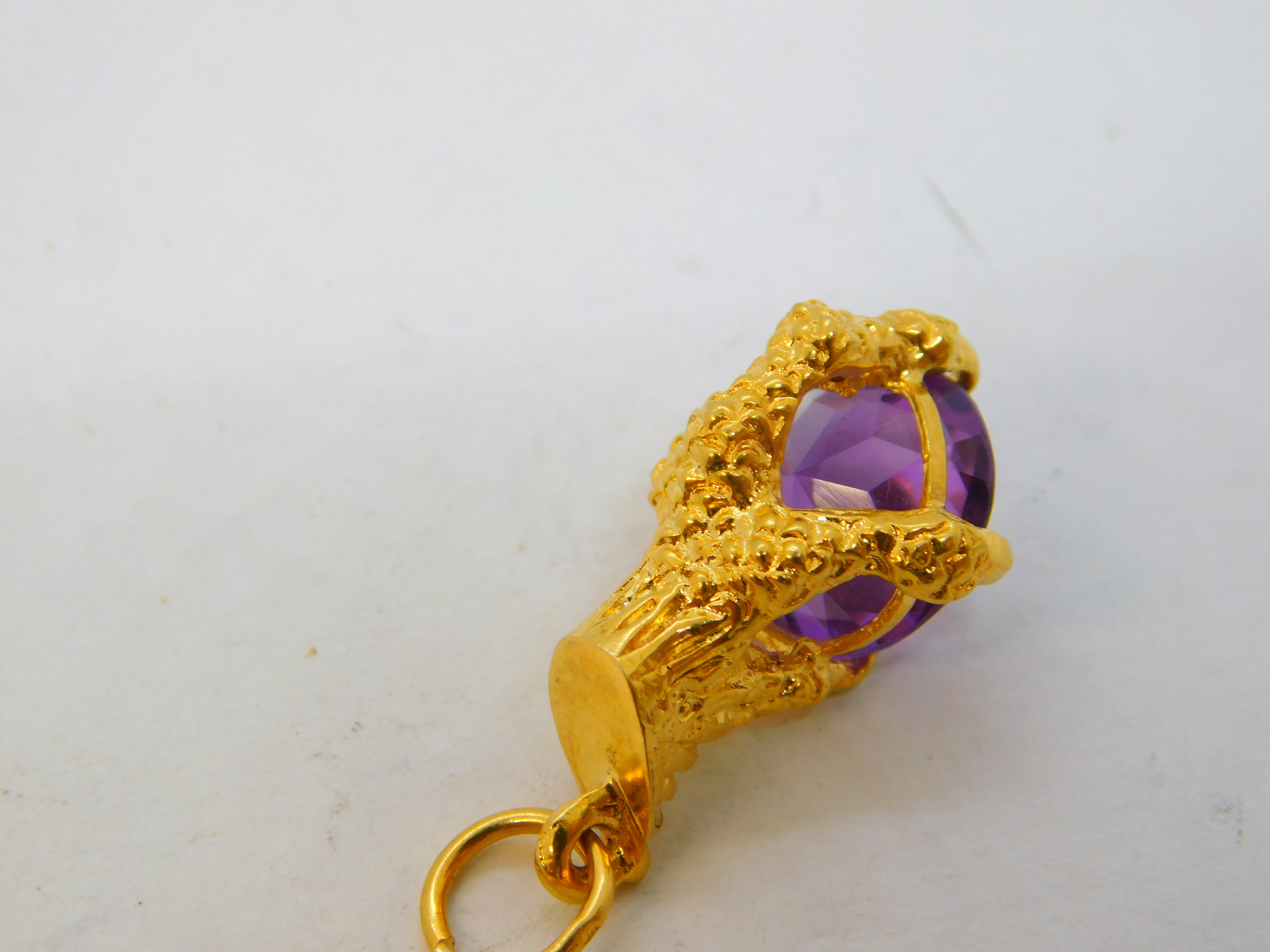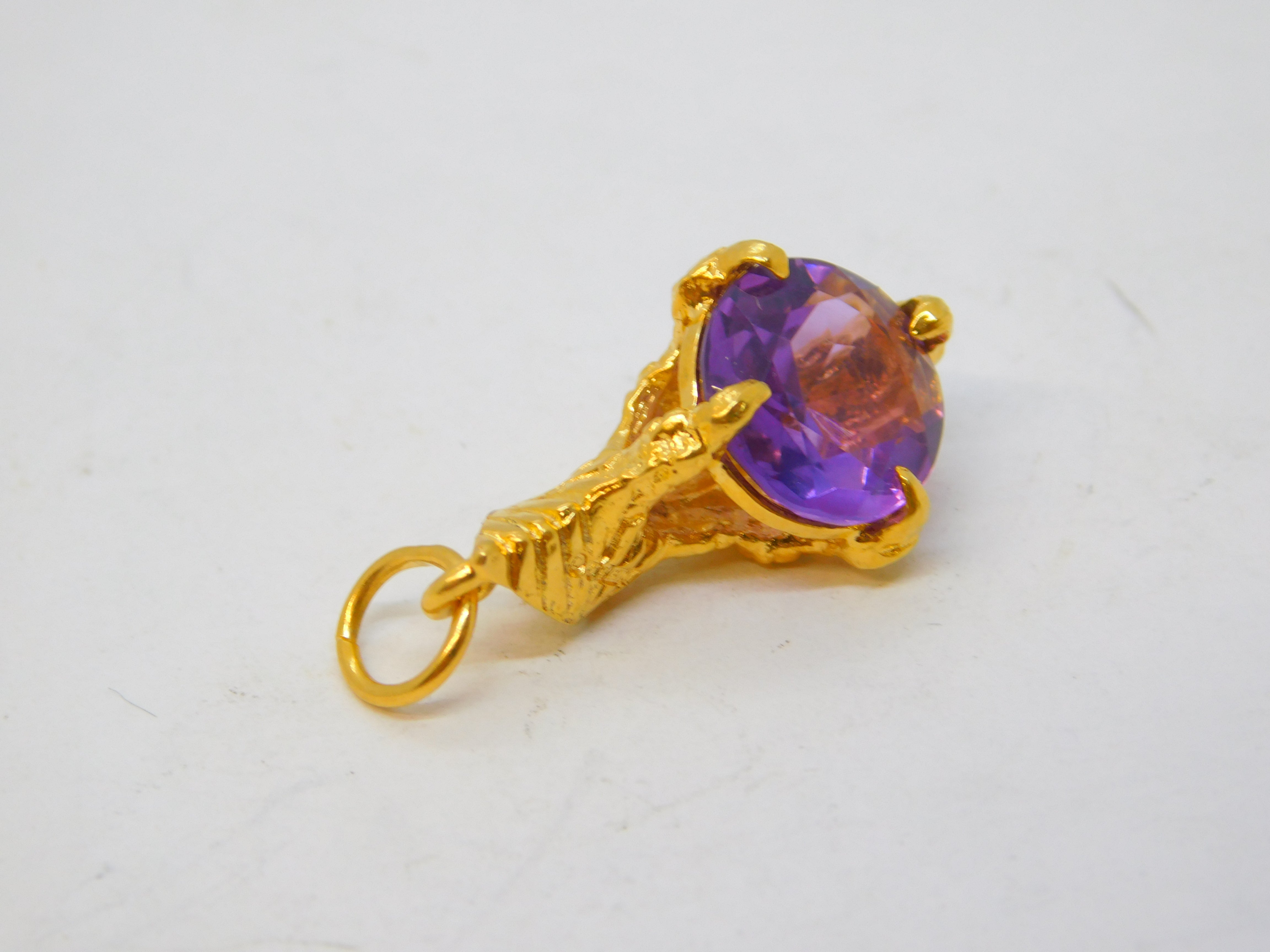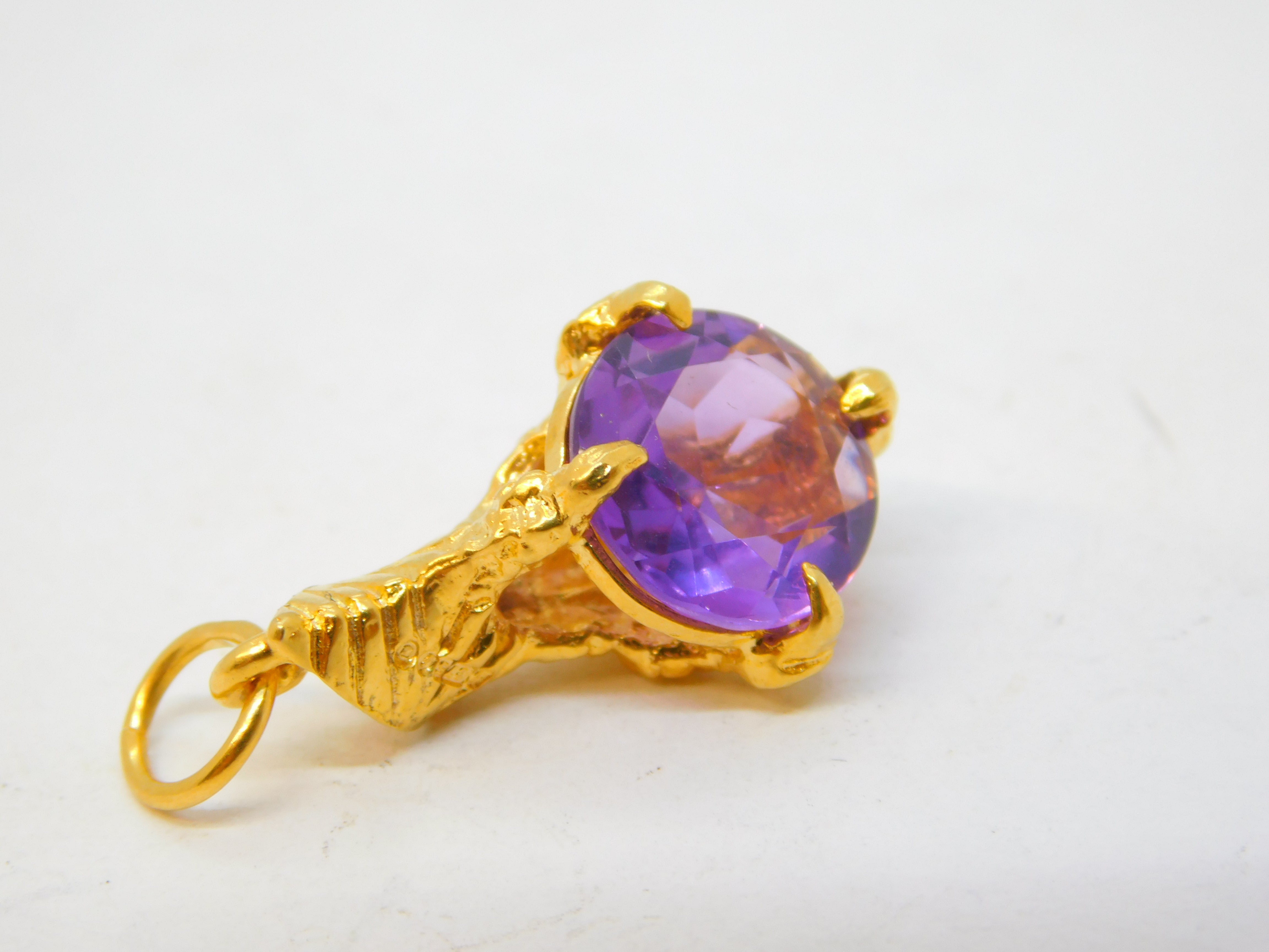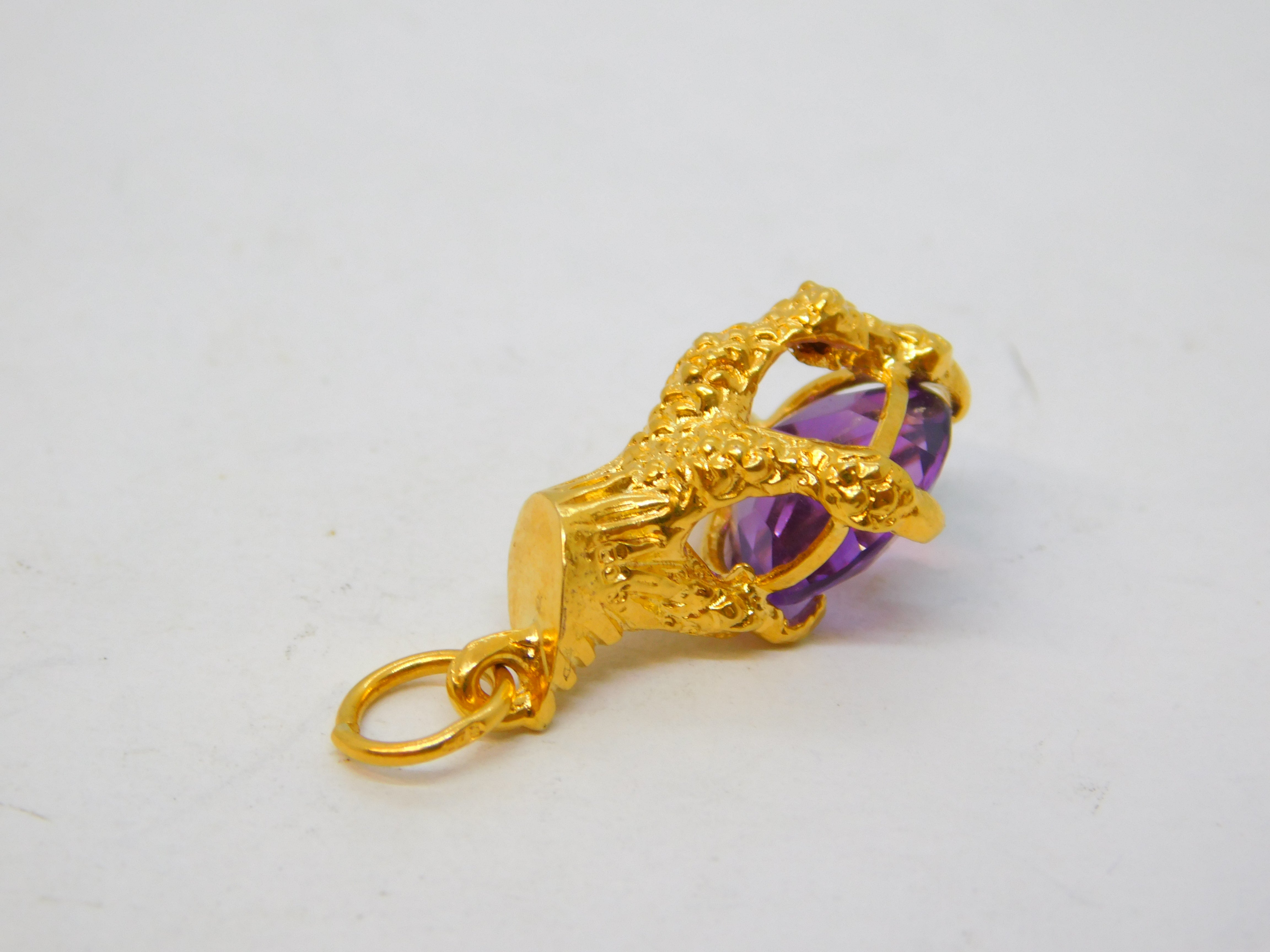 Details: A fantastic and wonderfully designed vintage 9ct yellow gold eagle claw with amethyst set charm pendant hallmarked London 1966 to the edge. This is a wonderful item that would make a perfect gift or addition to any collection.