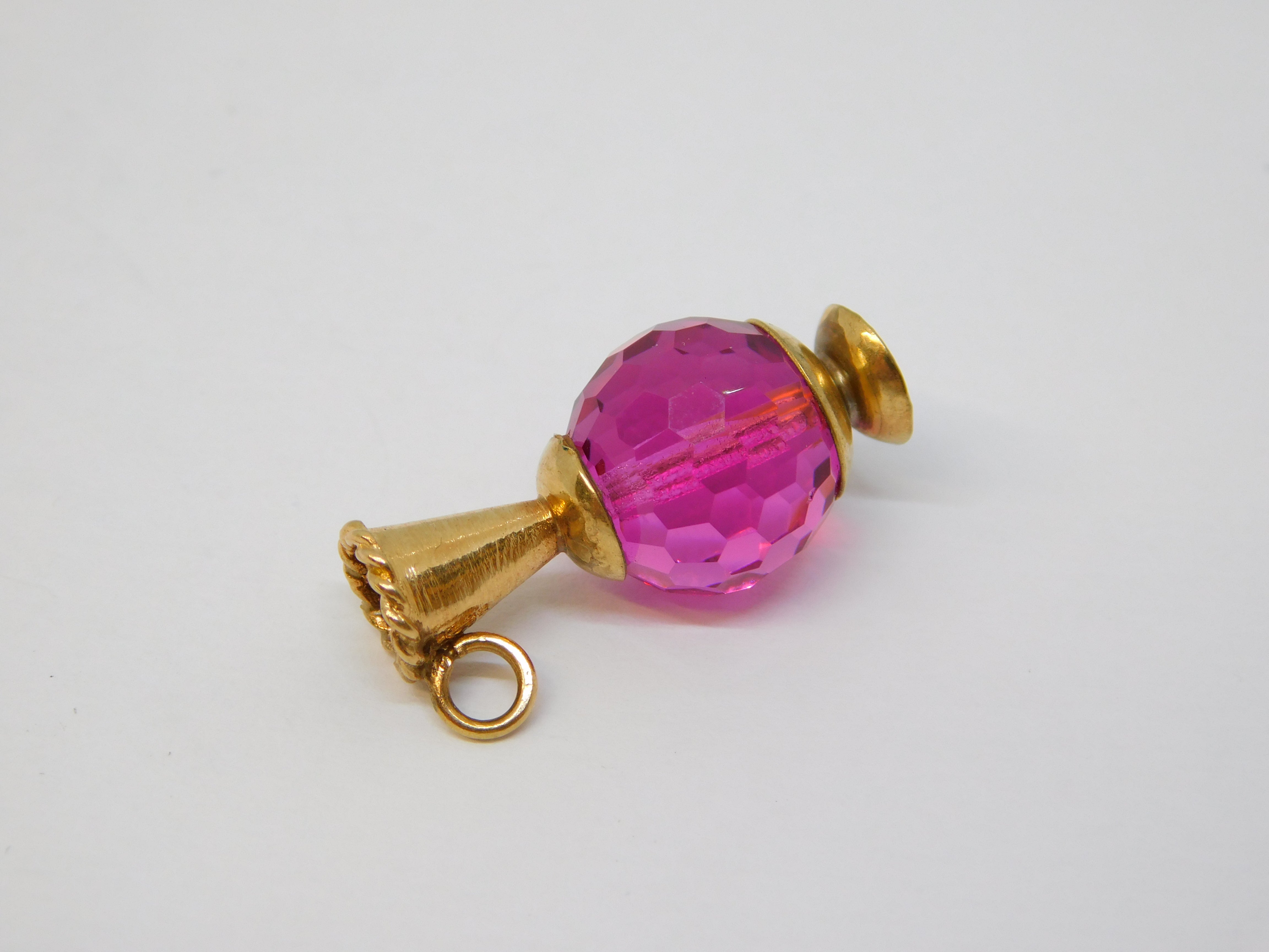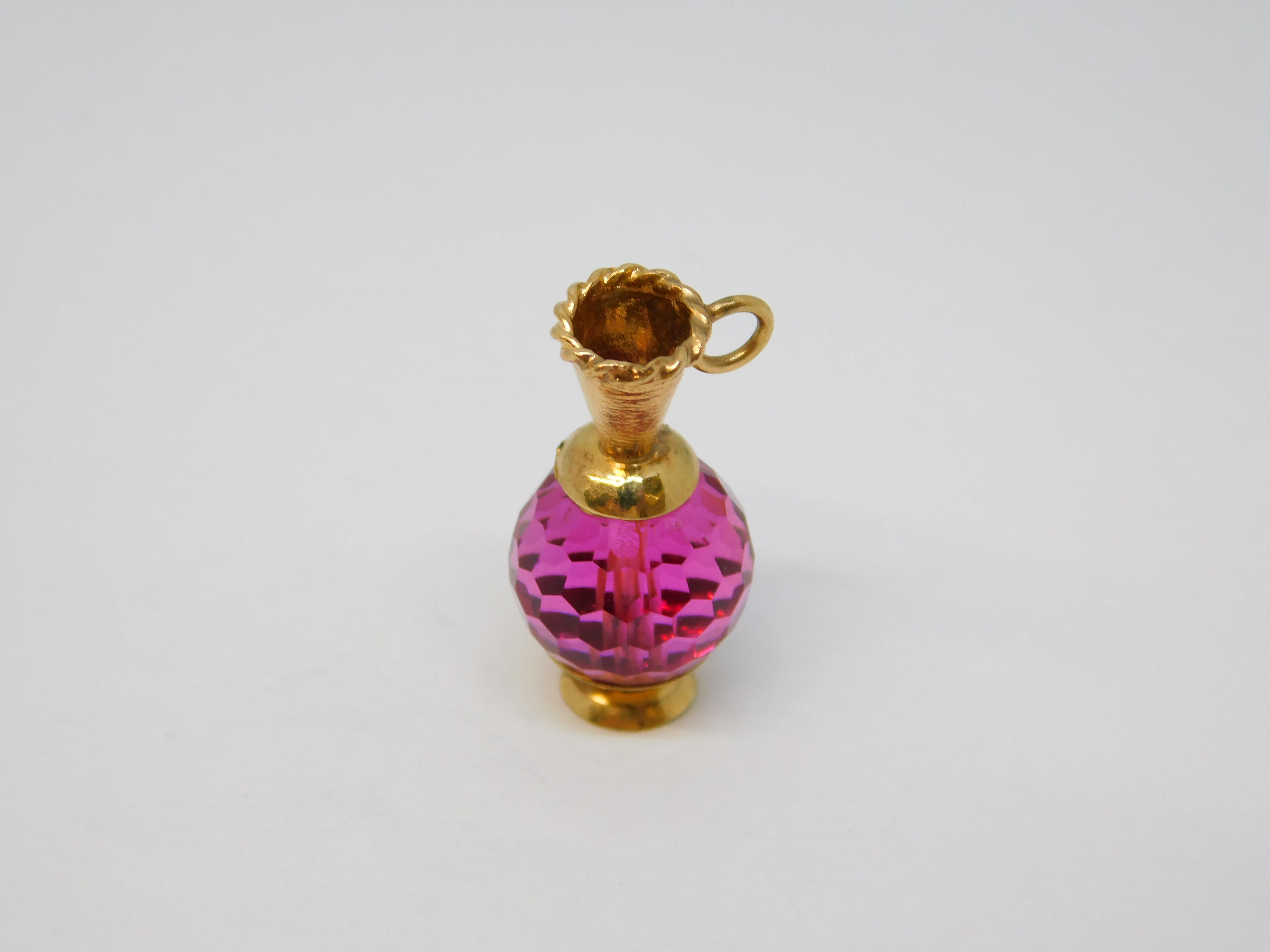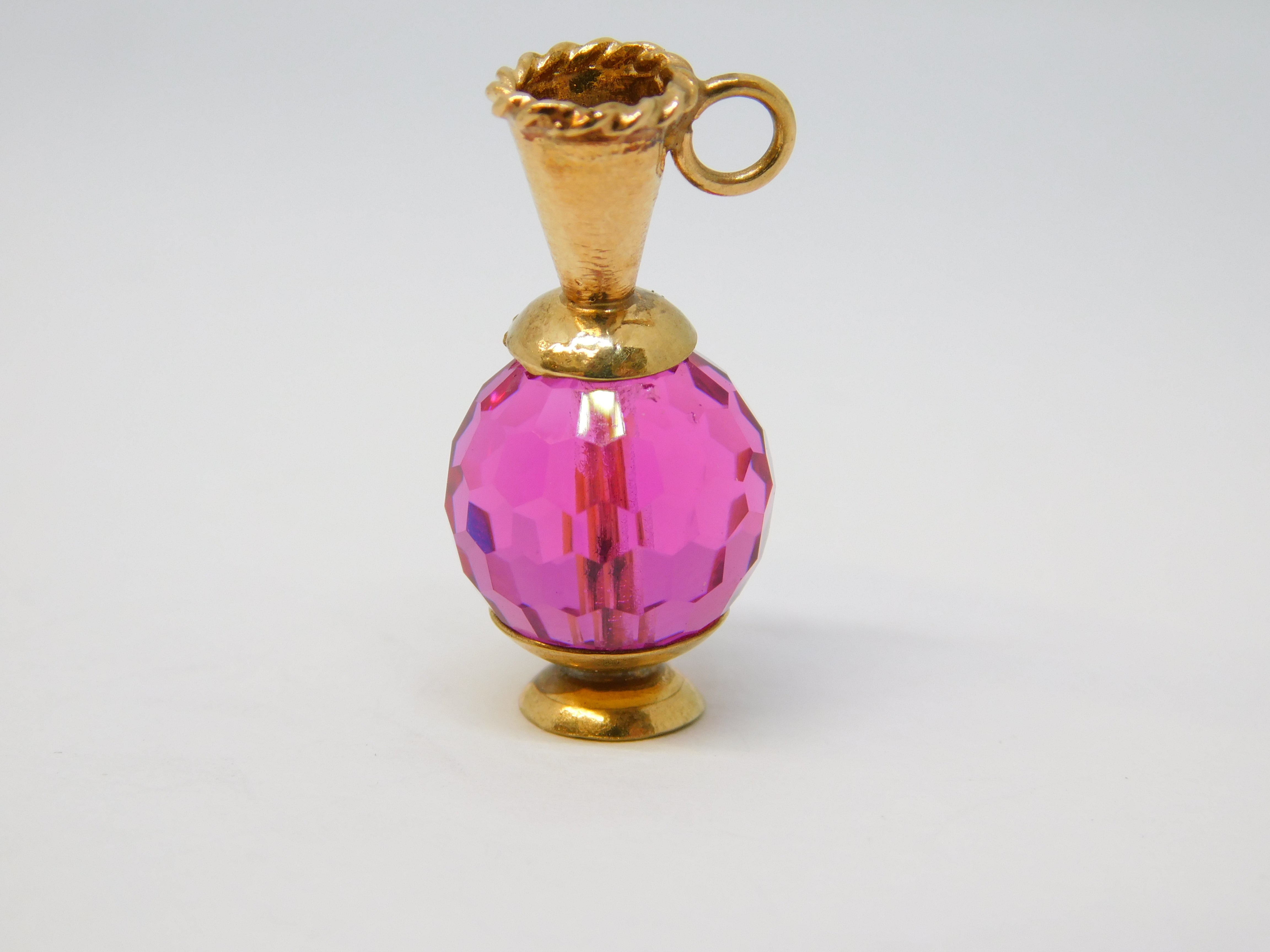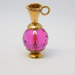 9ct Yellow Gold & Cut Pink Glass Wine Jug Charm Pendant Vintage 1973 London