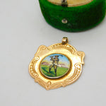 9ct Yellow Gold & Enamel Golf Sporting Fob Medal Antique 1923 Birmingham