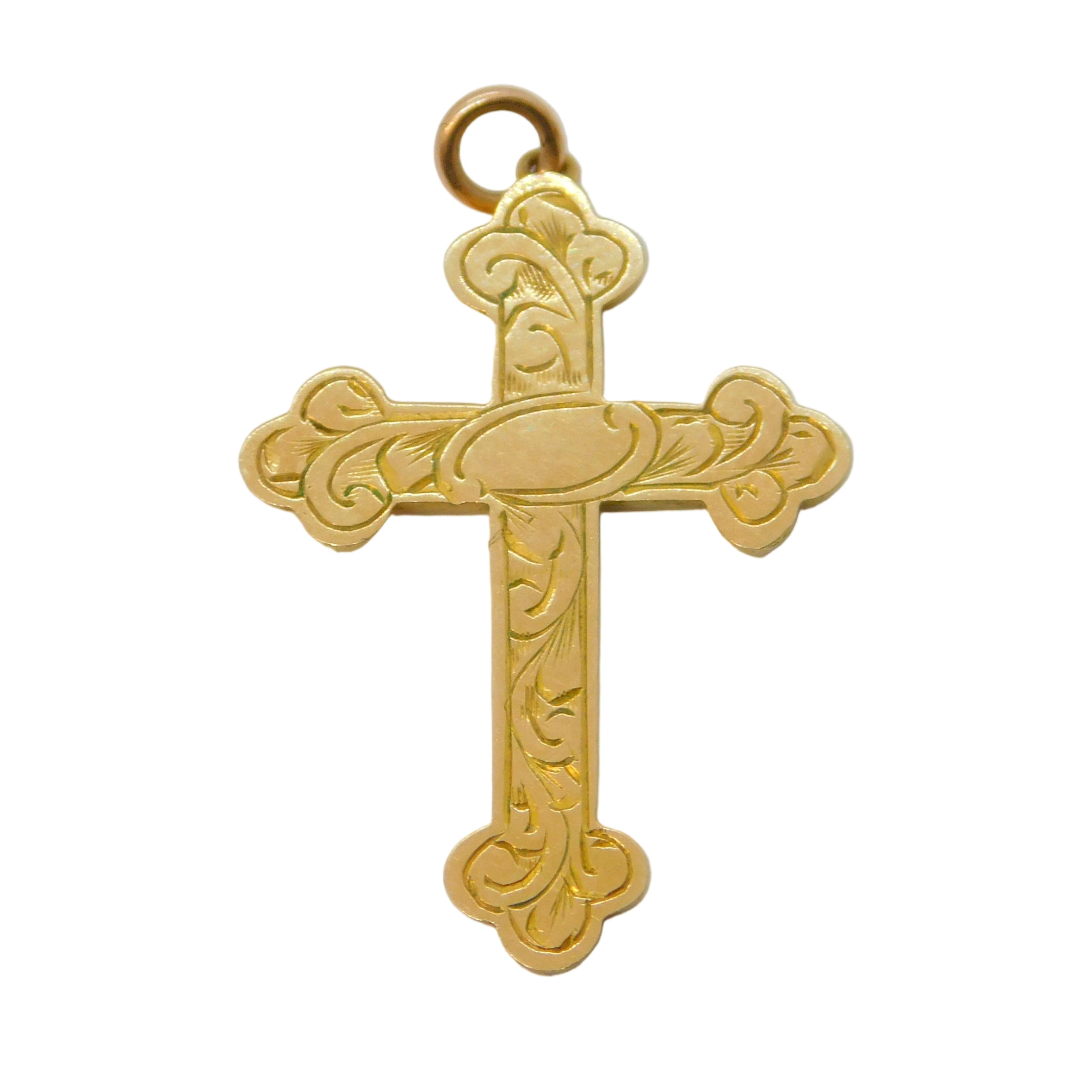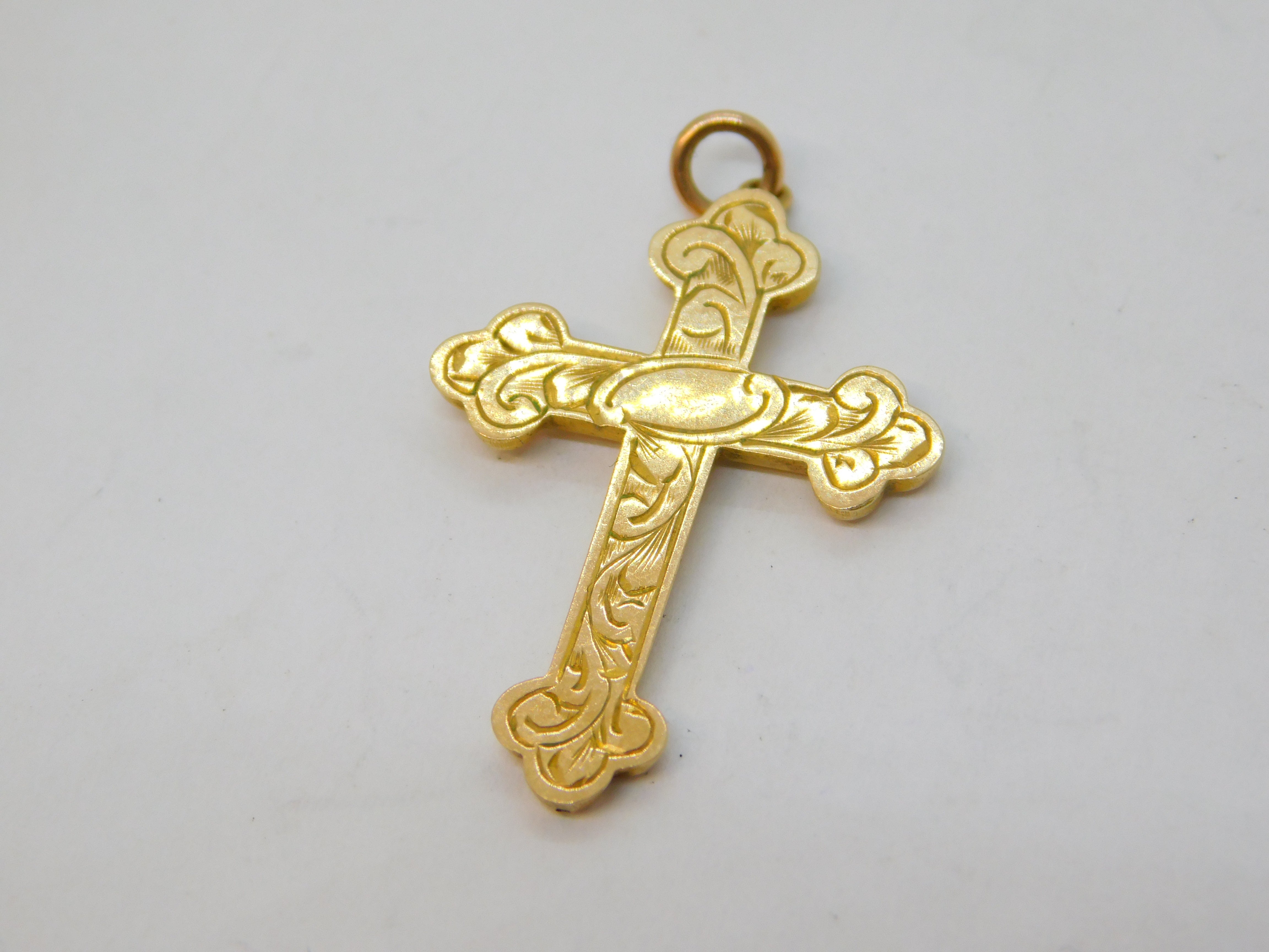 9ct Yellow Gold Floral Pattern Cross Pendant Antique c1920 Art Deco