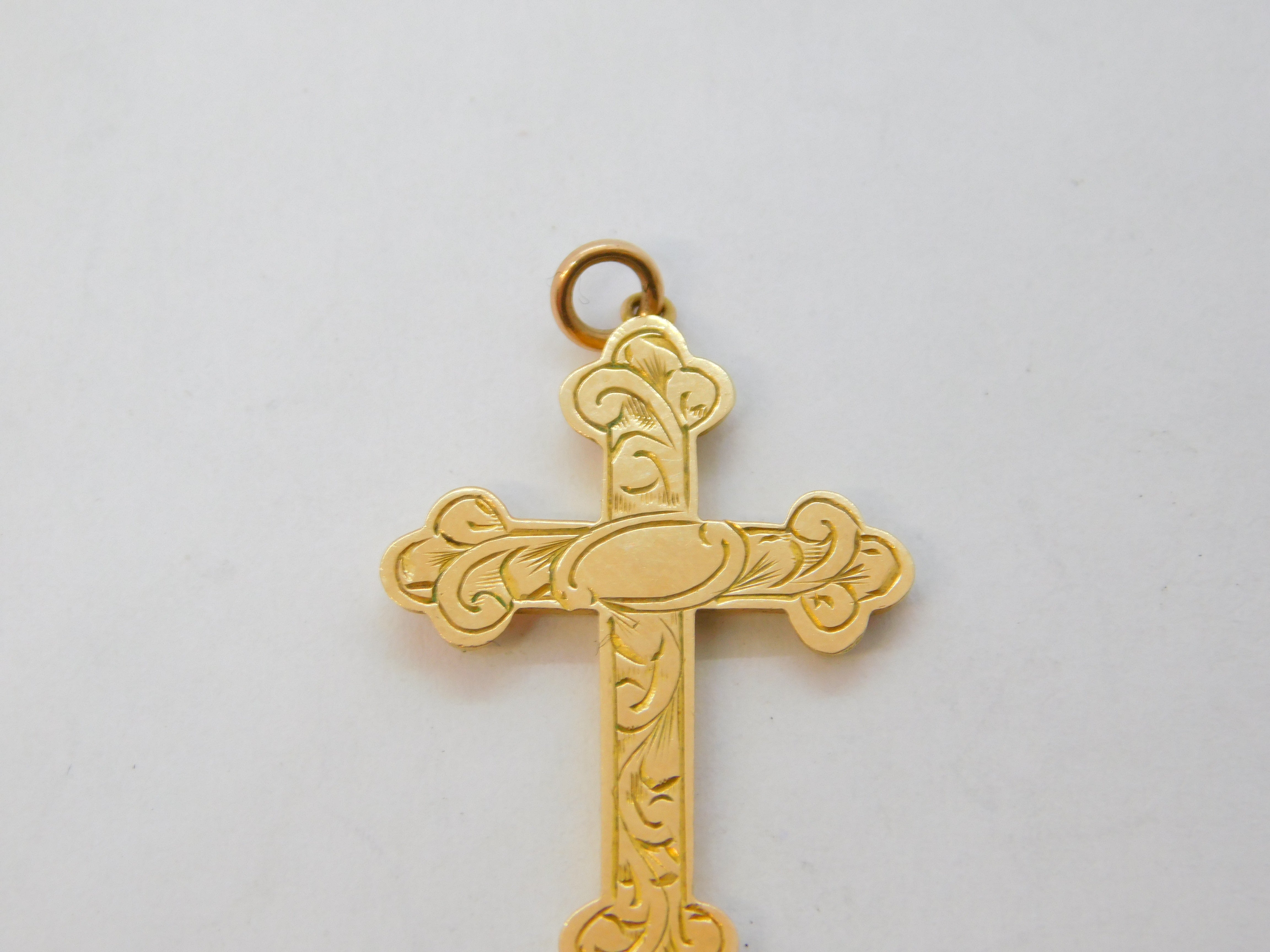 Details: A fantastic and wonderfully designed antique art deco 9ct yellow gold floral pattern cross pendant with lovely detailing hallmarked to the reverse c1920. This is a wonderful item that would make a perfect gift or addition to any collection. We are more than happy to provide XRF reports for items upon request.