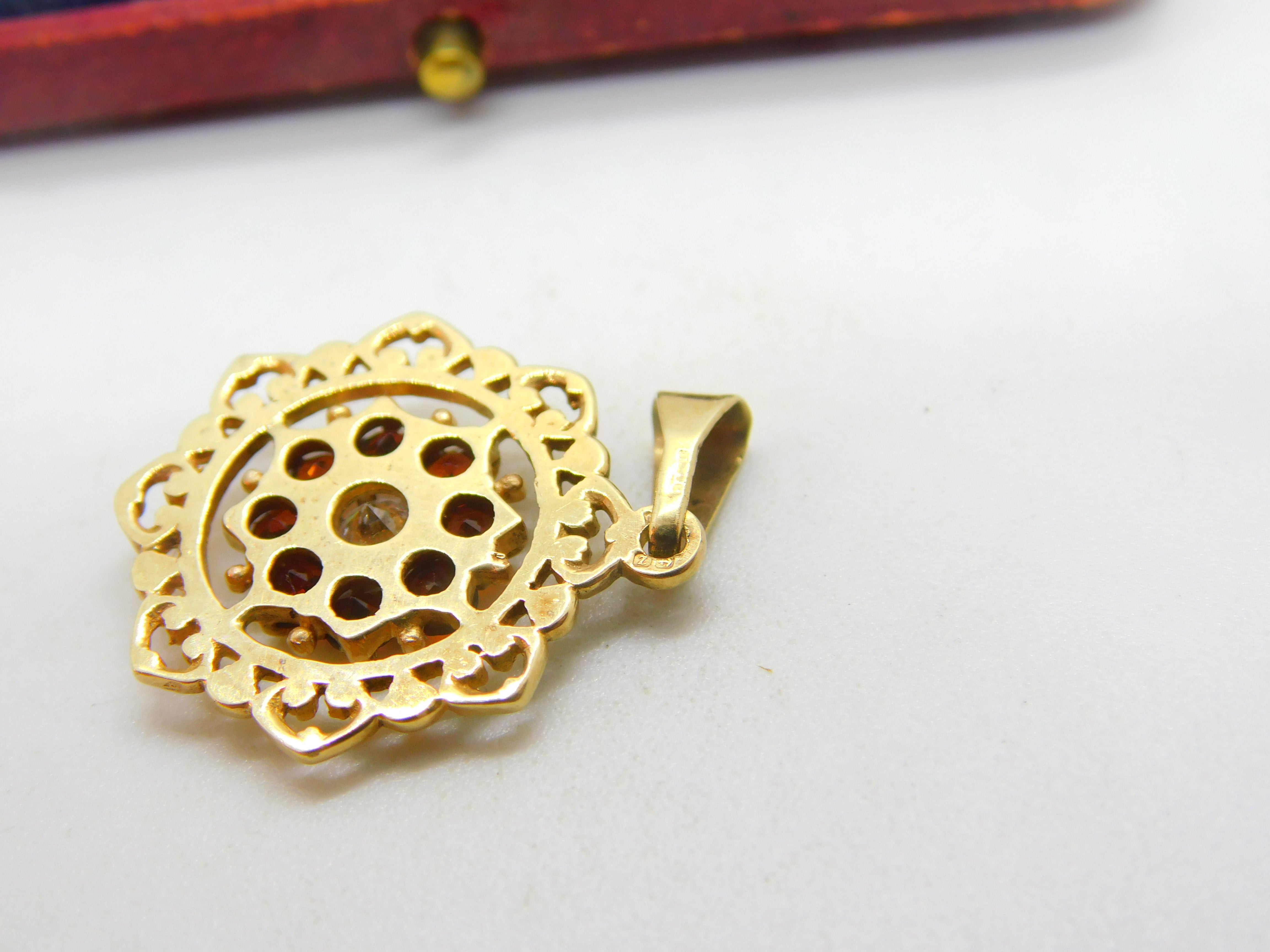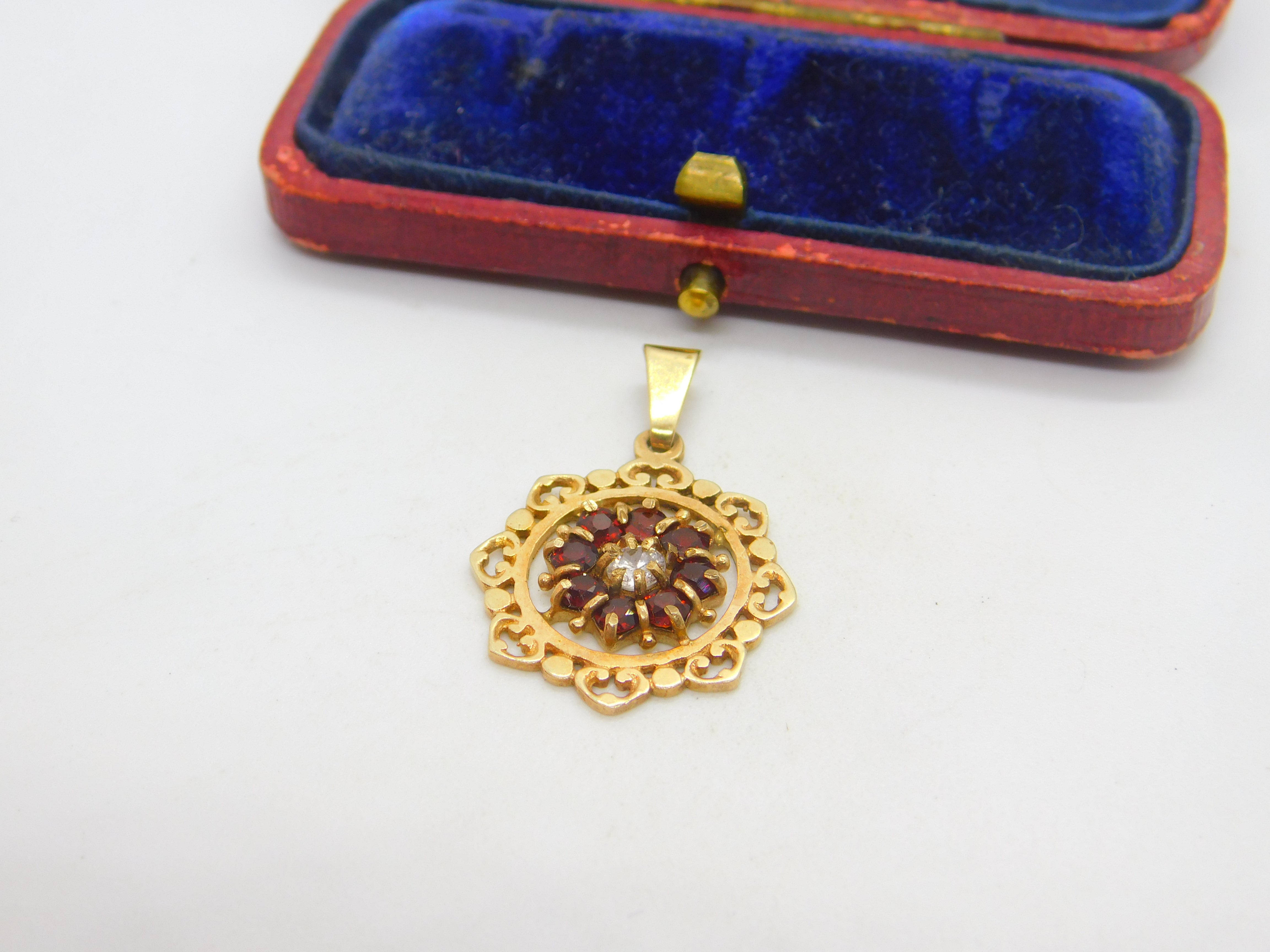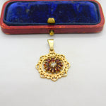 9ct Yellow Gold, Garnet & 0.1ct Diamond Paste Drop Pendant 1974 Birmingham