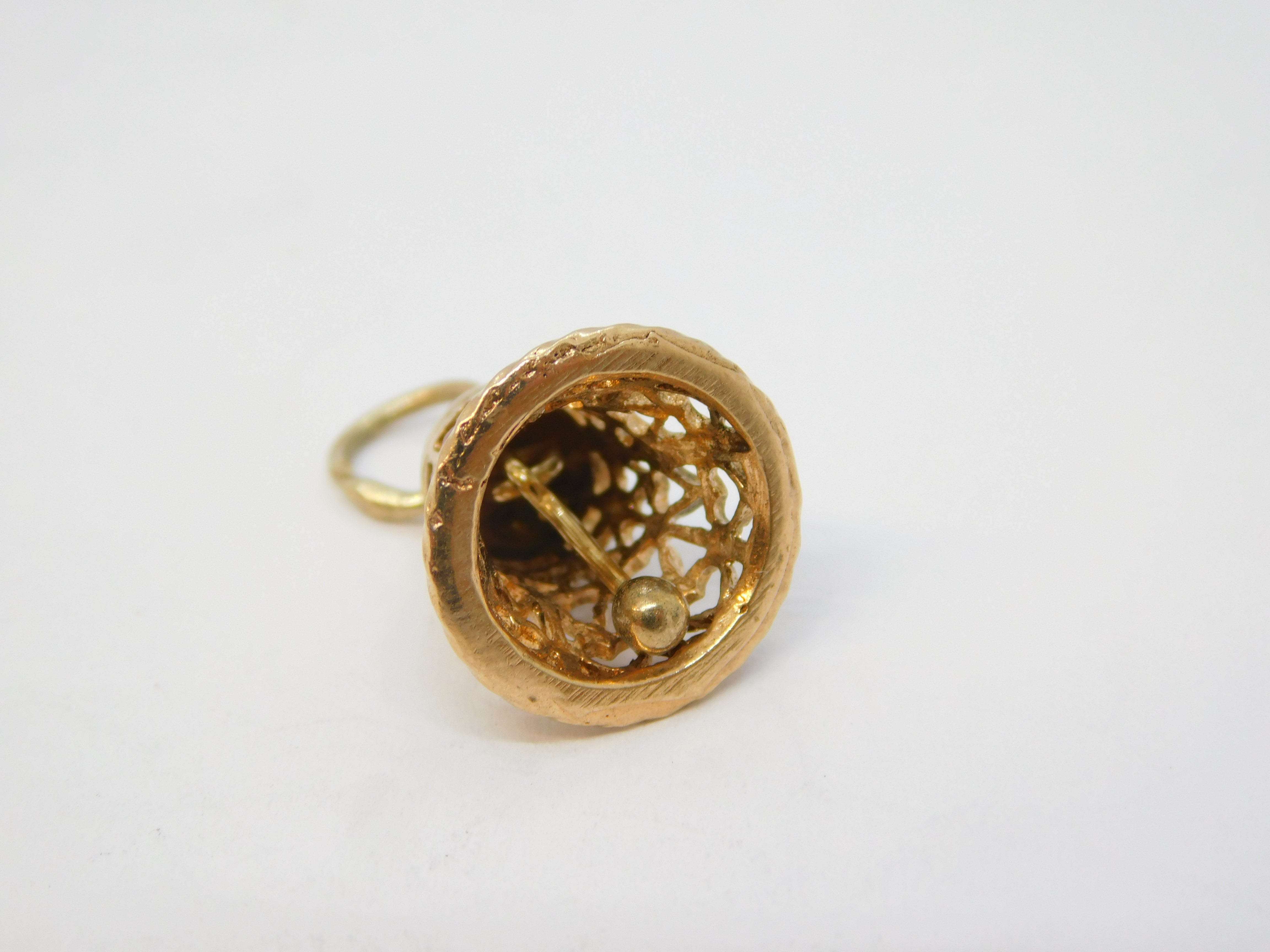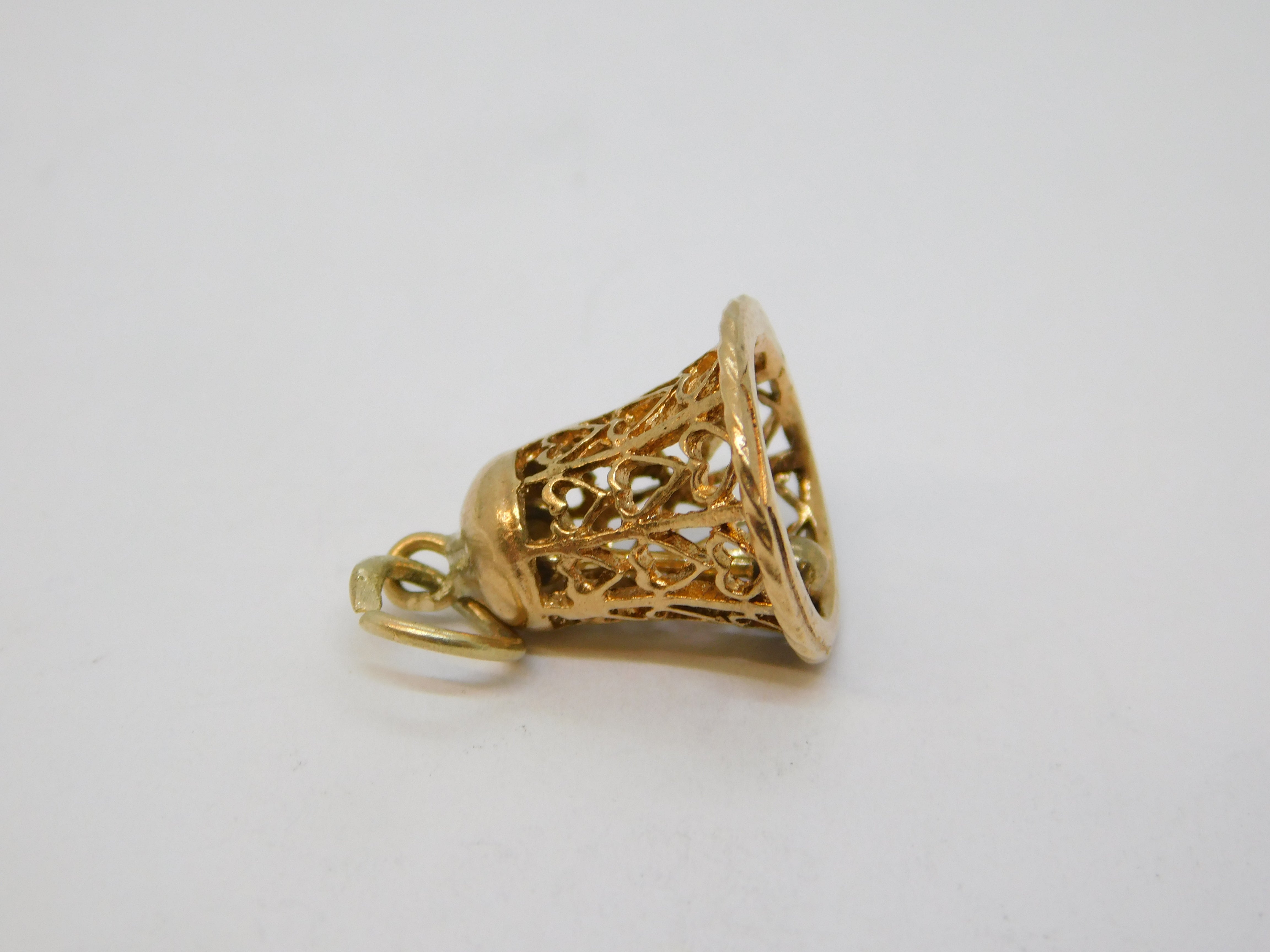 9ct Yellow Gold Ringing Bell Charm Pendant Vintage c1970
