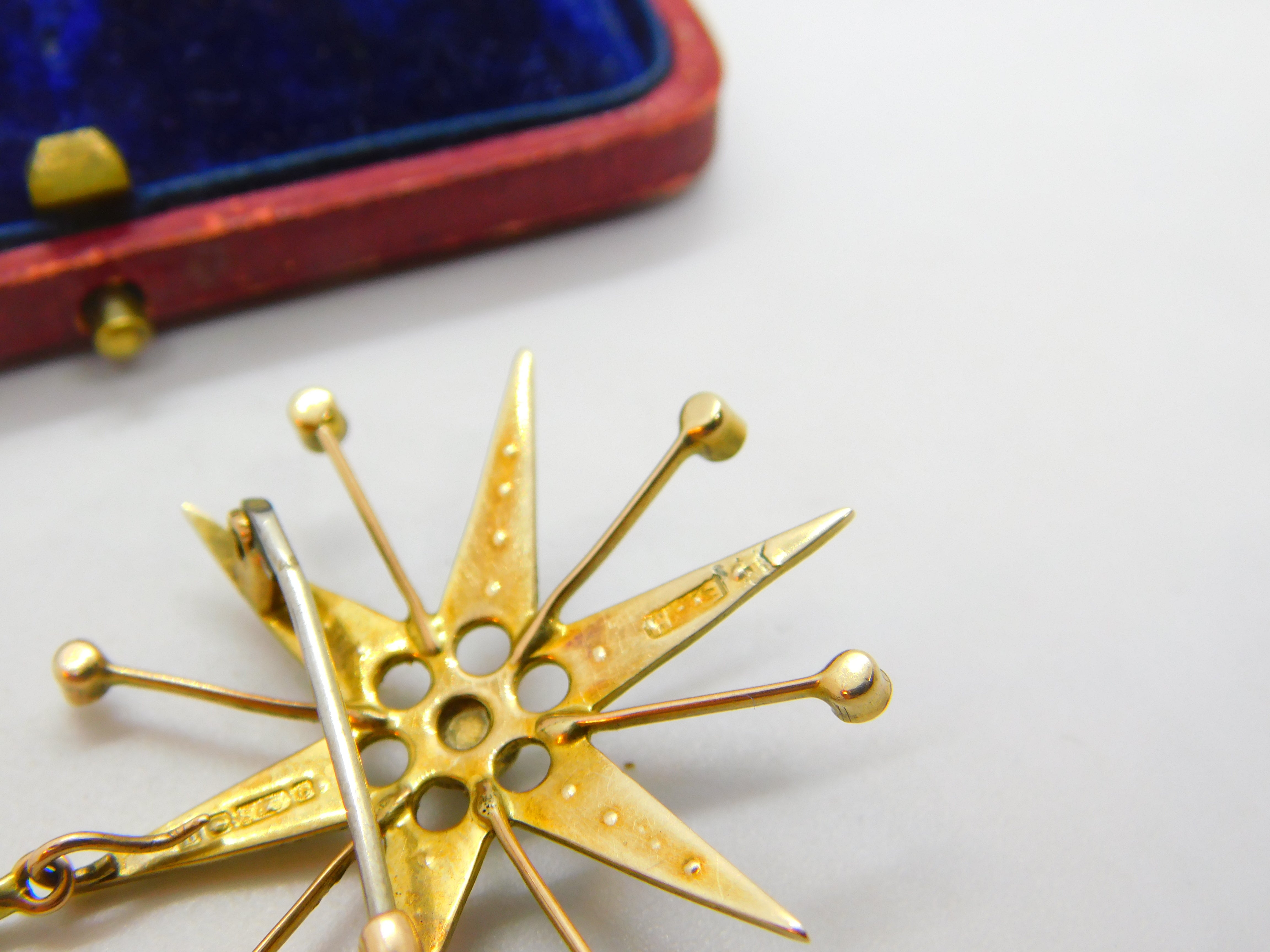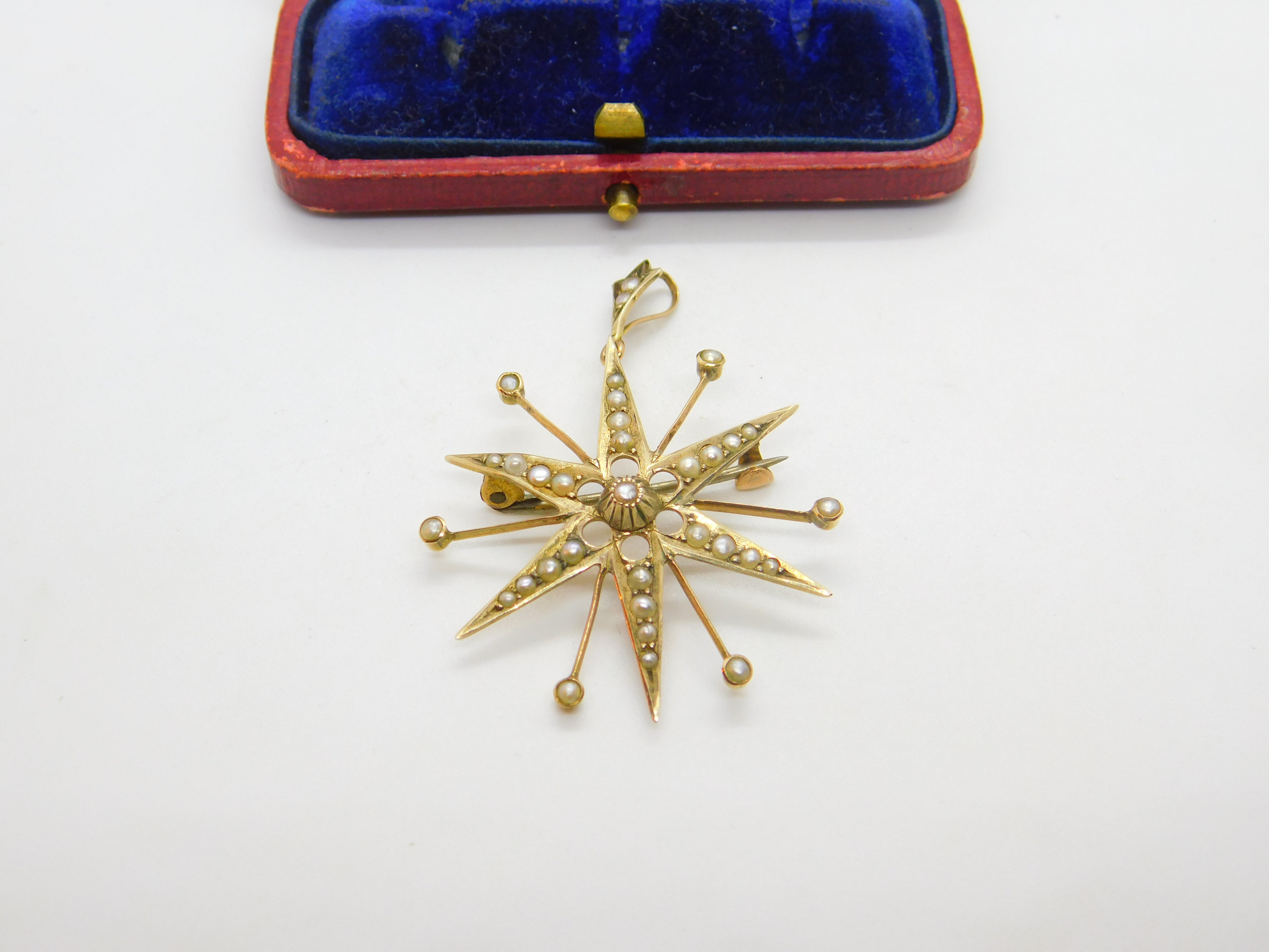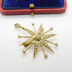 9ct Yellow Gold & Seed Pearl Set Starburst Pendant Antique 1915 Birmingham Deco
