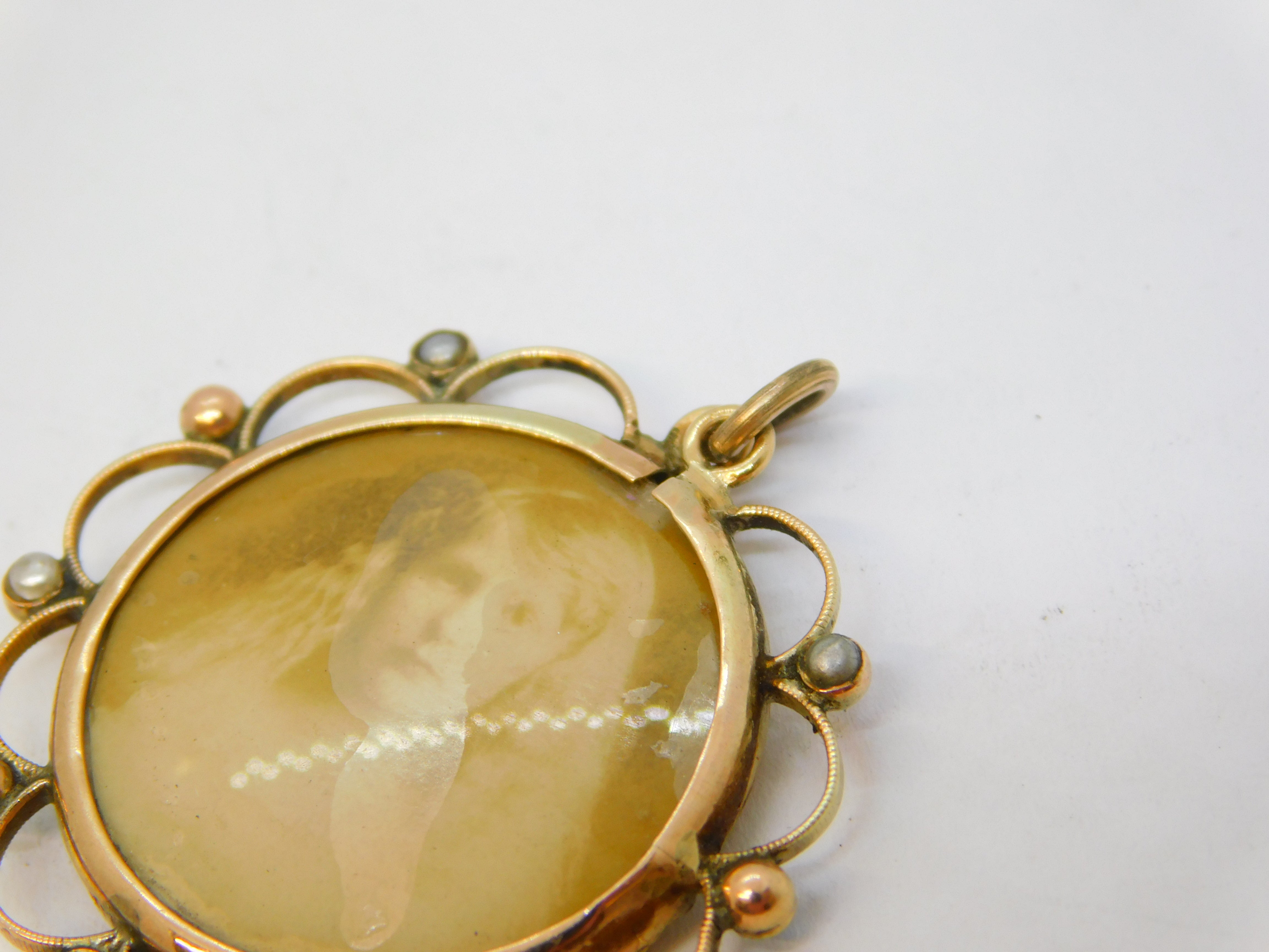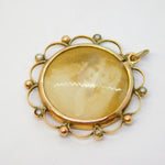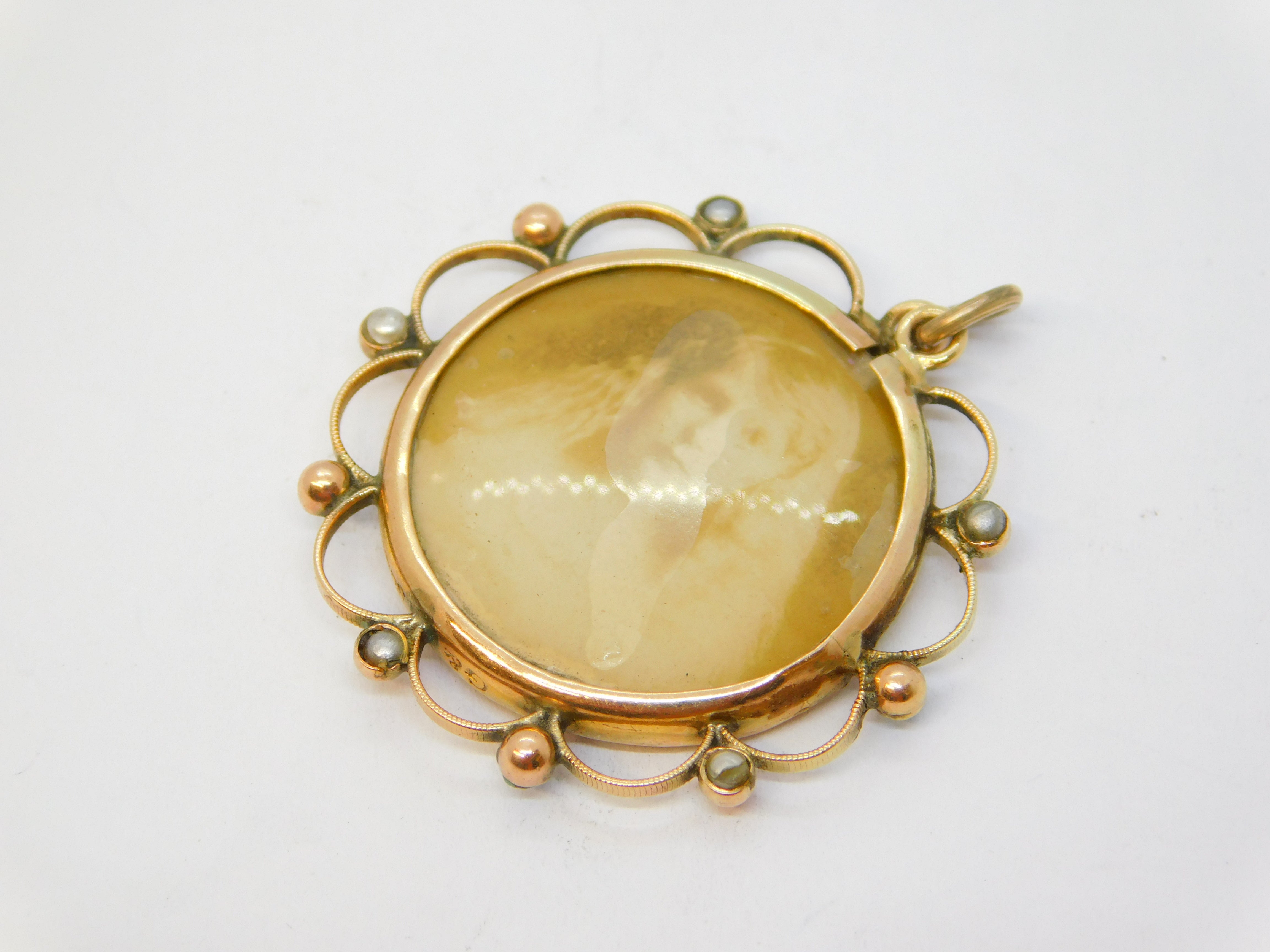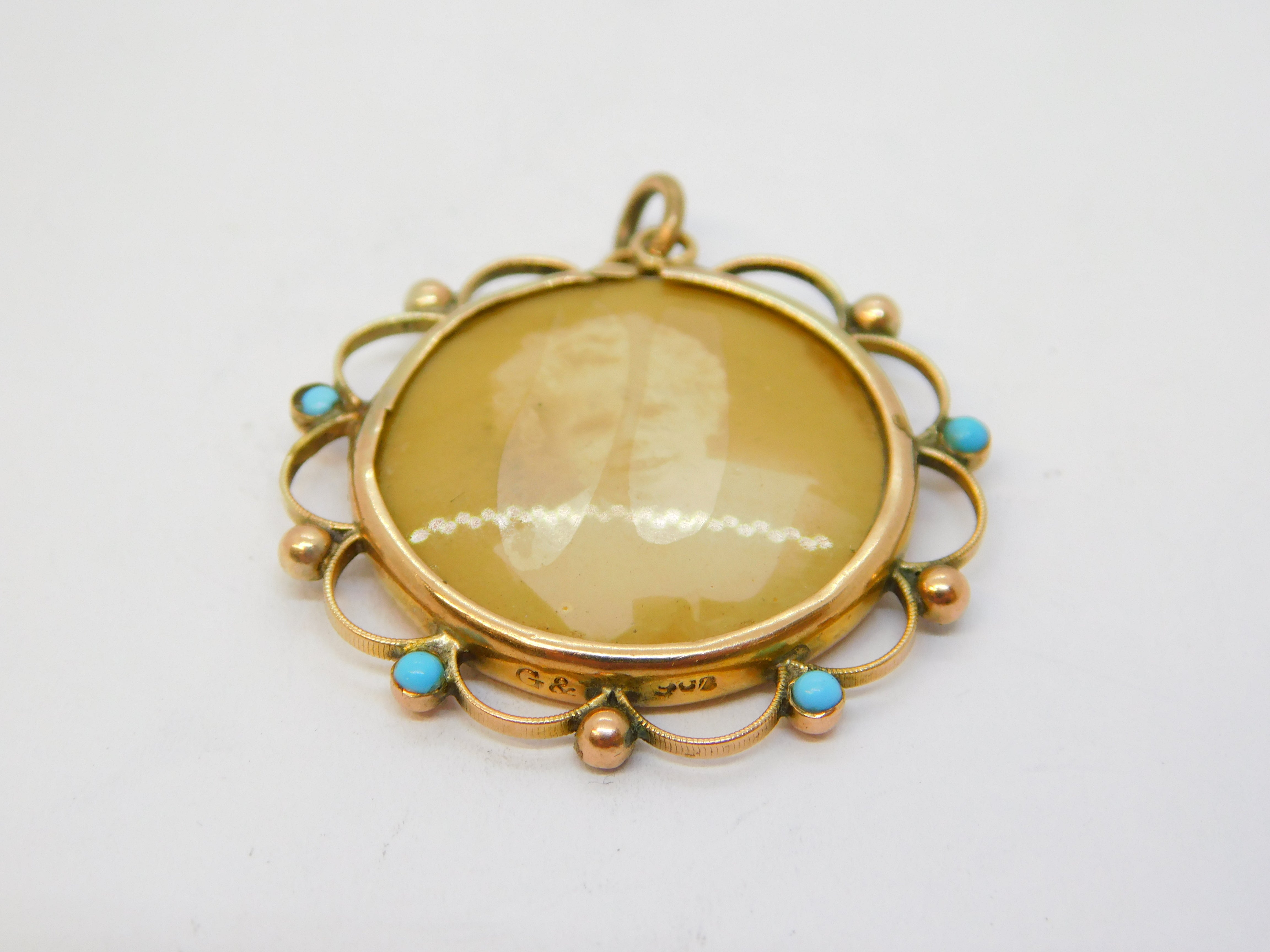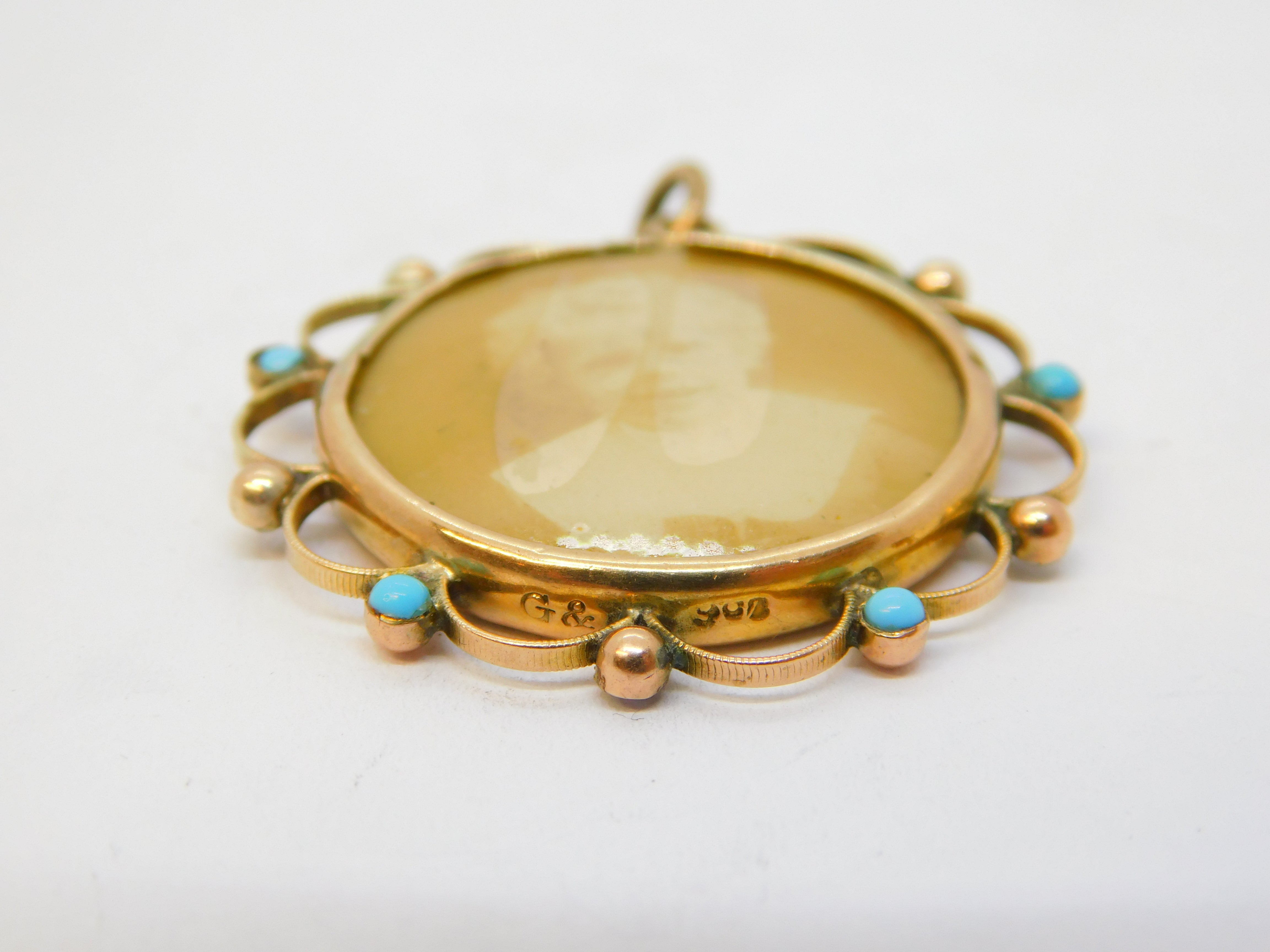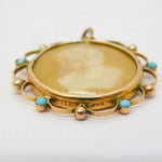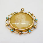 9ct Yellow Gold, Turquoise, Pearl Set Floral Portrait Pendant Antique c1910