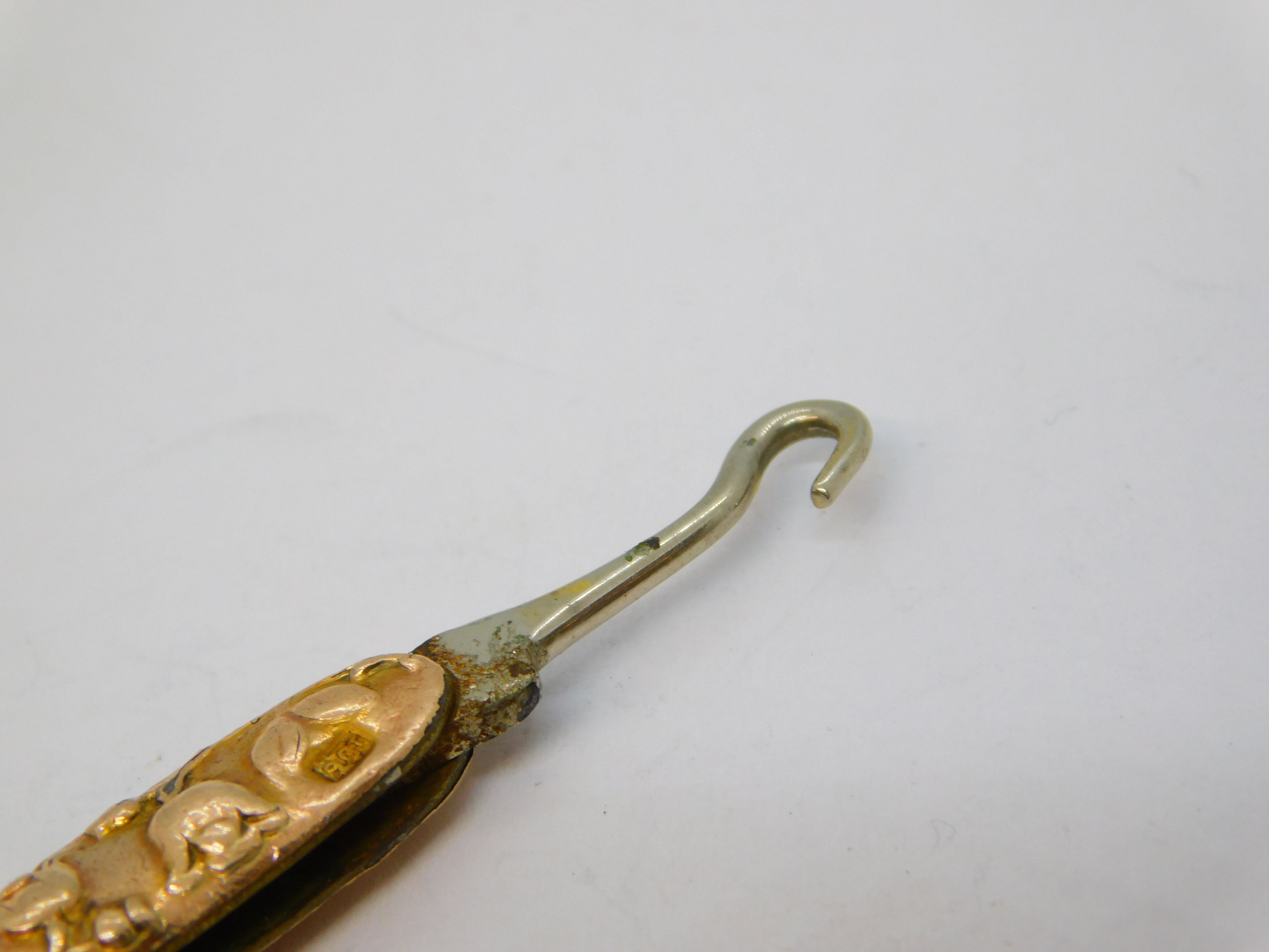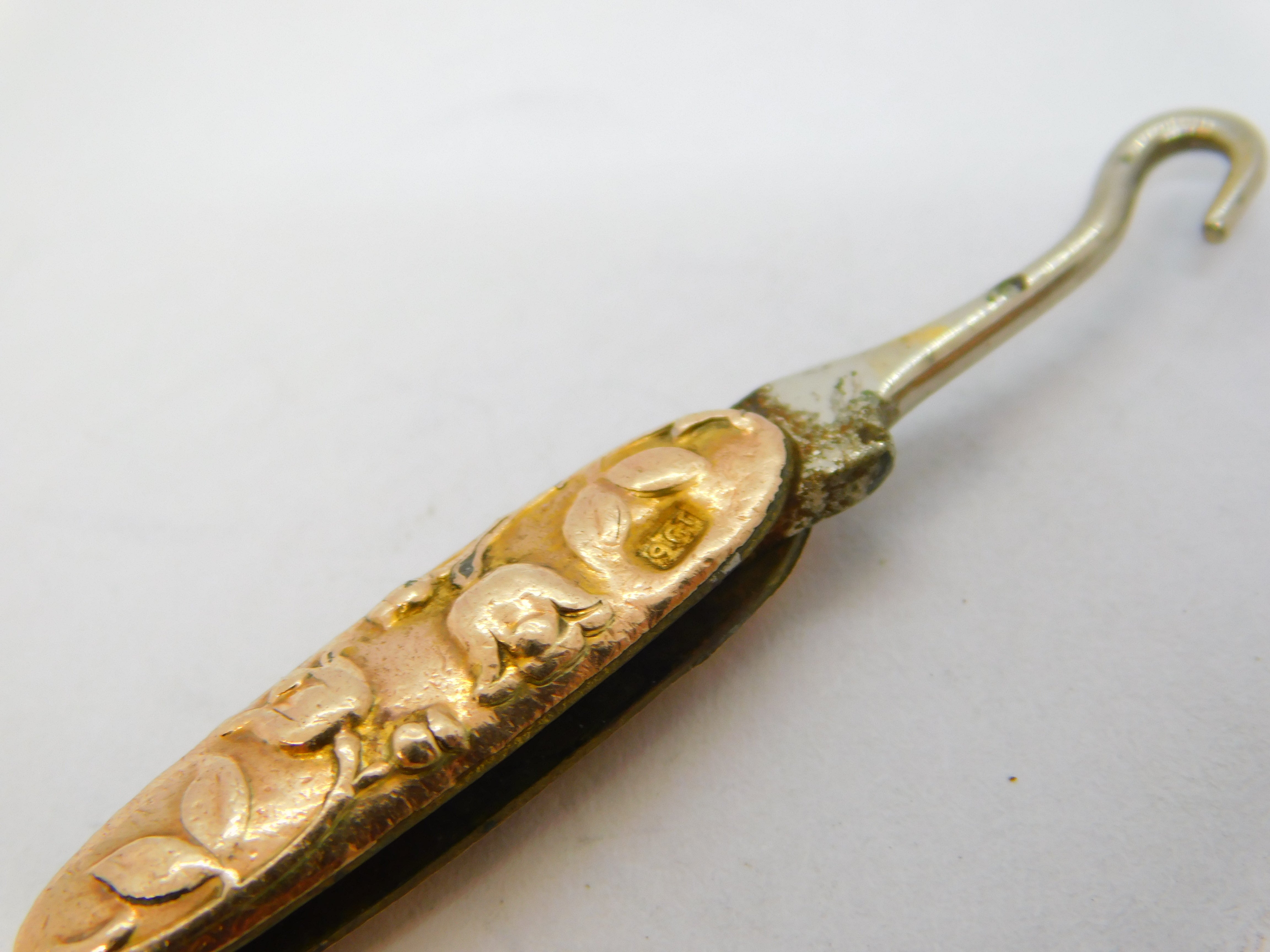 Details: A fantastic and wonderfully designed antique art nouveau period 9ct rose gold and cut steel miniature propelling button hook fob pendant with floral detailing hallmarked 9ct to the edge c1900. This is a wonderful item that would make a perfect gift or addition to any collection. We are more than happy to provide XRF reports for items upon request.