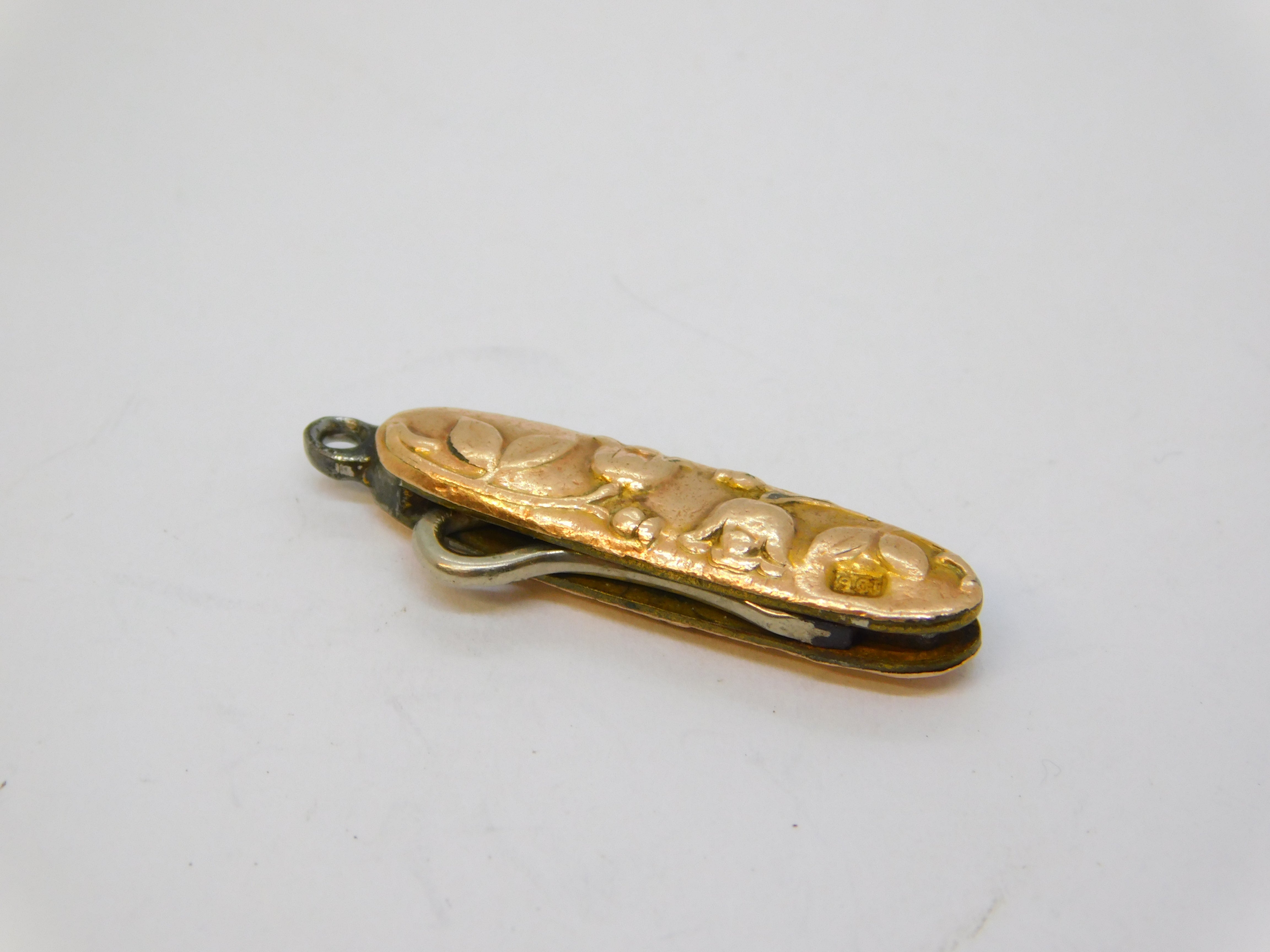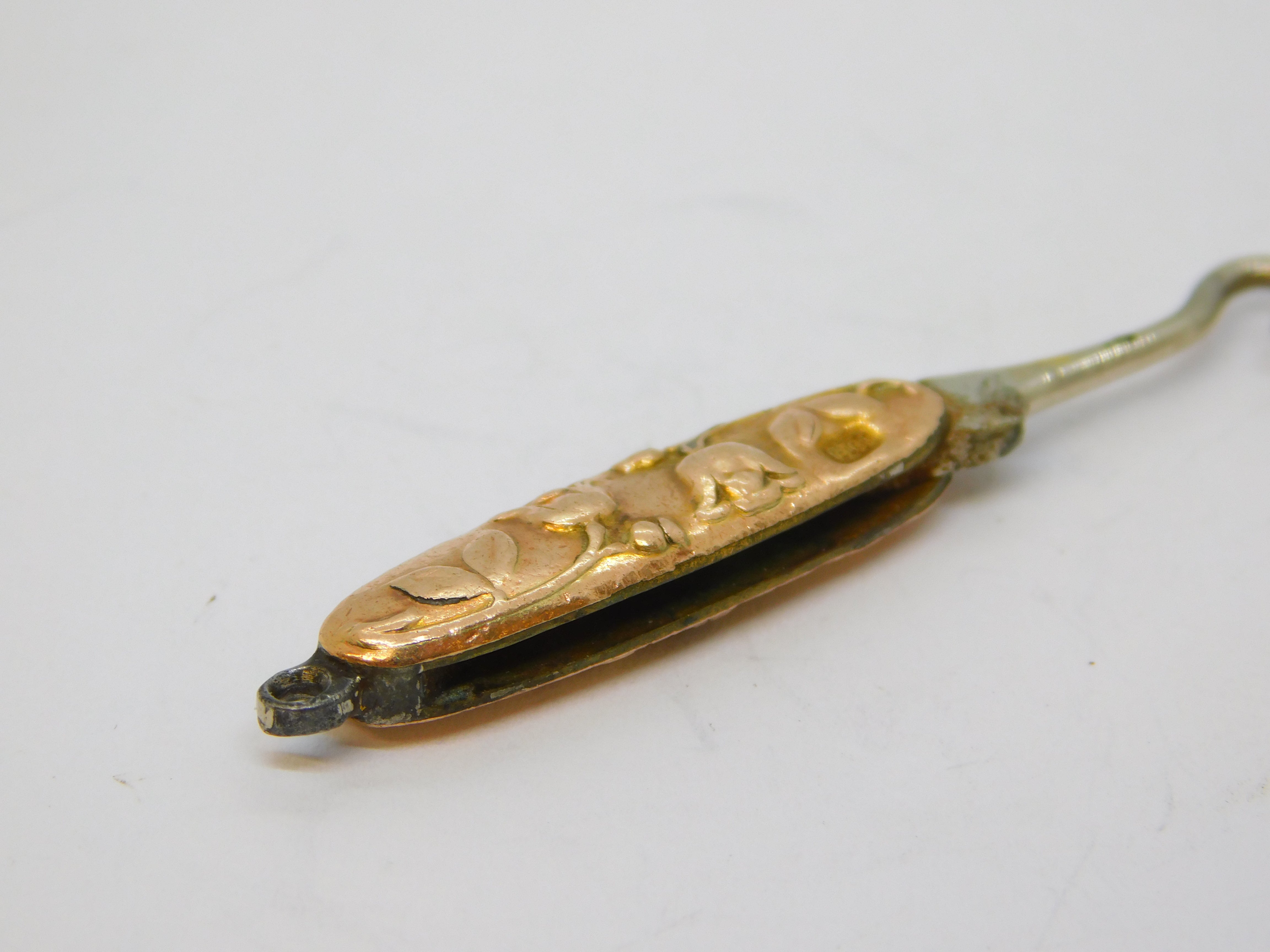 Art Nouveau 9ct Rose Gold Miniature Floral Button Hook Pendant Antique c1900