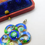 Art Nouveau Sterling Silver Guilloche Enamel Floral Pendant 1909 Birmingham
