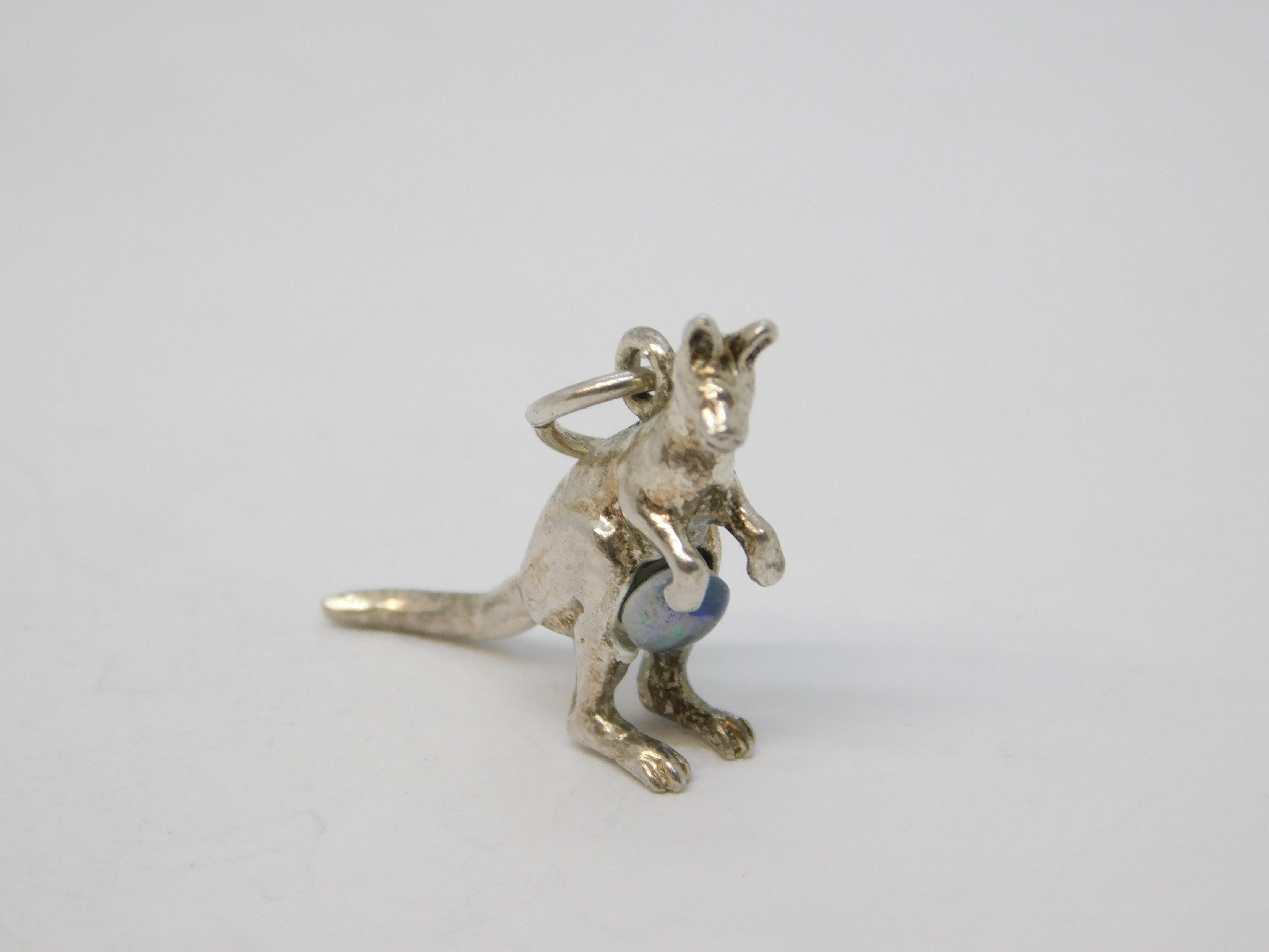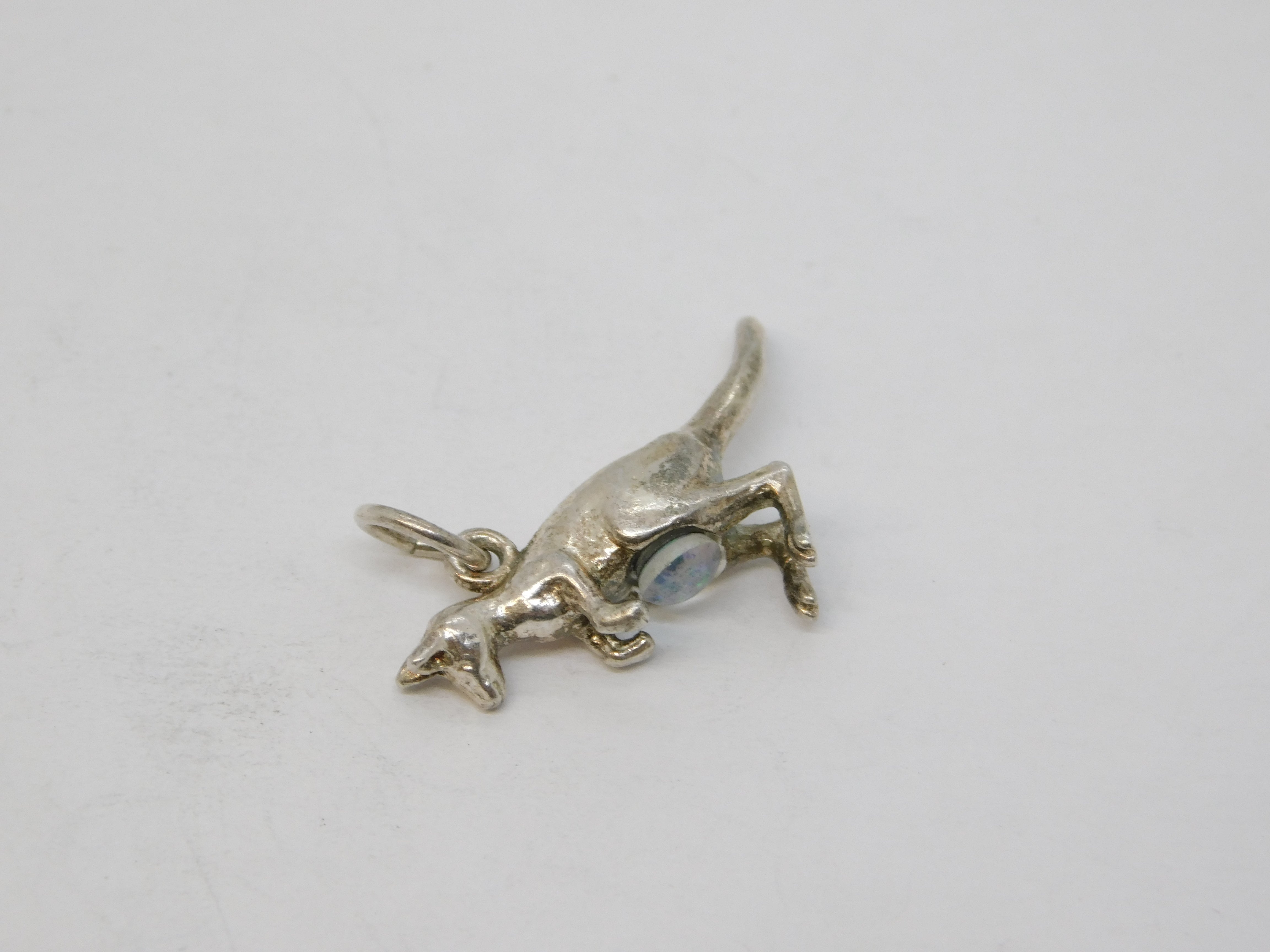 Australian Sterling Silver & Opal Set Kangaroo Charm Pendant Vintage c1970