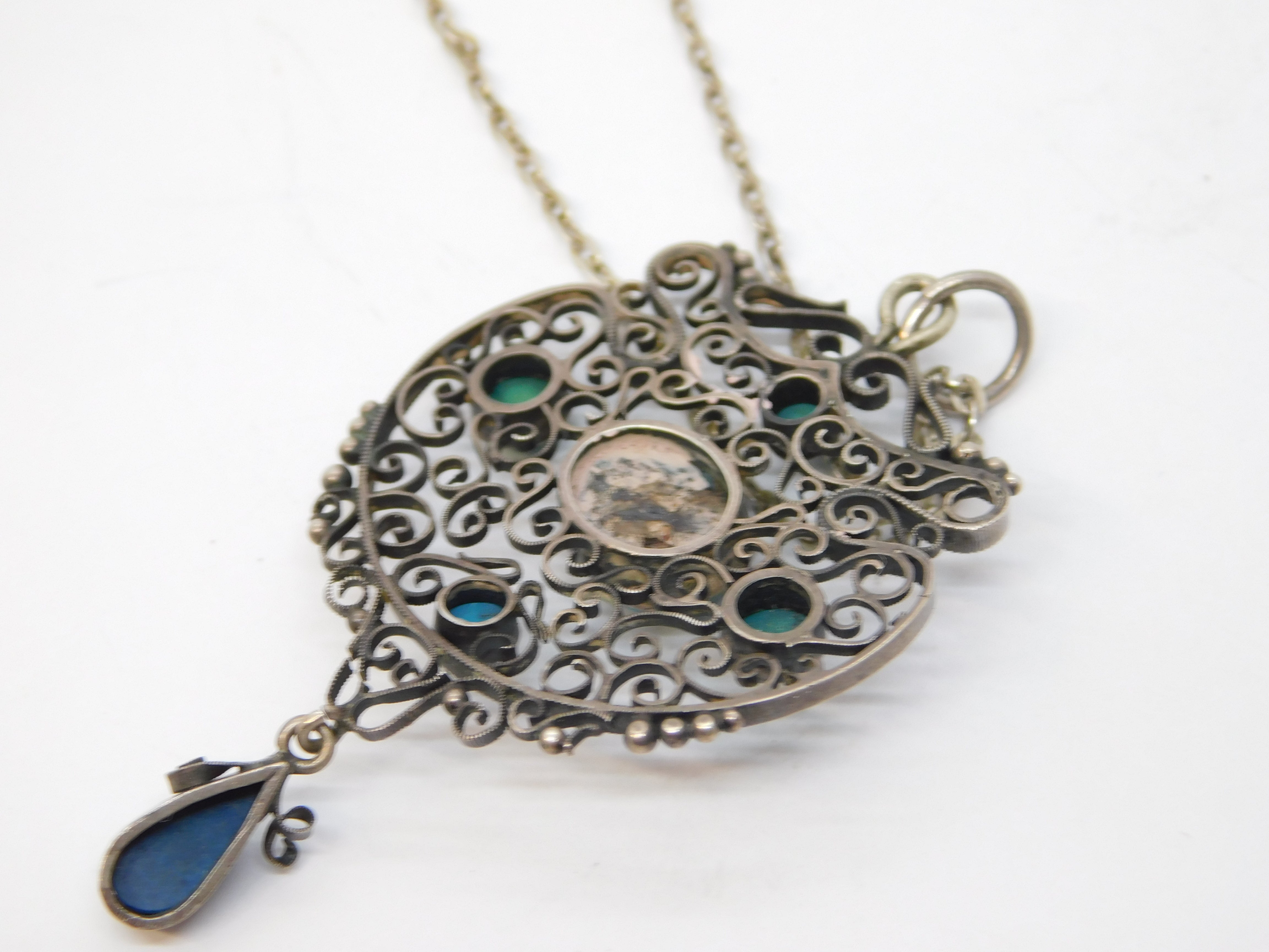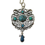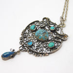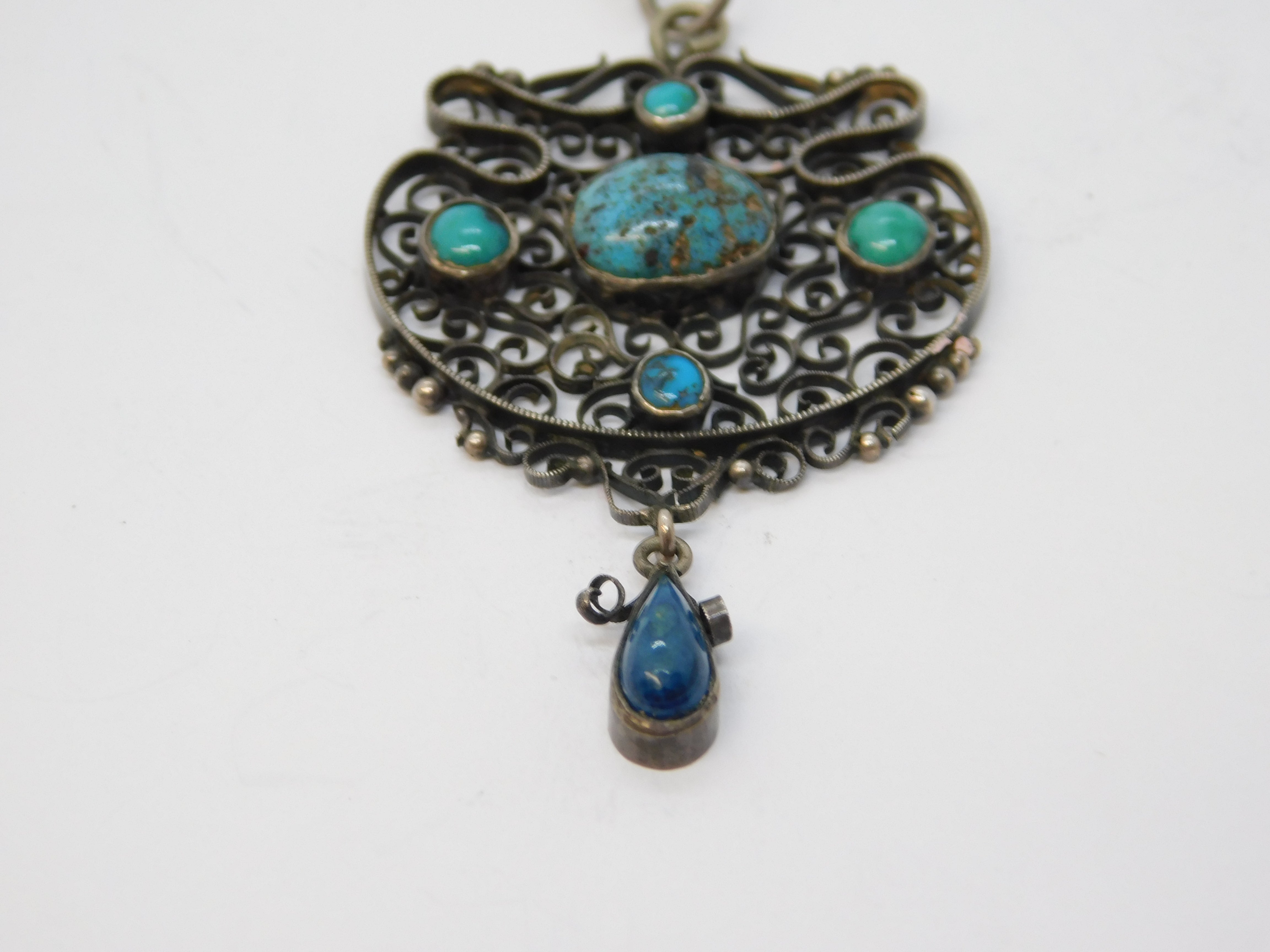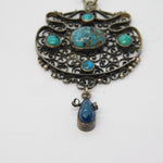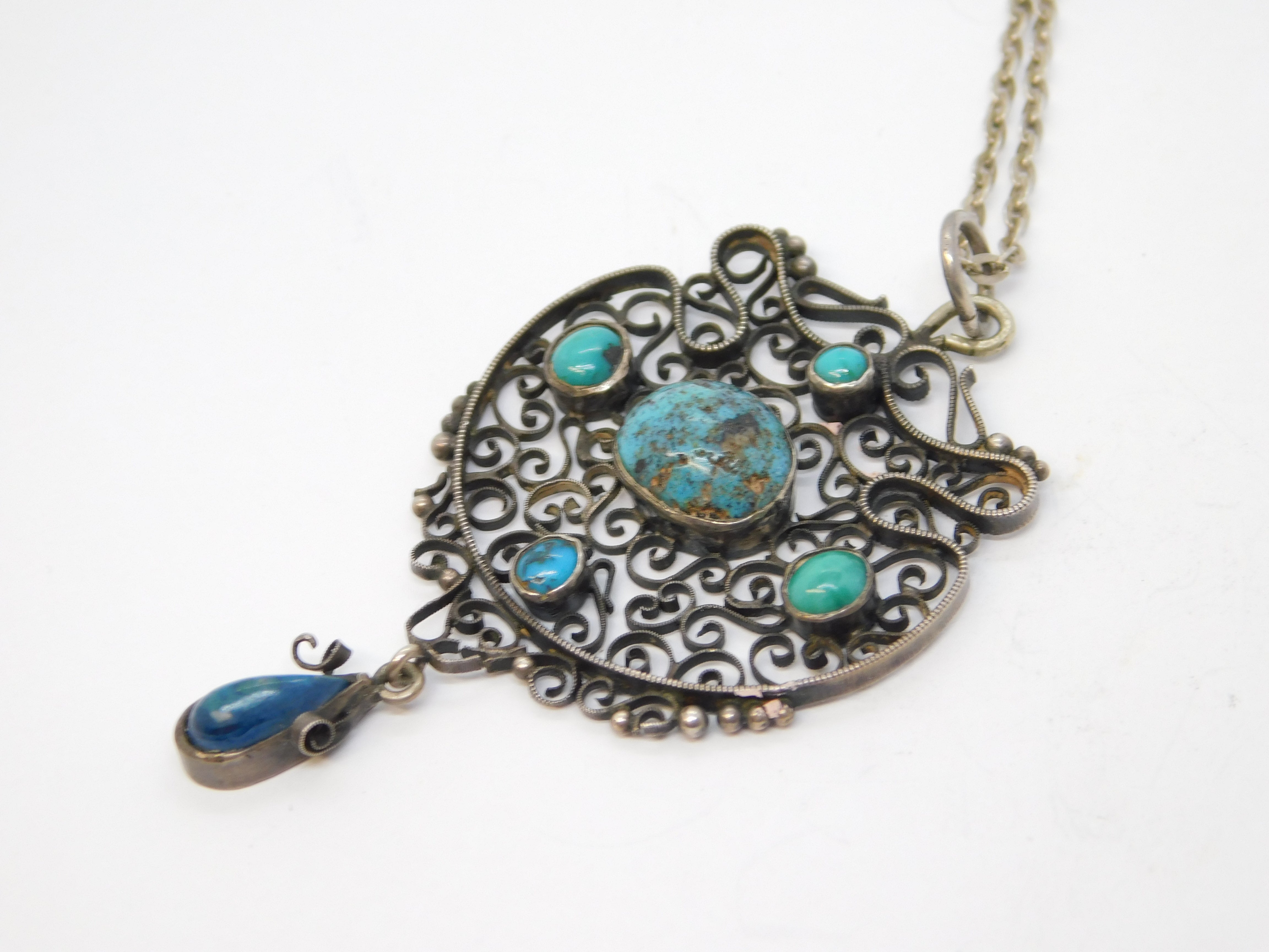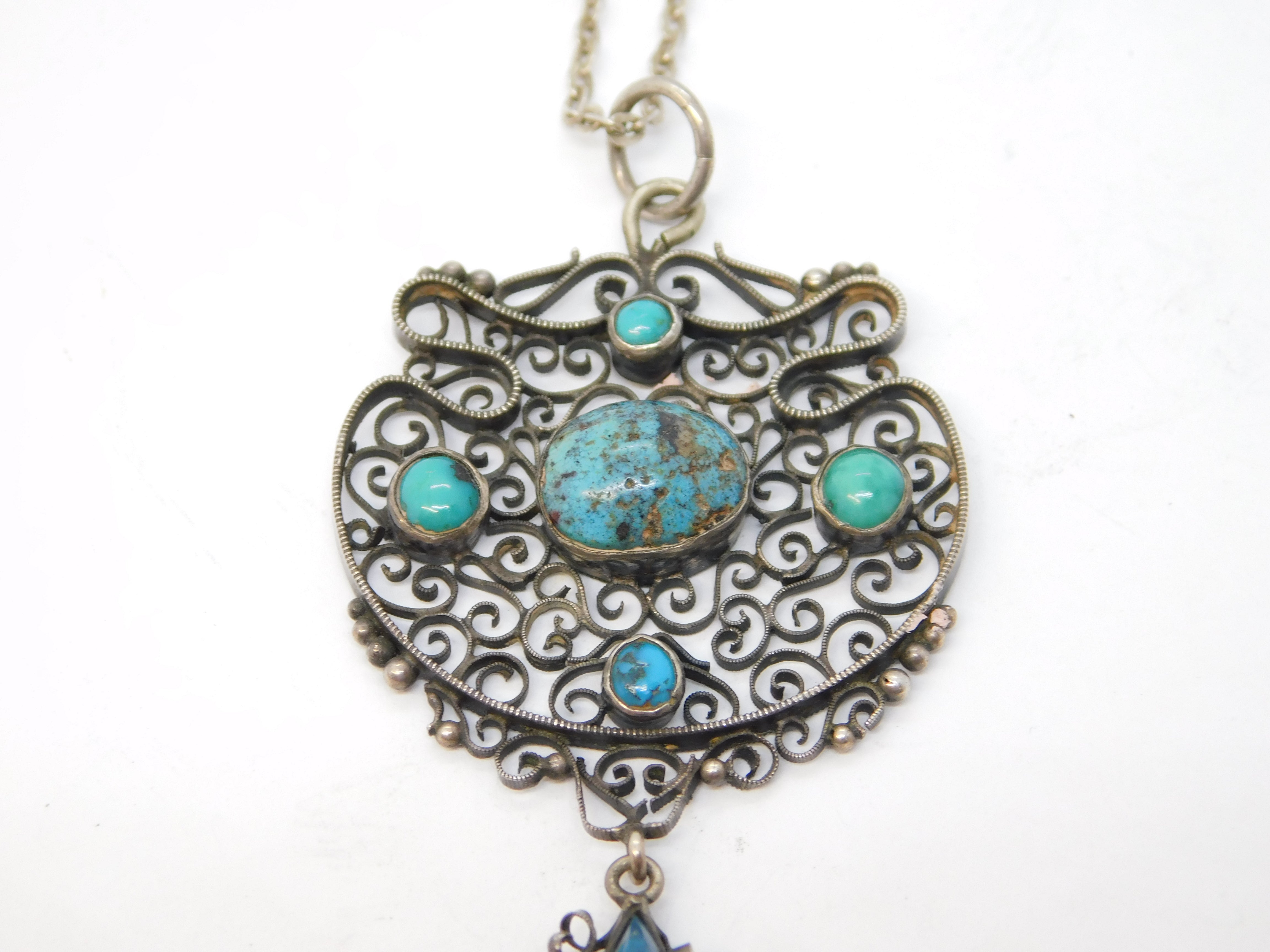 Austro-Hungarian Sterling Silver & Turquoise Pendant Necklace Antique c1860