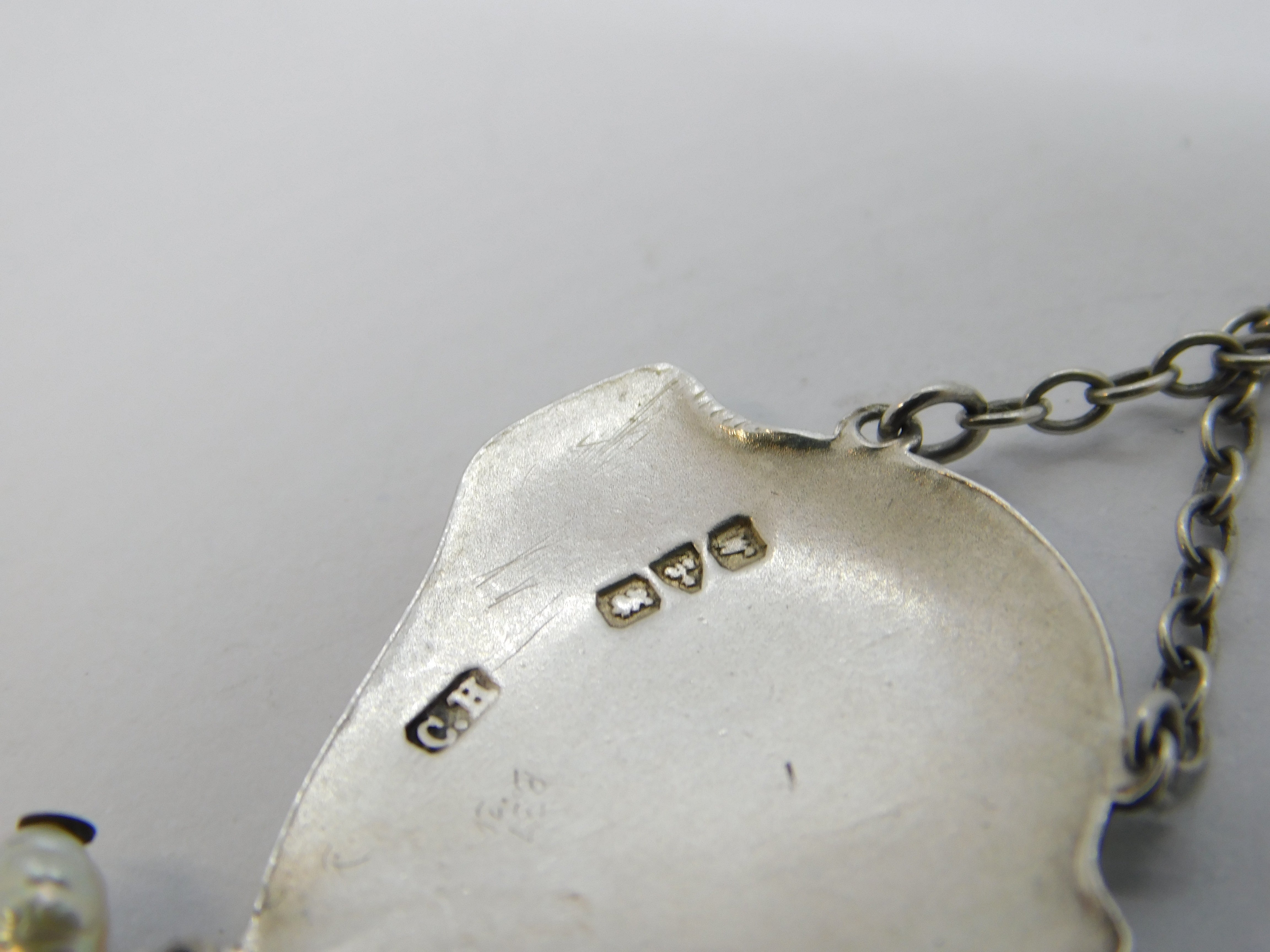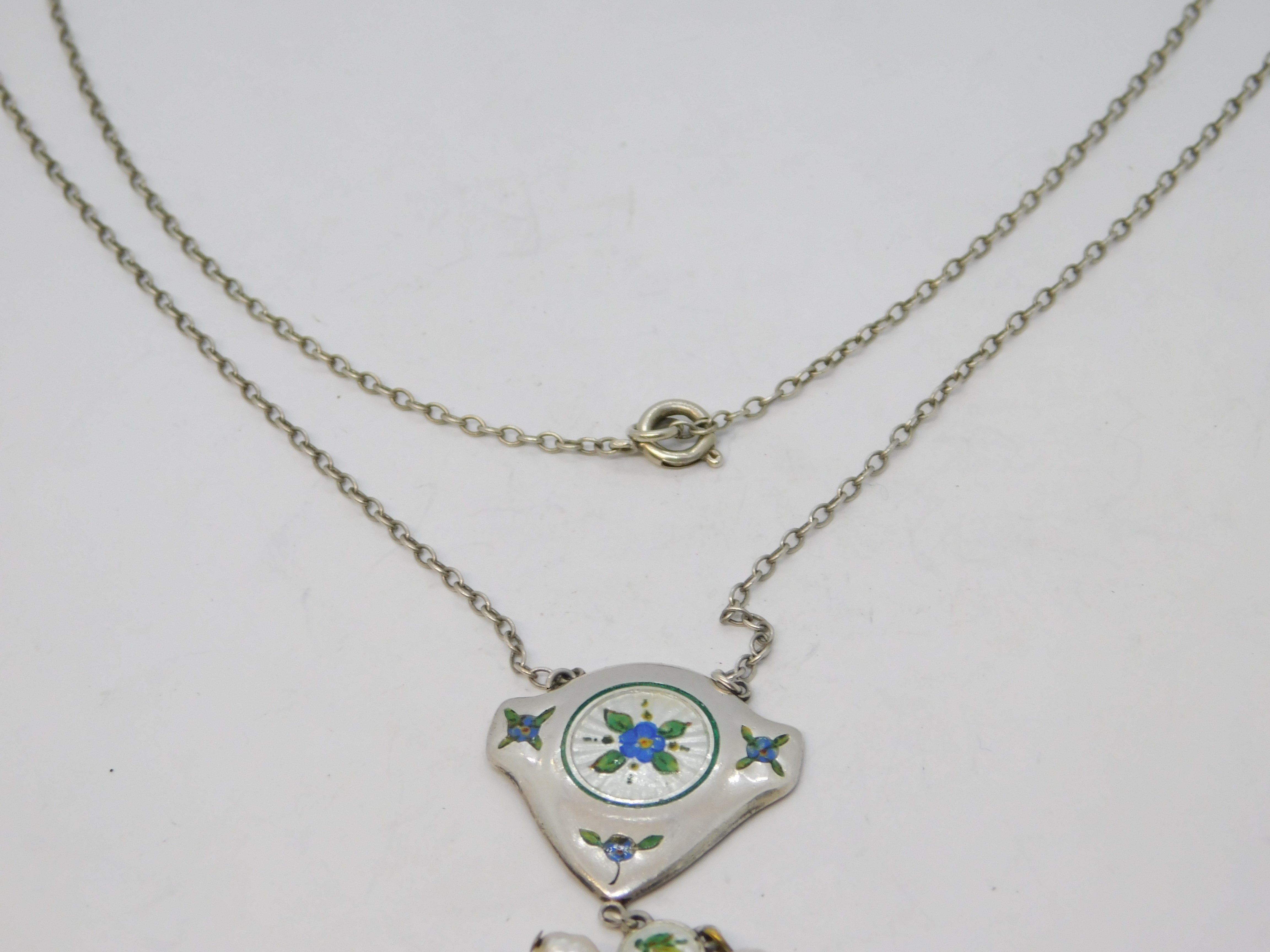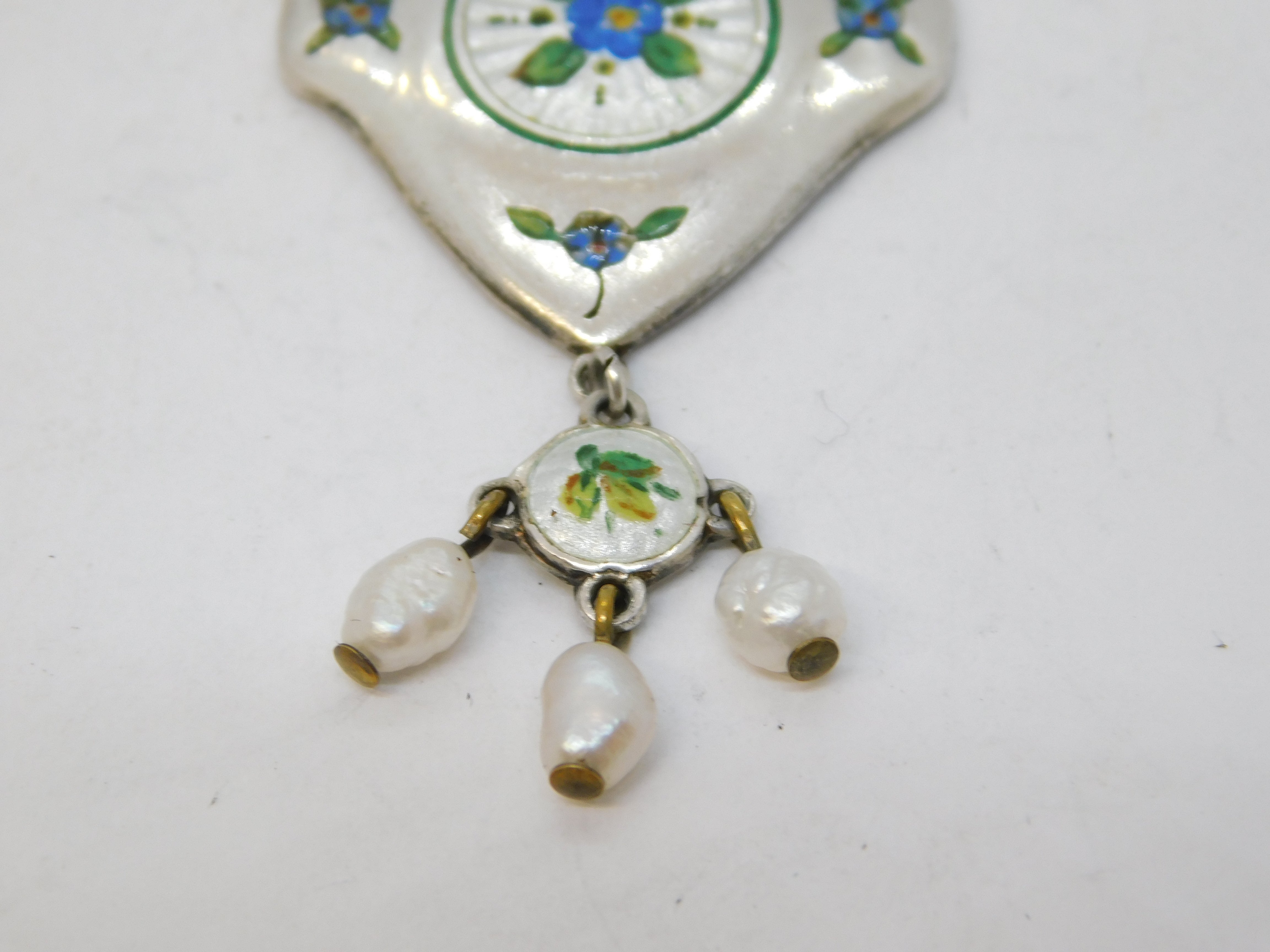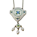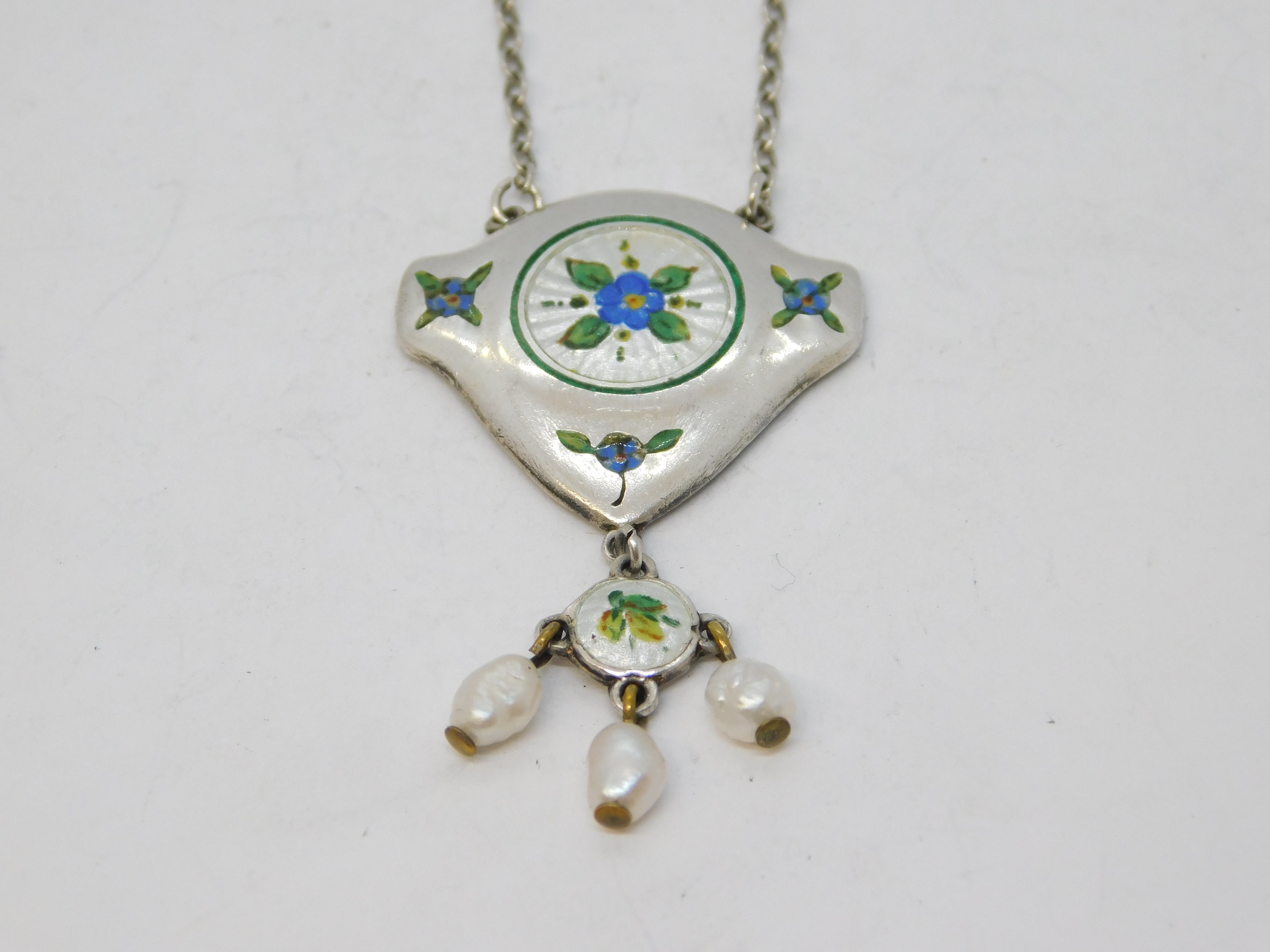 Charles Horner Sterling Silver, Enamel, Pearl Floral Lavalier Necklace Antique 1912 Chester