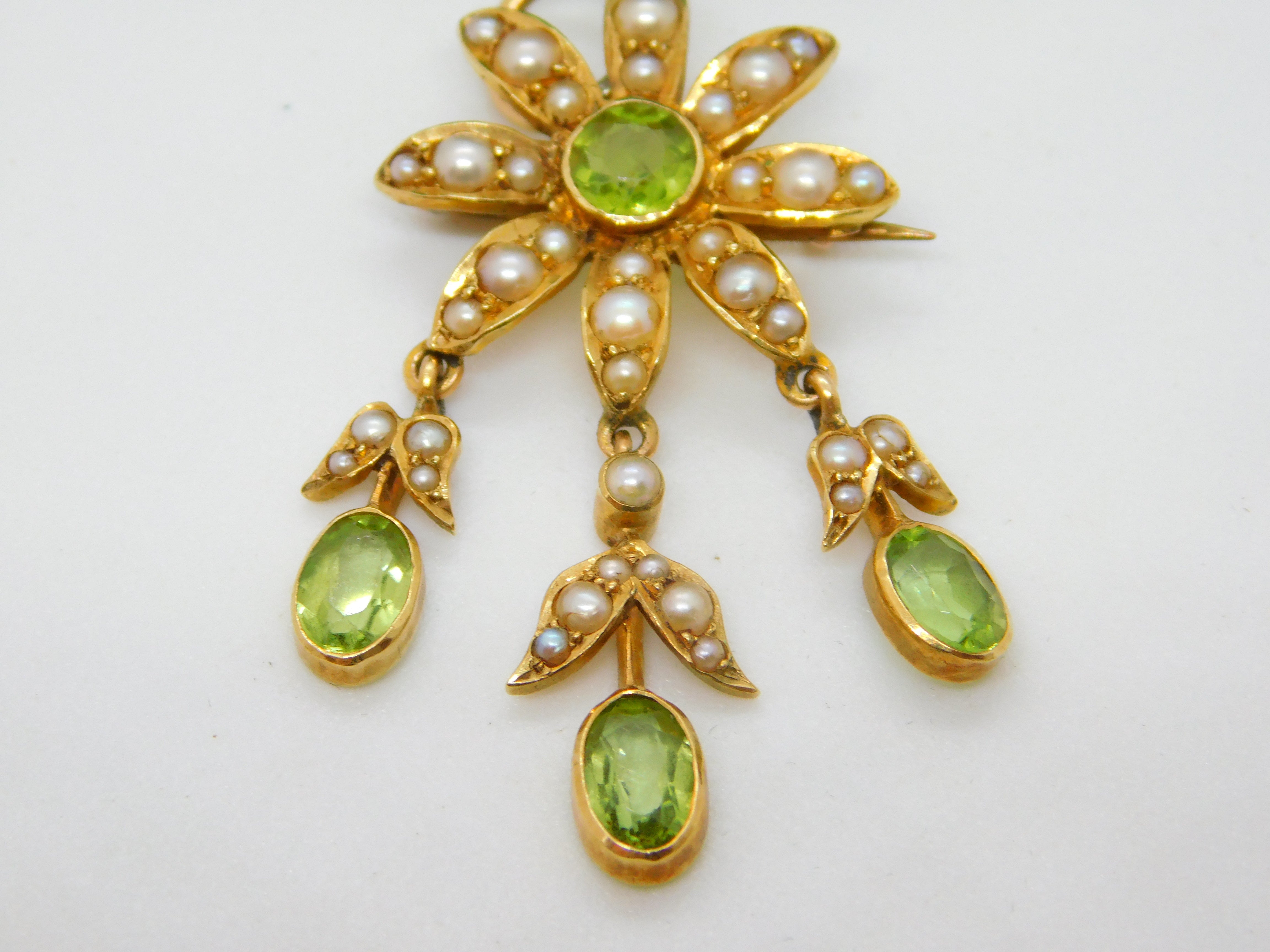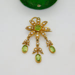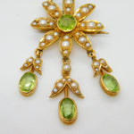 Edwardian 18ct Yellow Gold, Seed Pearl & Peridot Floral Lavalier Pendant Antique