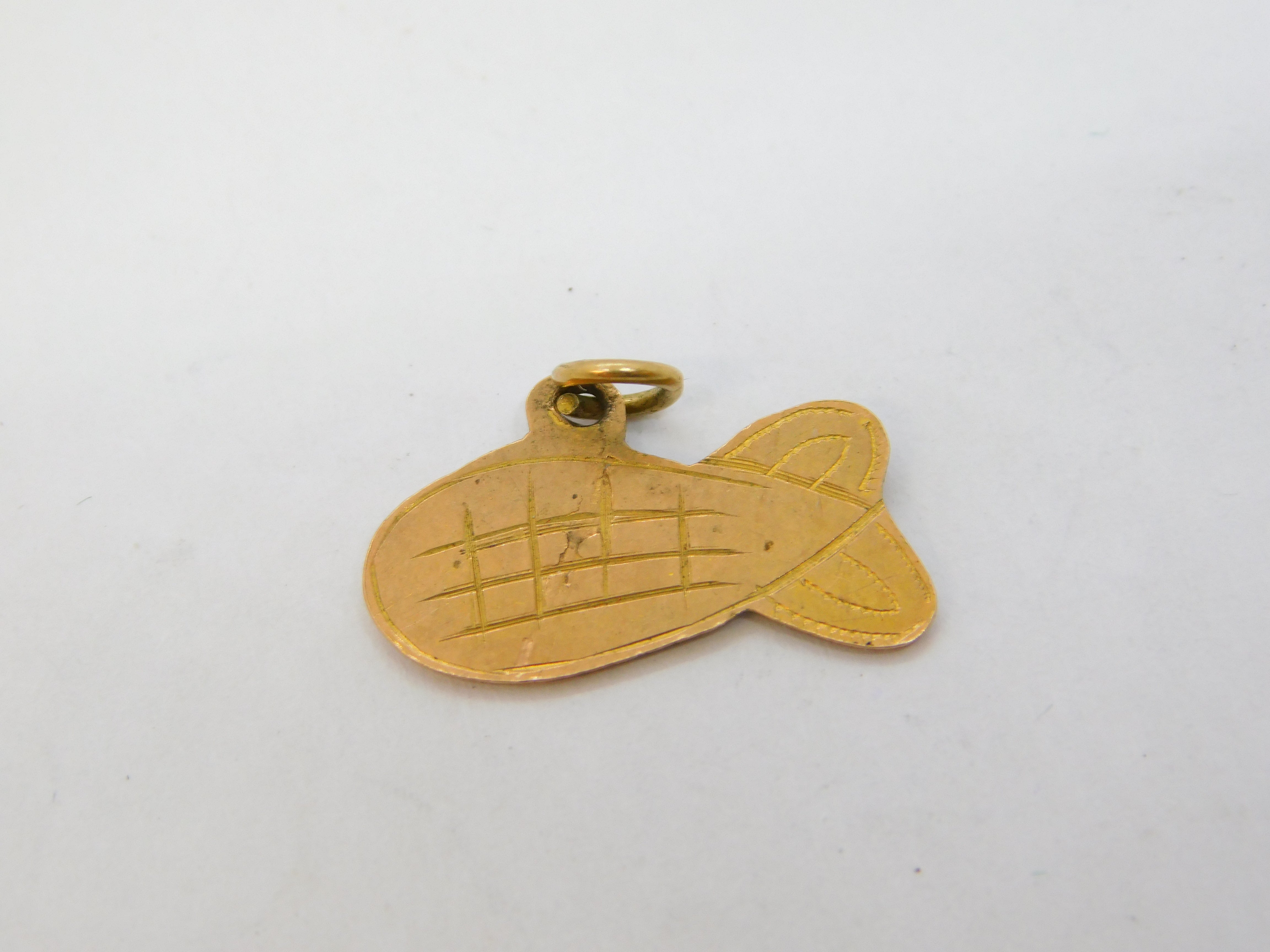 Edwardian 9ct Rose Gold Zeppelin Airship Charm Pendant Antique c1910