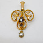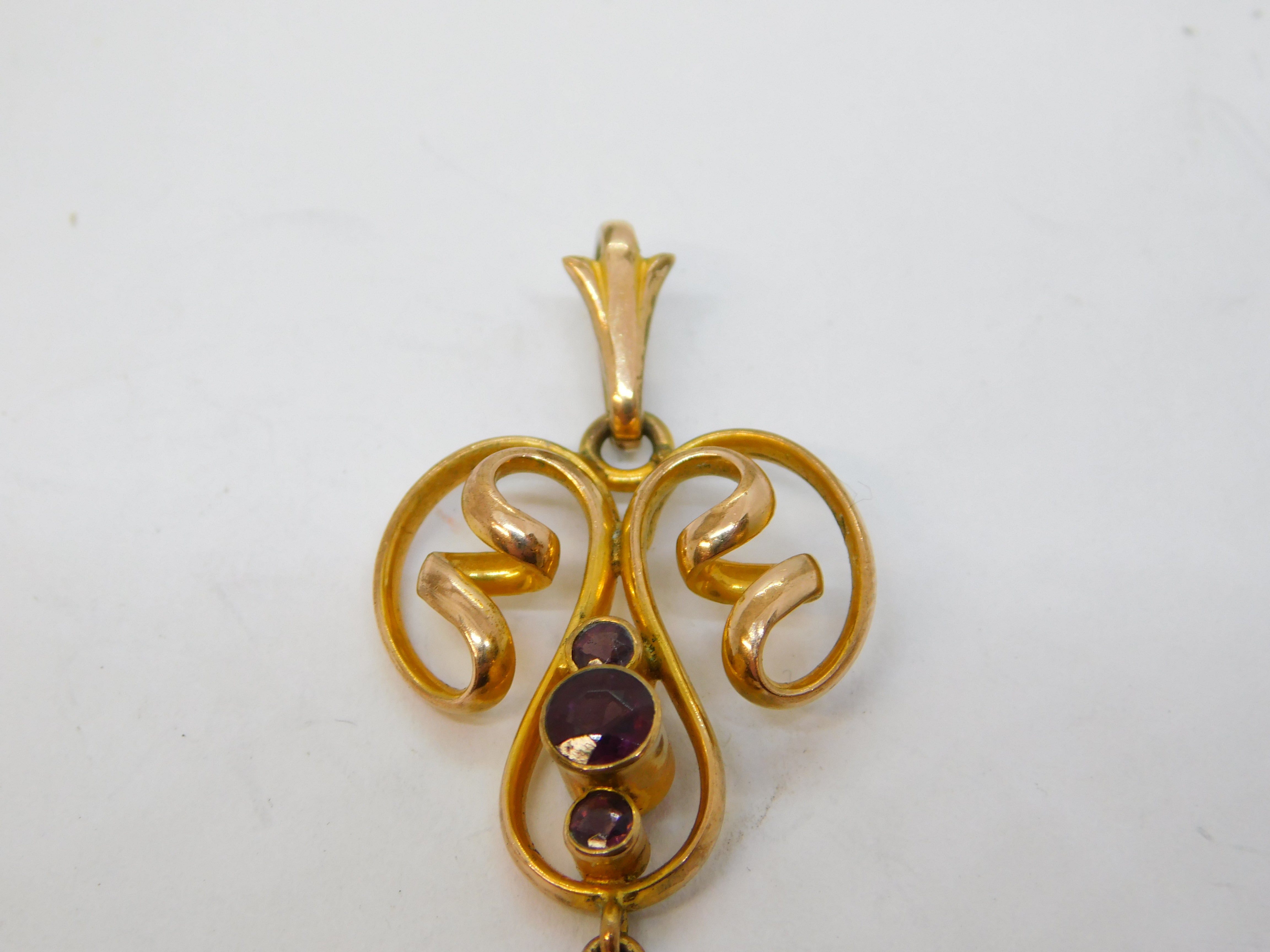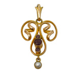Edwardian 9ct Yellow Gold, Garnet & Pearl Set Lavalier Drop Pendant Antique c1910