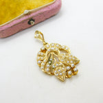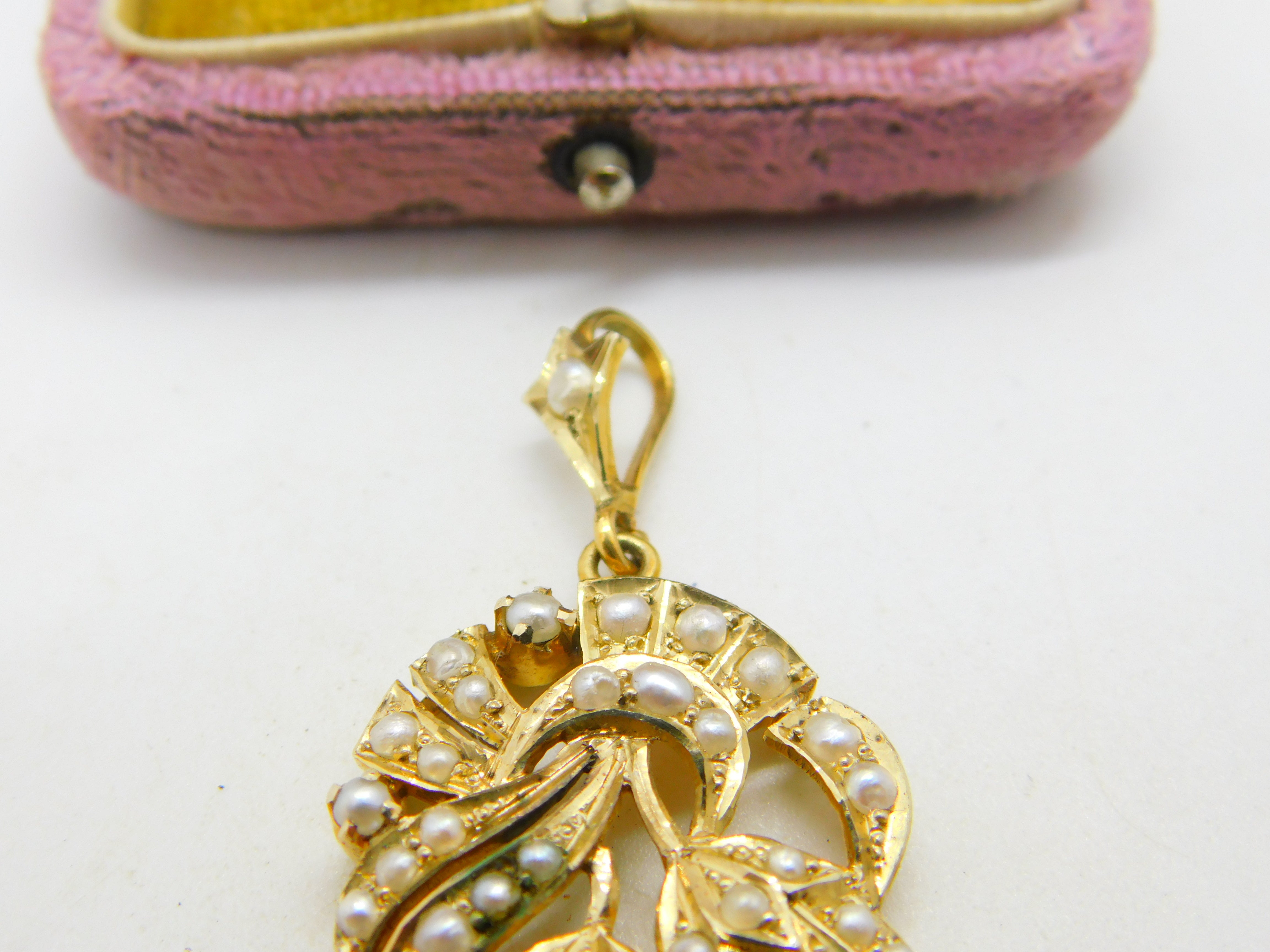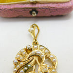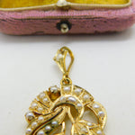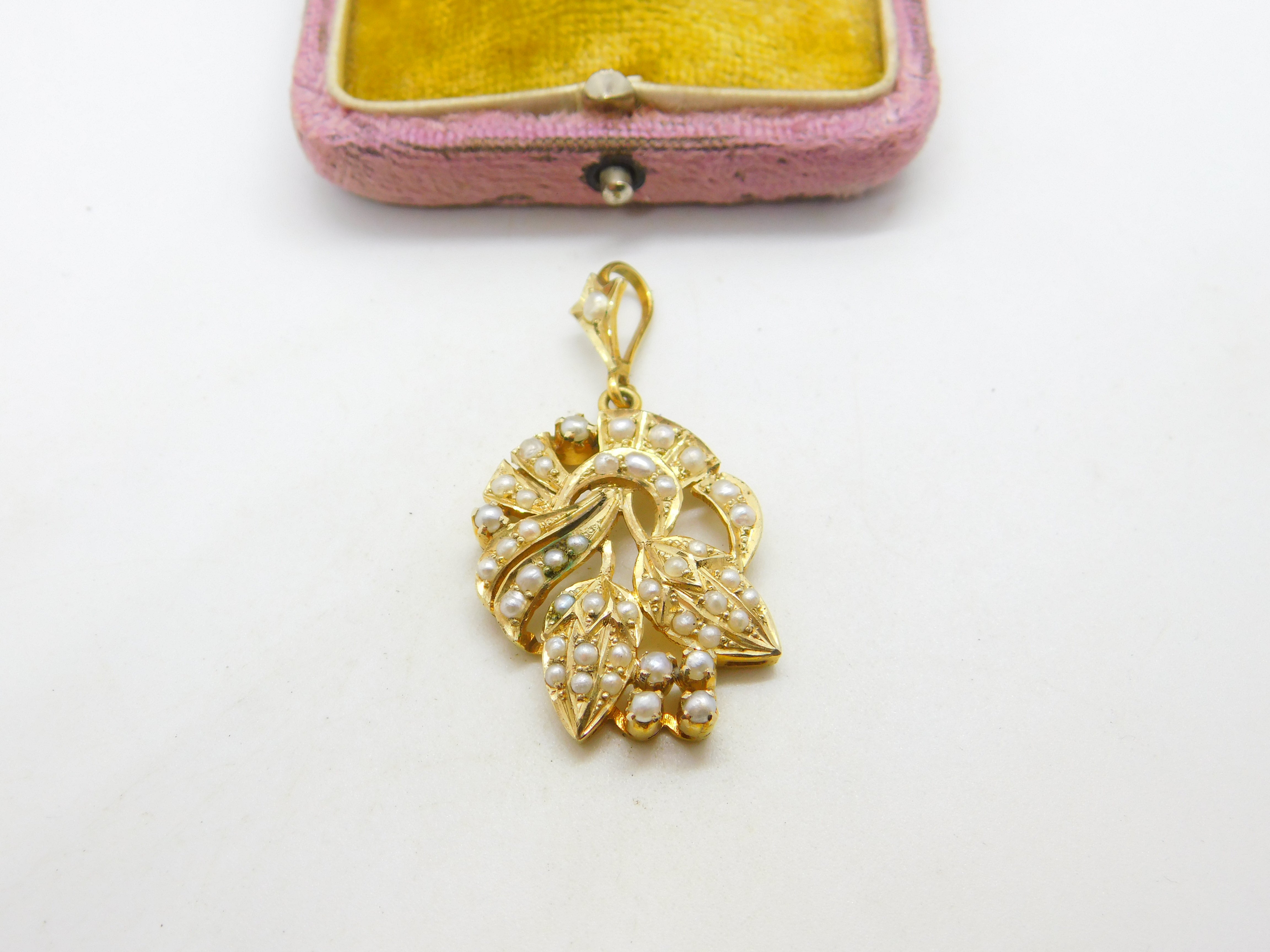 Edwardian 9ct Yellow Gold Seed Pearl Set Floral Drop Pendant Antique c1910