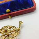 Edwardian 9ct Yellow Gold Seed Pearl Set Floral Drop Pendant c1910 Antique