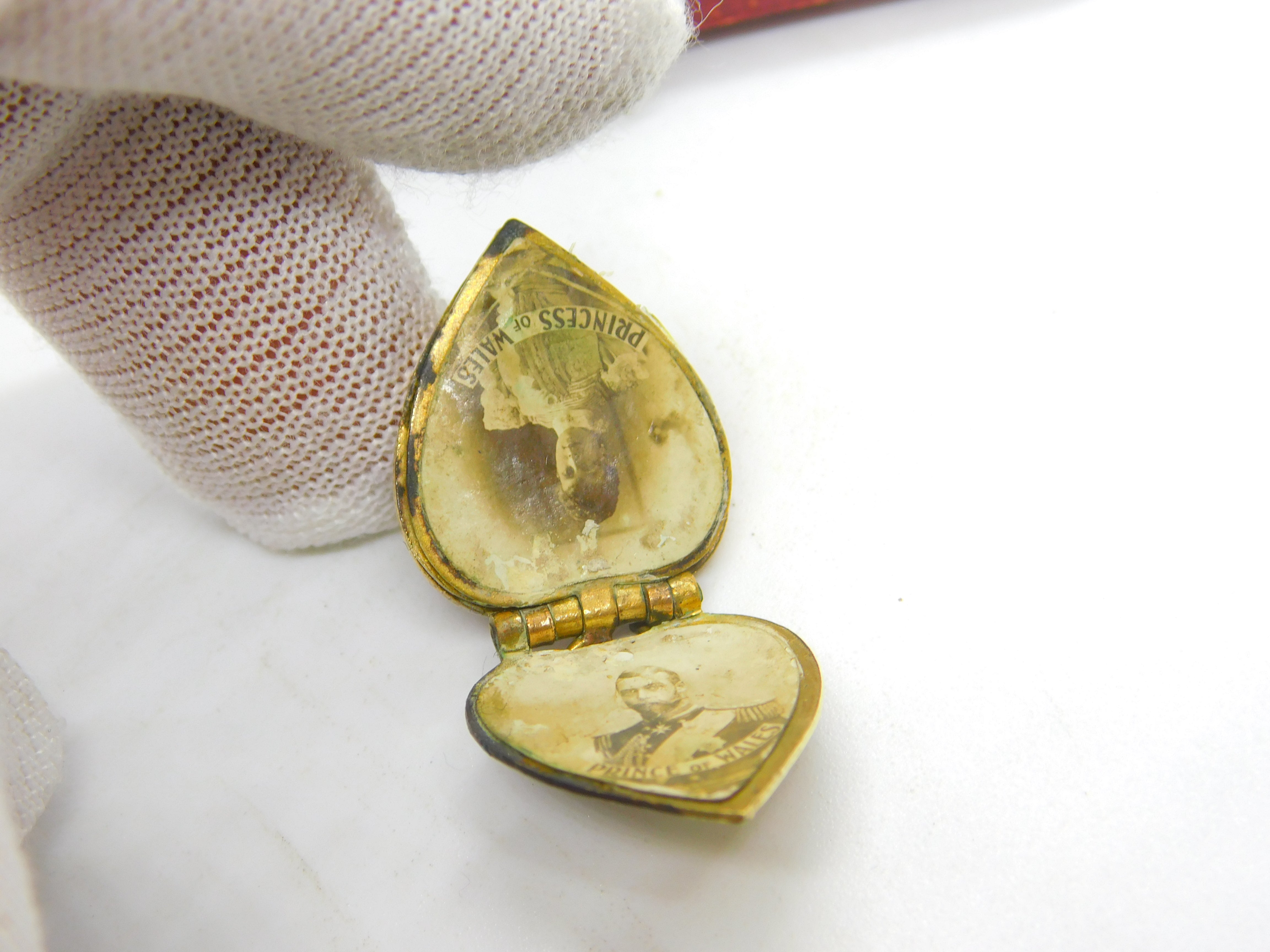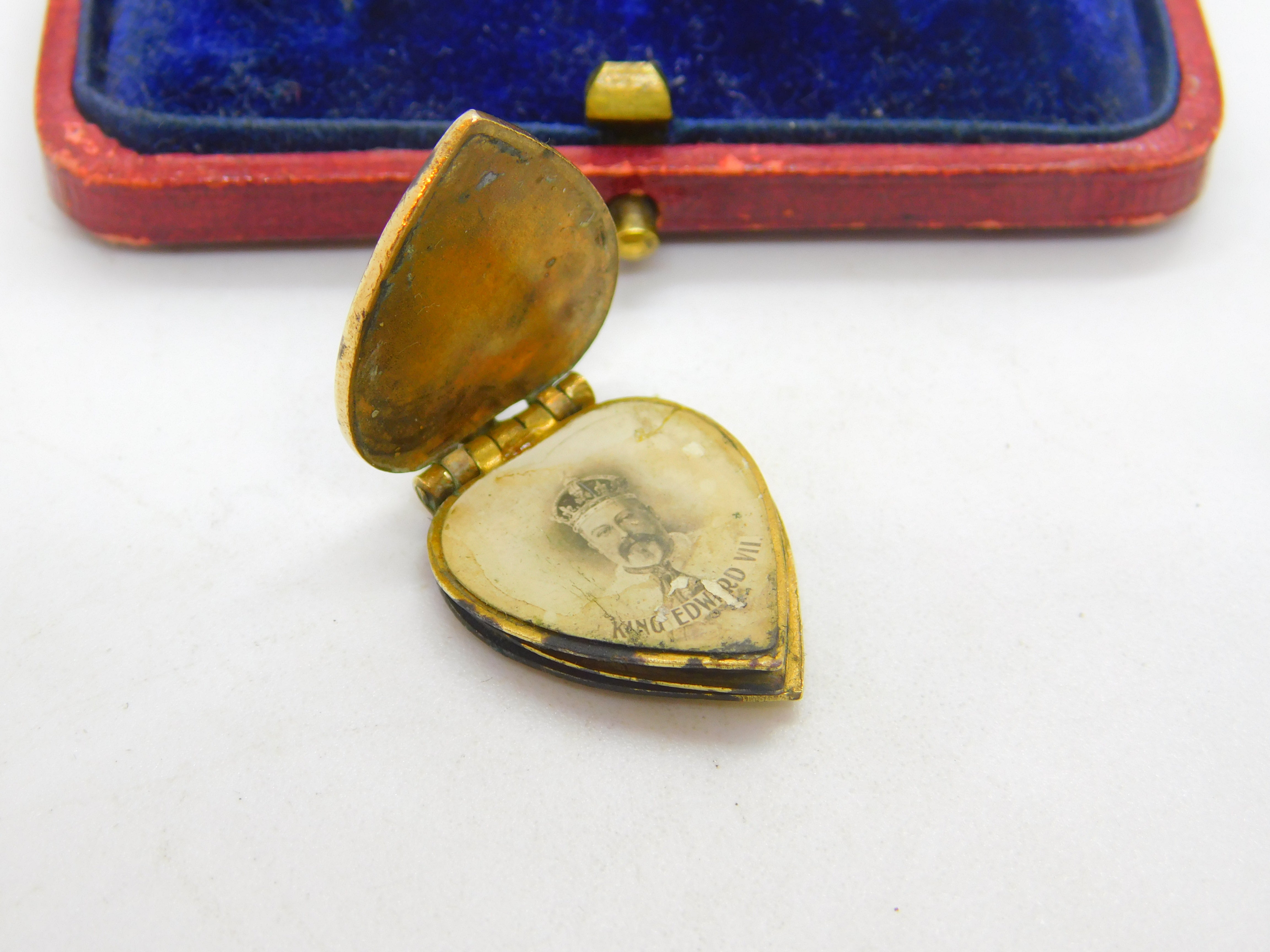 Details: A fantastic and wonderfully designed antique Edwardian gilt metal & red enamel King Edward VII coronation heart shaped photo book charm with super detailing c1902 - clear tarnishing to the reverse but a lovely and unique example. This is a wonderful item that would make a perfect gift or addition to any collection. The BOX pictured is for PRESENTATION ONLY and is NOT included in the listings but used to frame the pictures unless specifically stated otherwise.