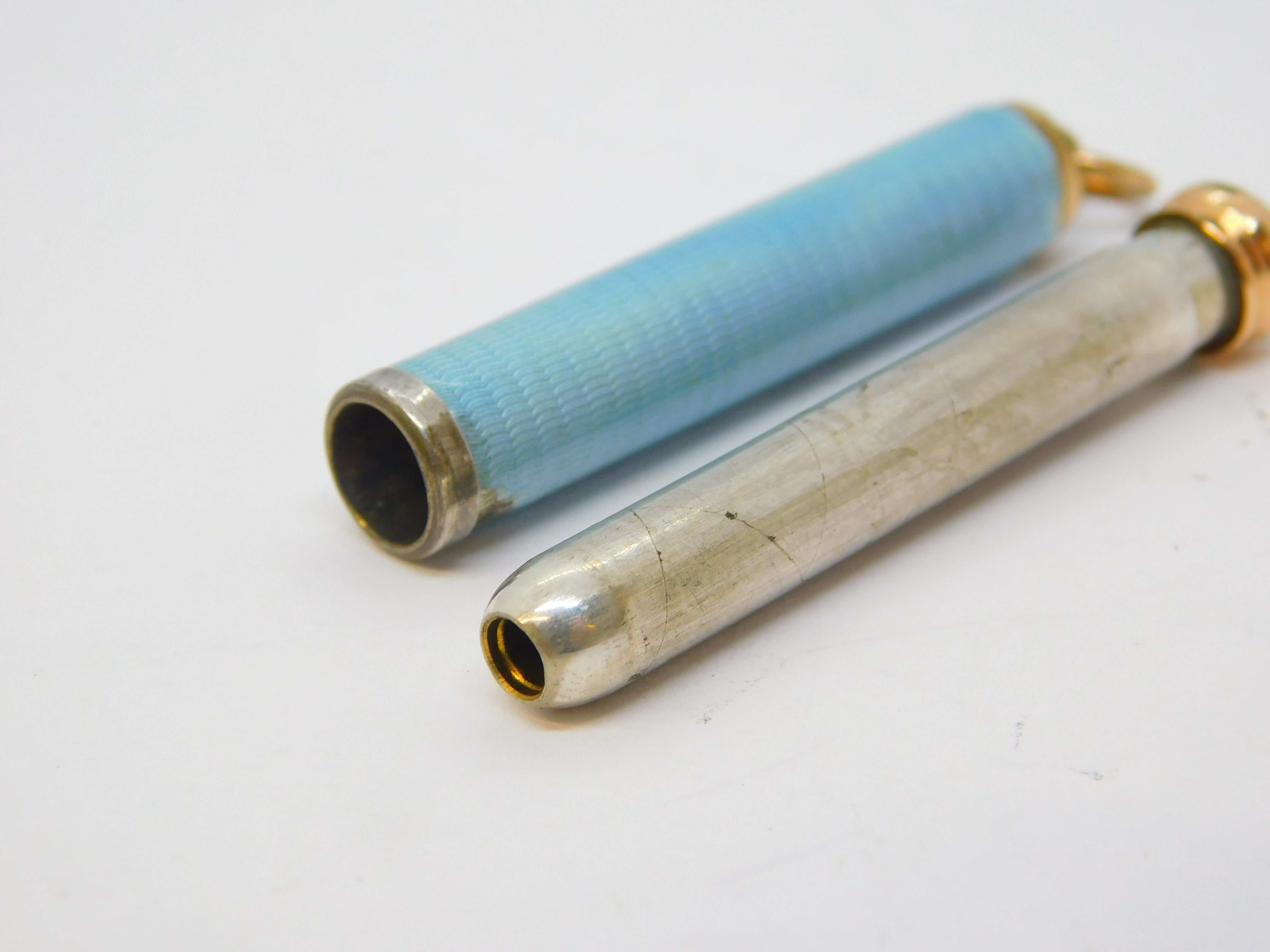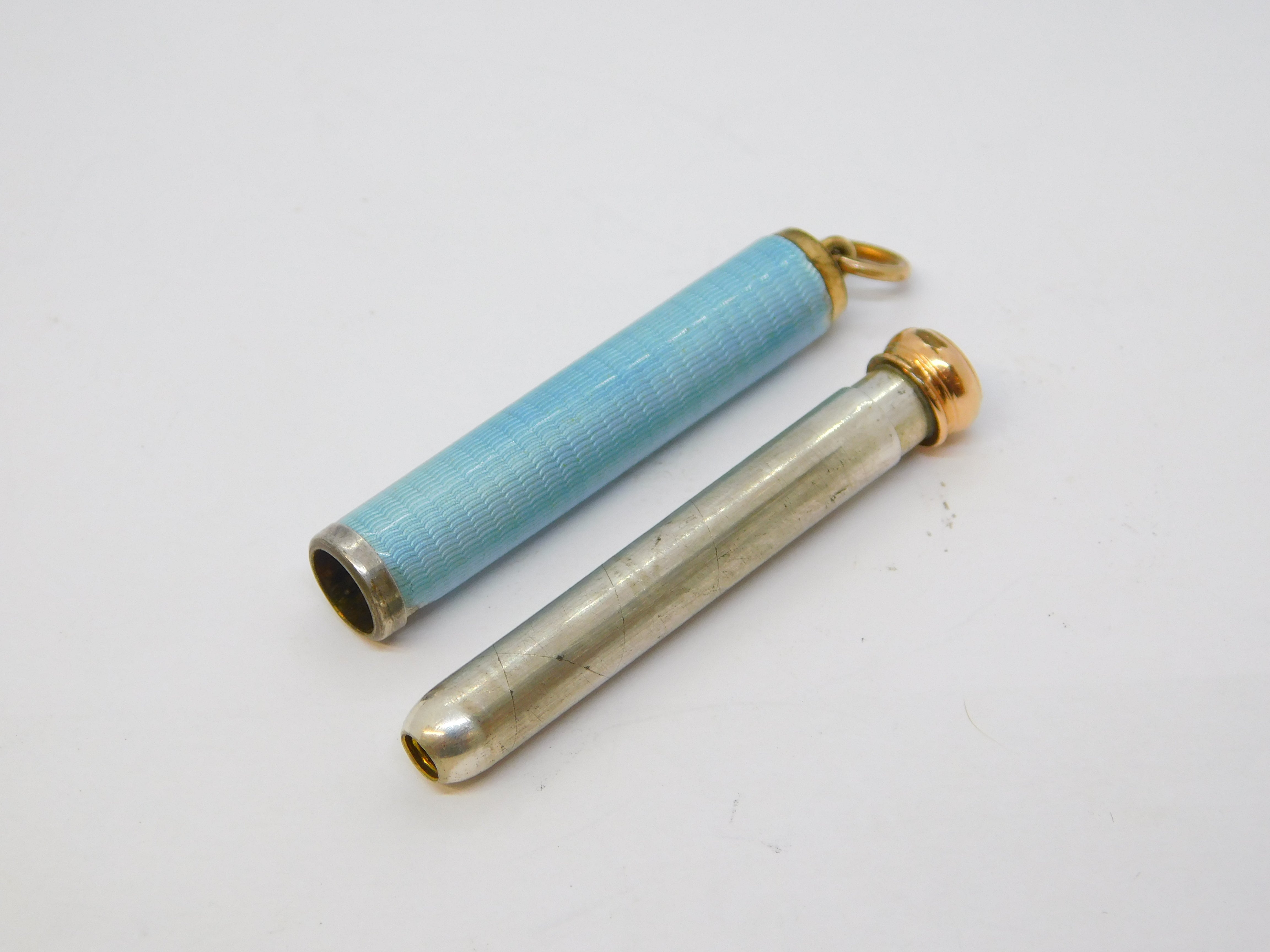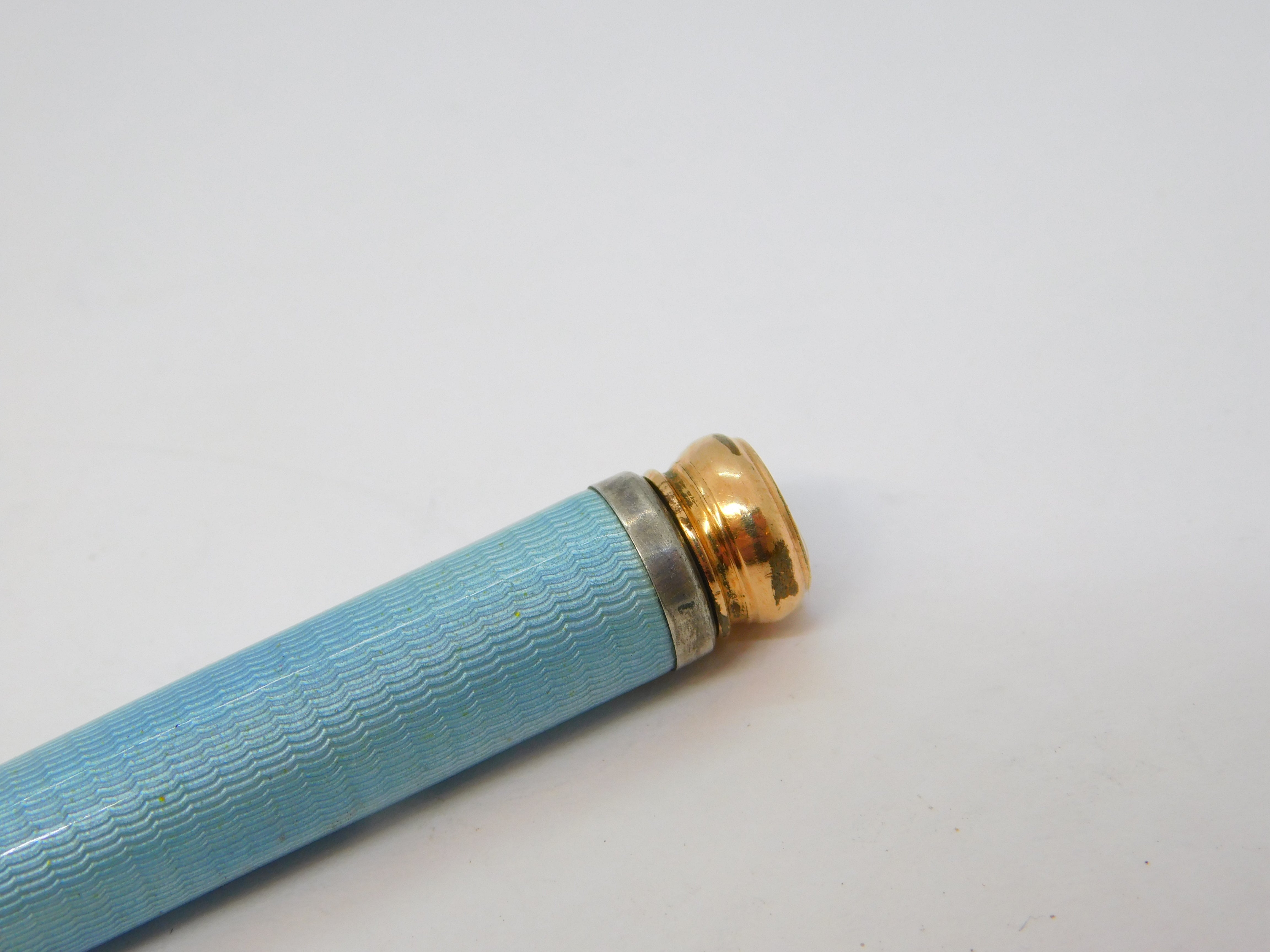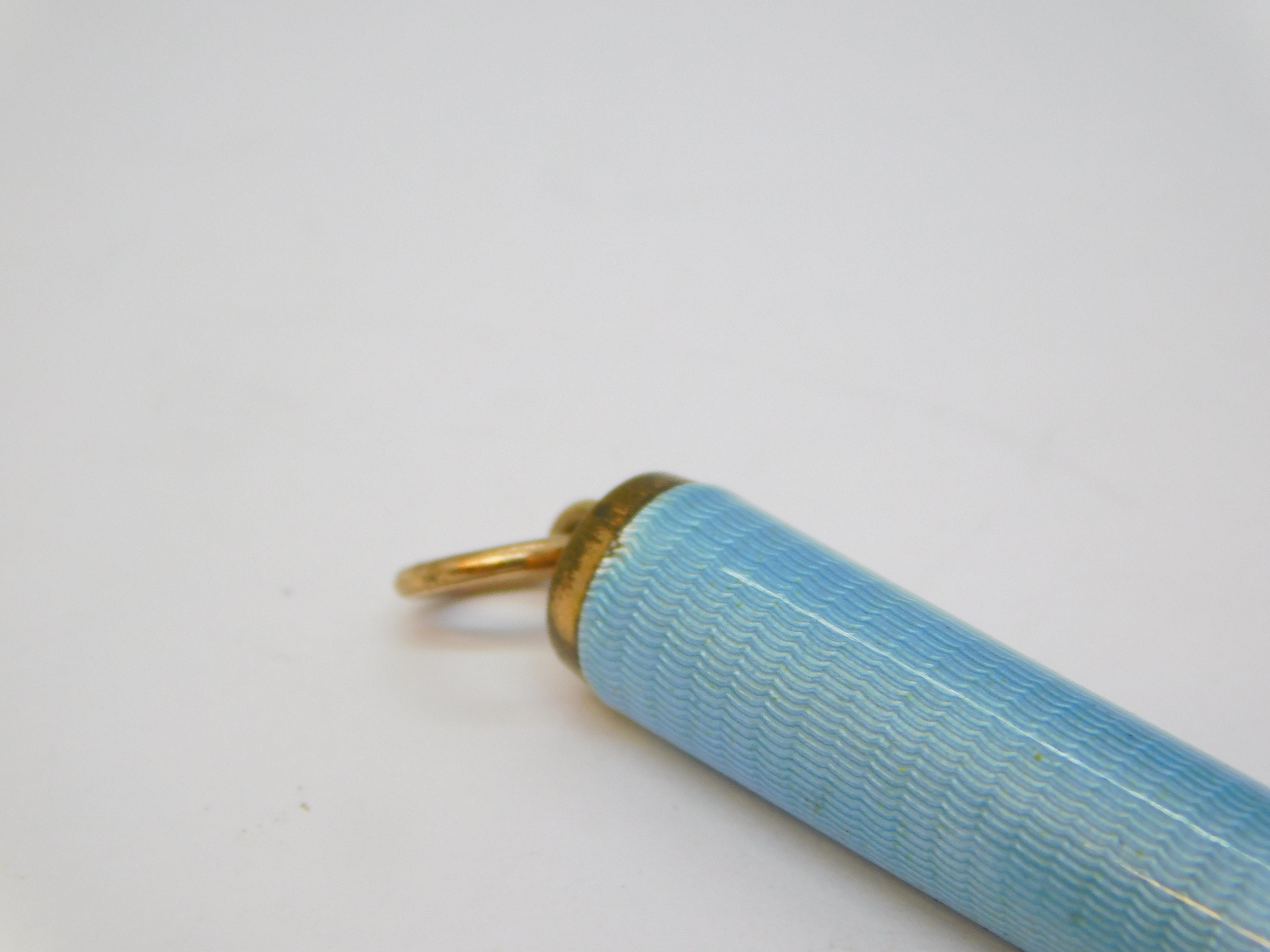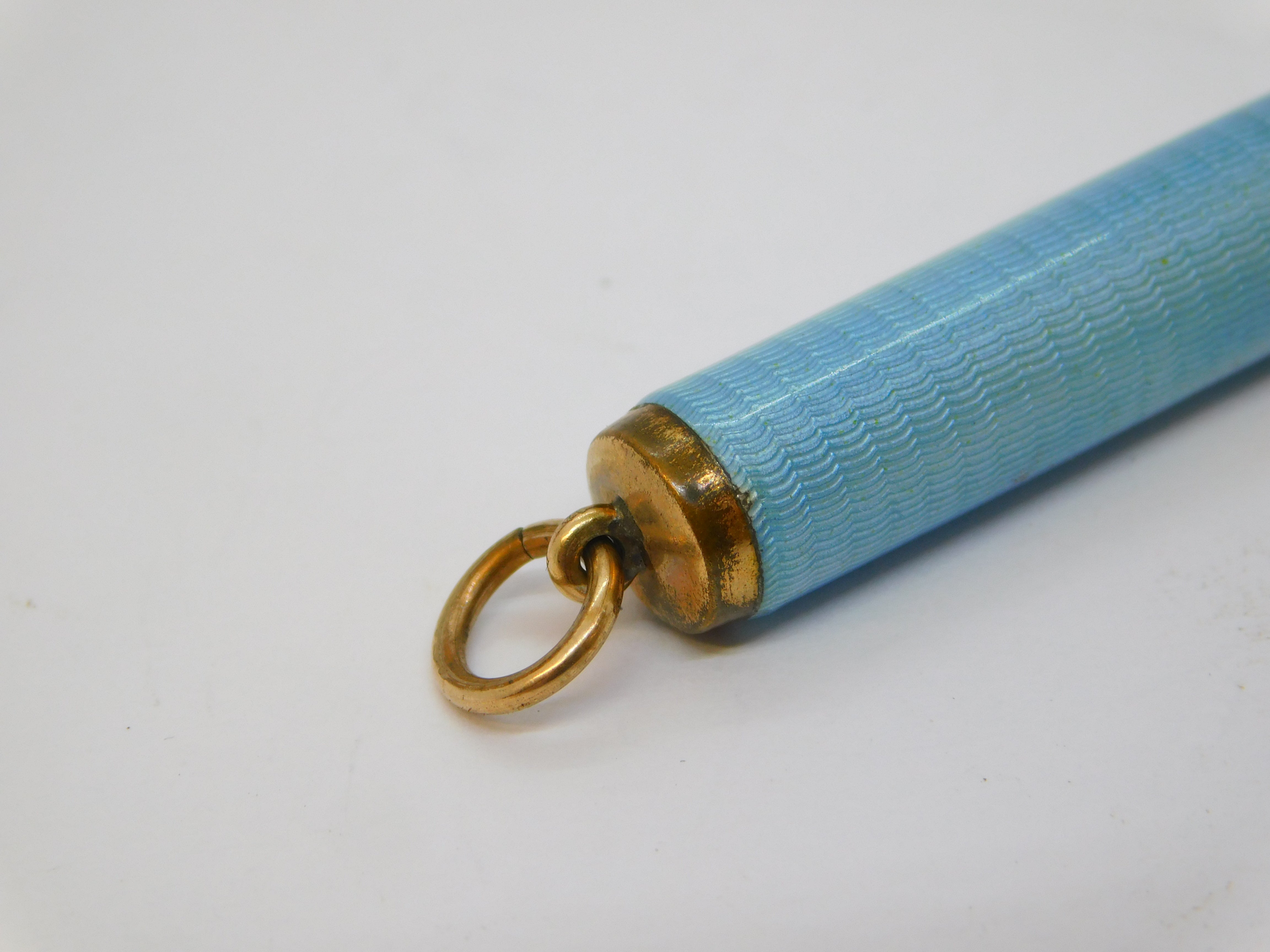Edwardian Rolled Gold Blue Guilloche Enamel Pencil Holder Fob Antique c1910