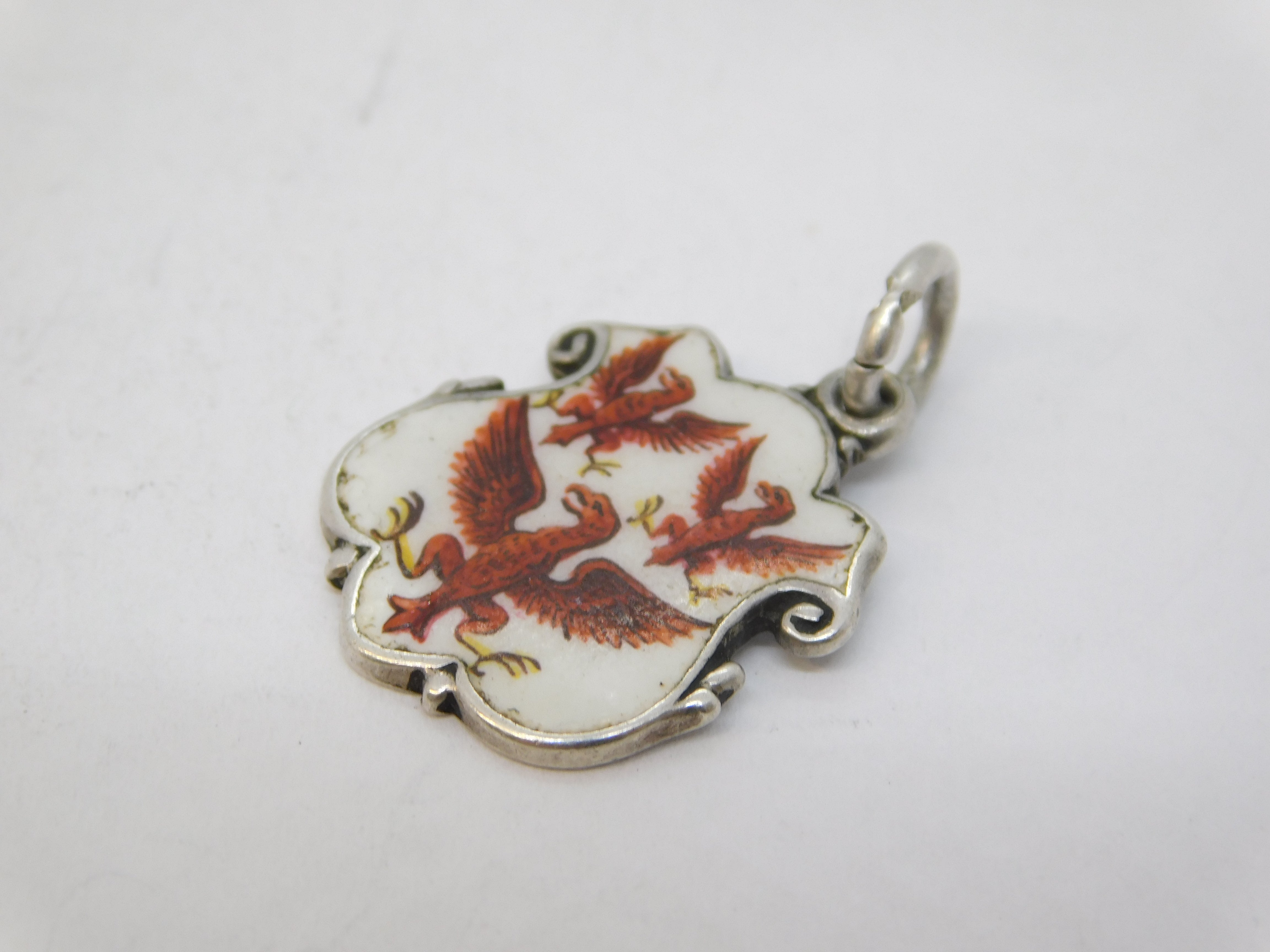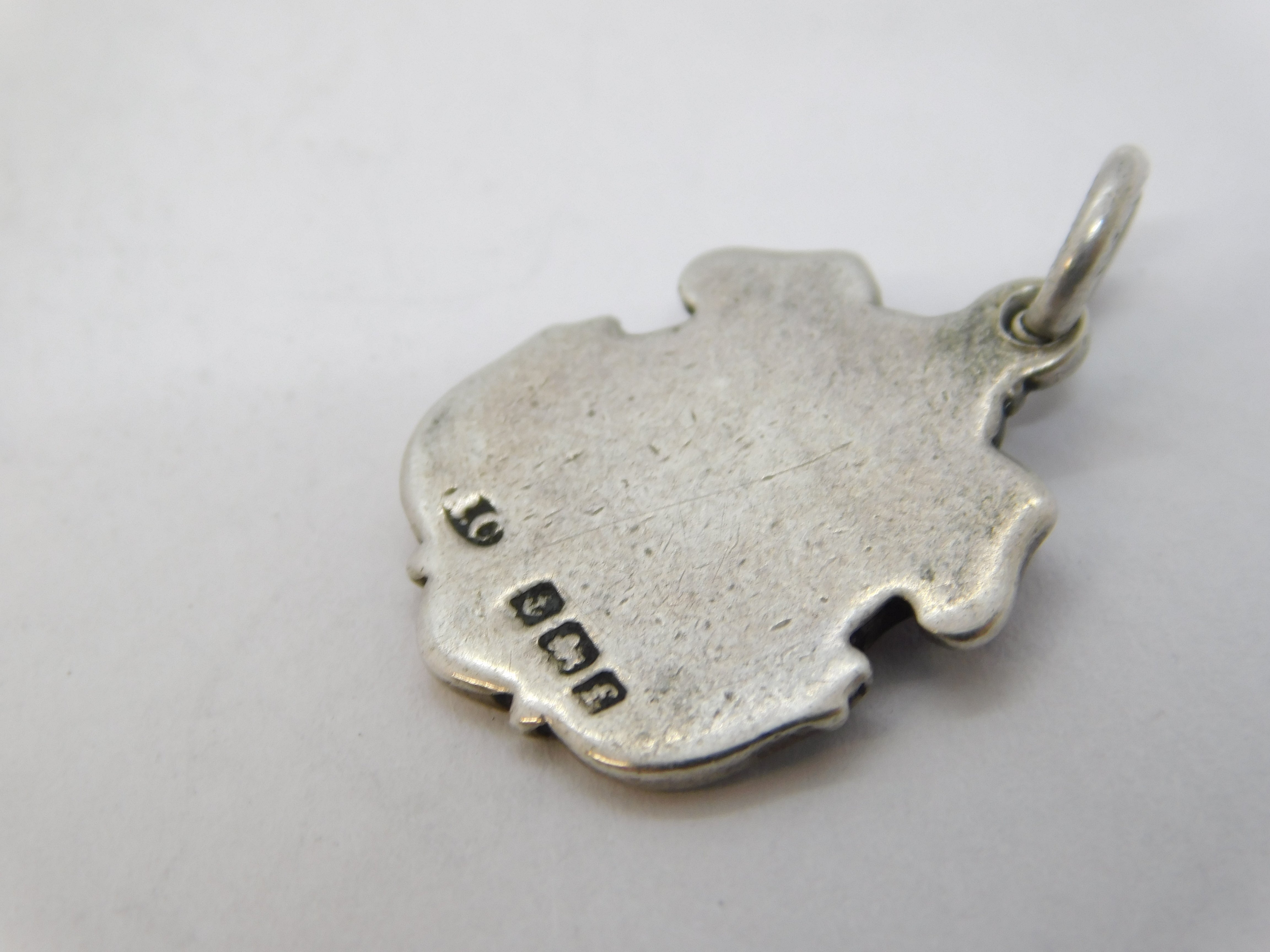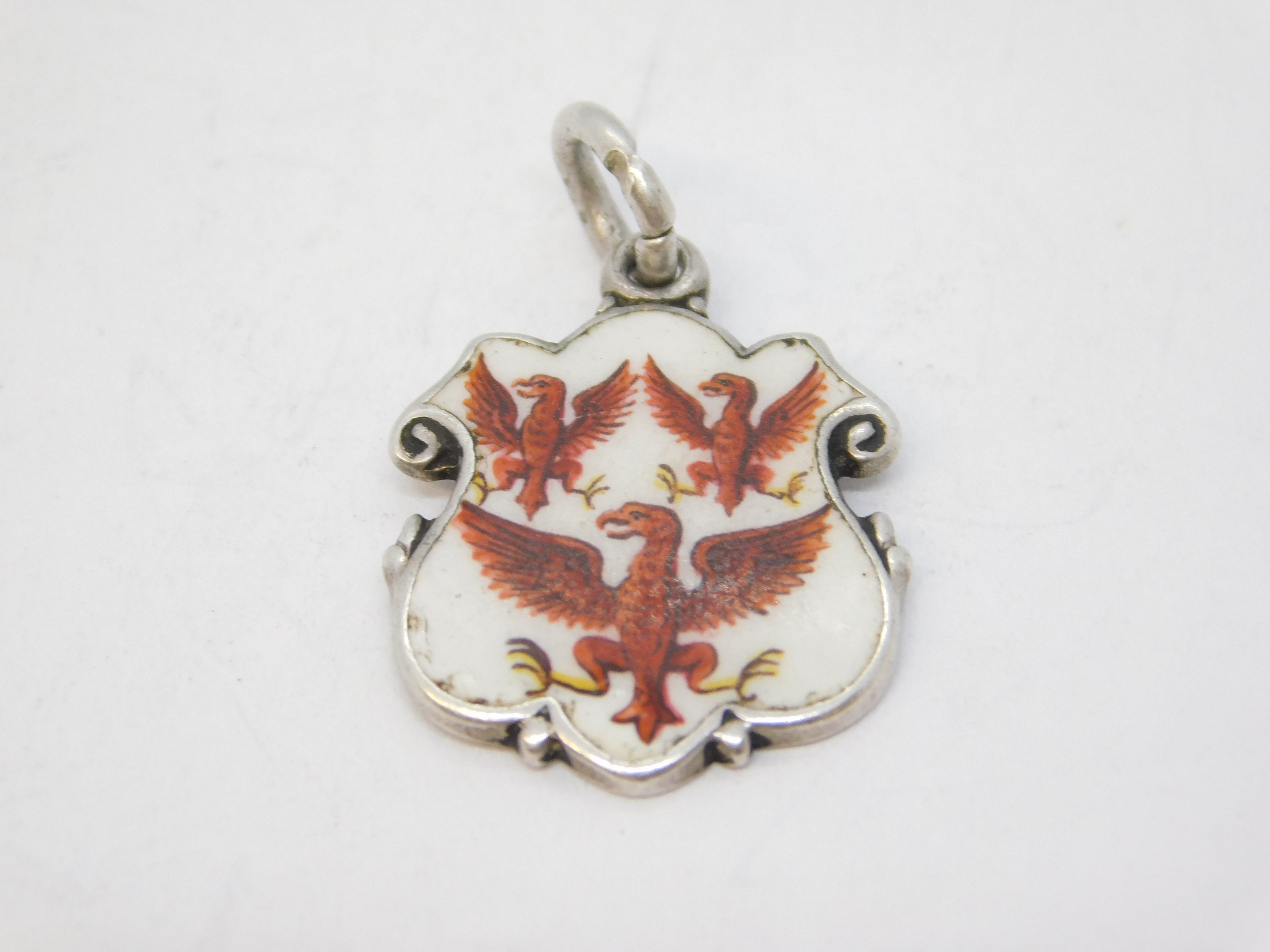 Edwardian Sterling Silver Enamel Heraldic Crest Shield Pendant Antique 1905 Birmingham