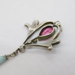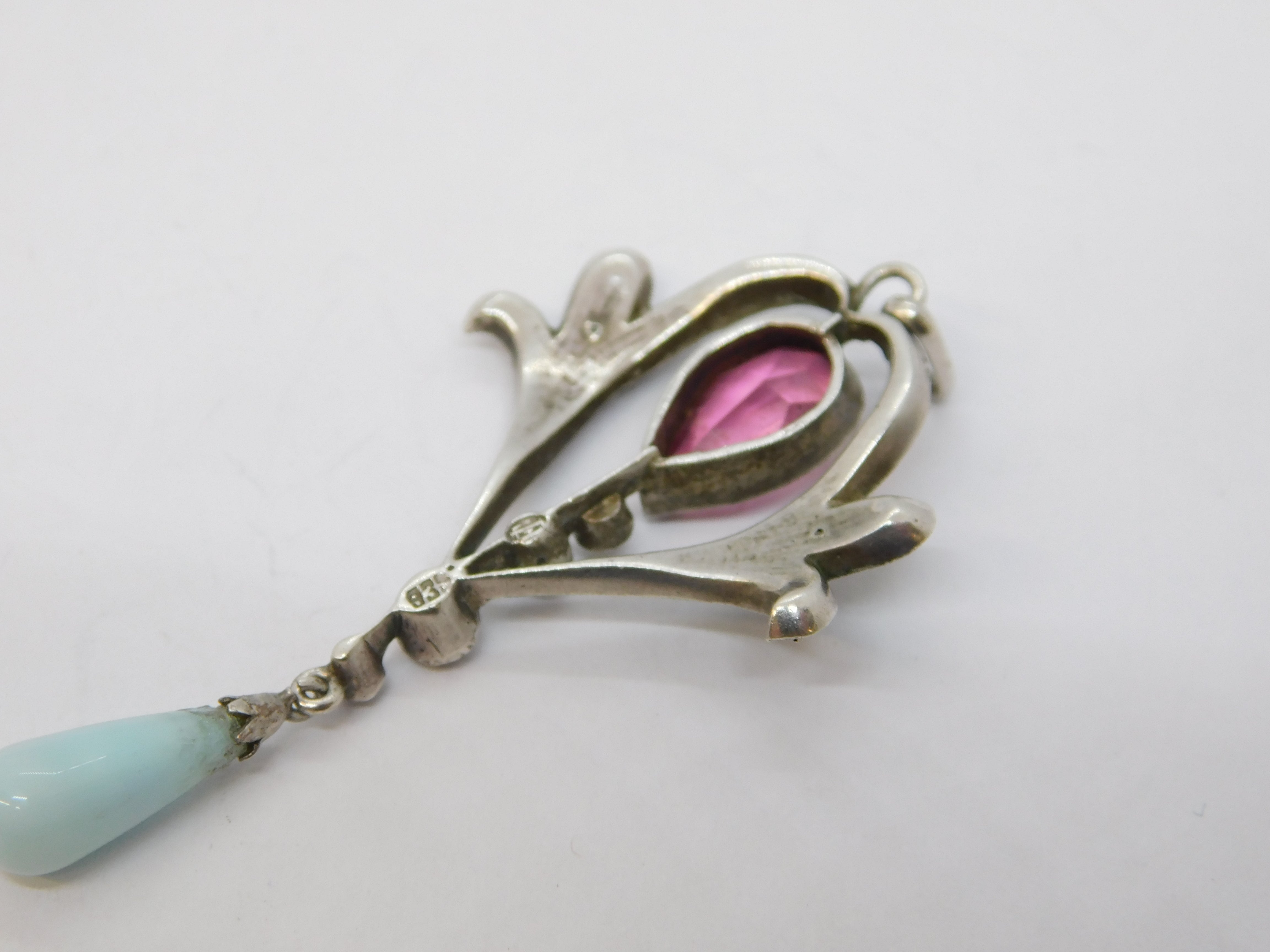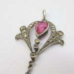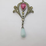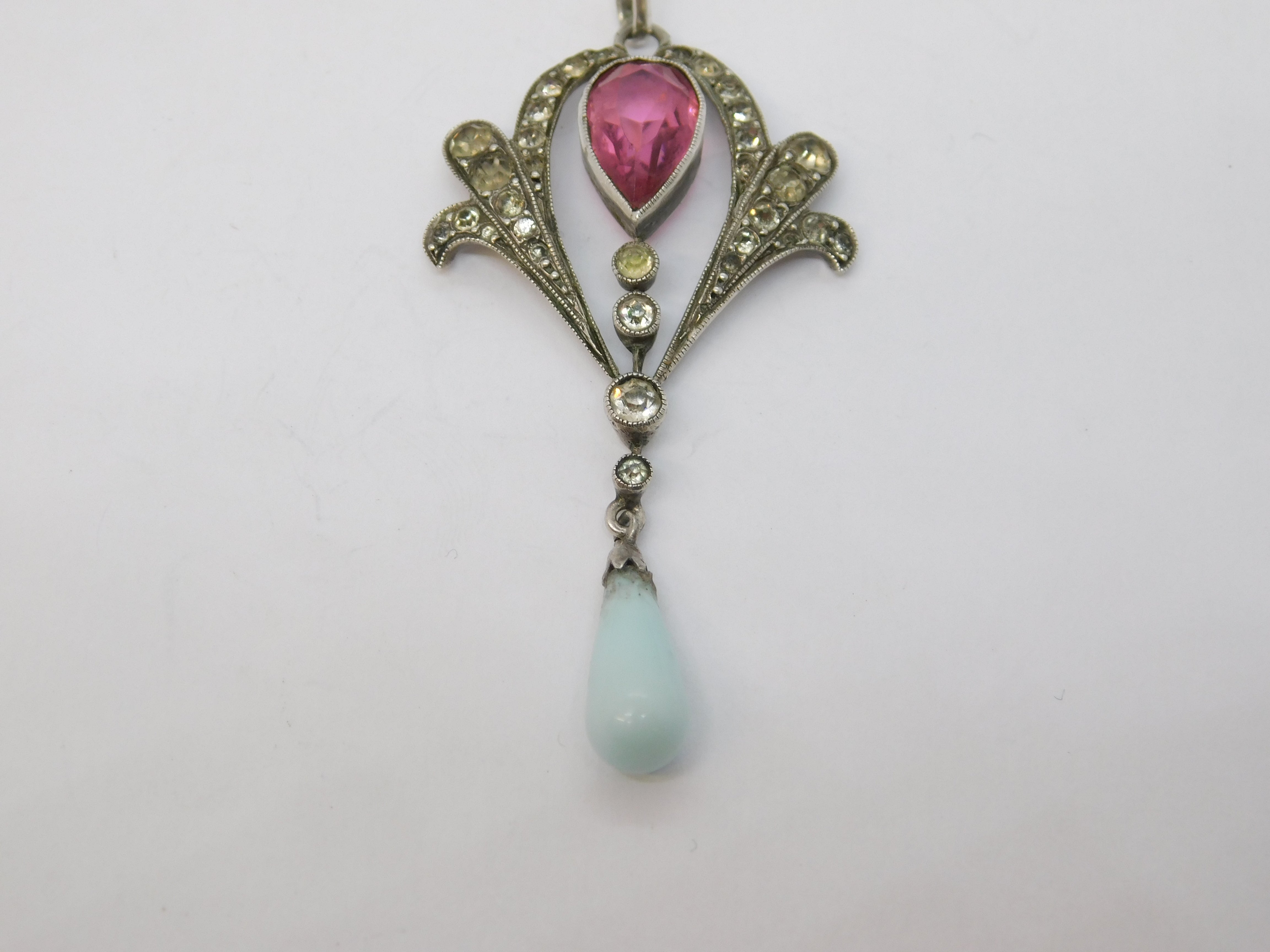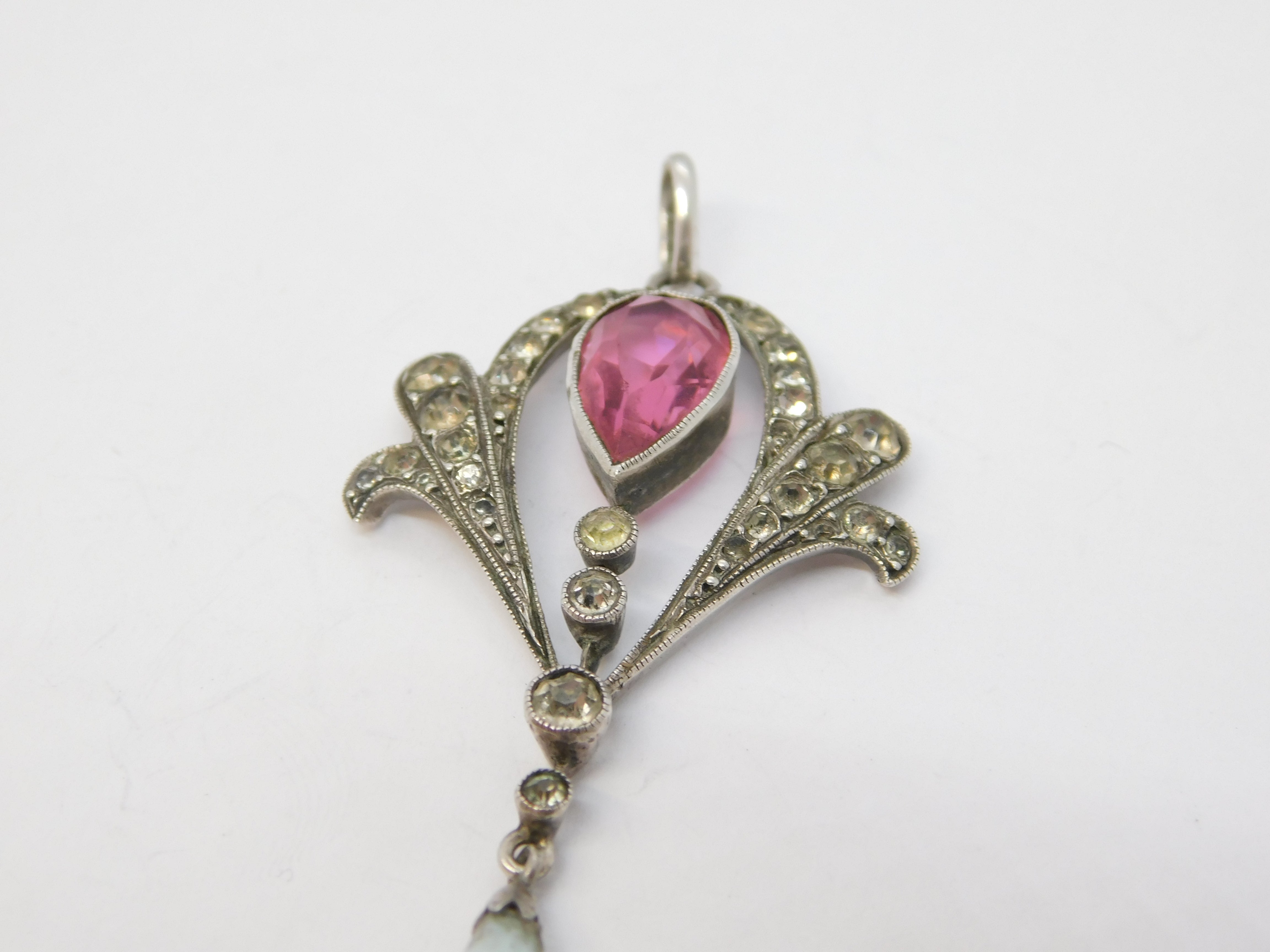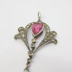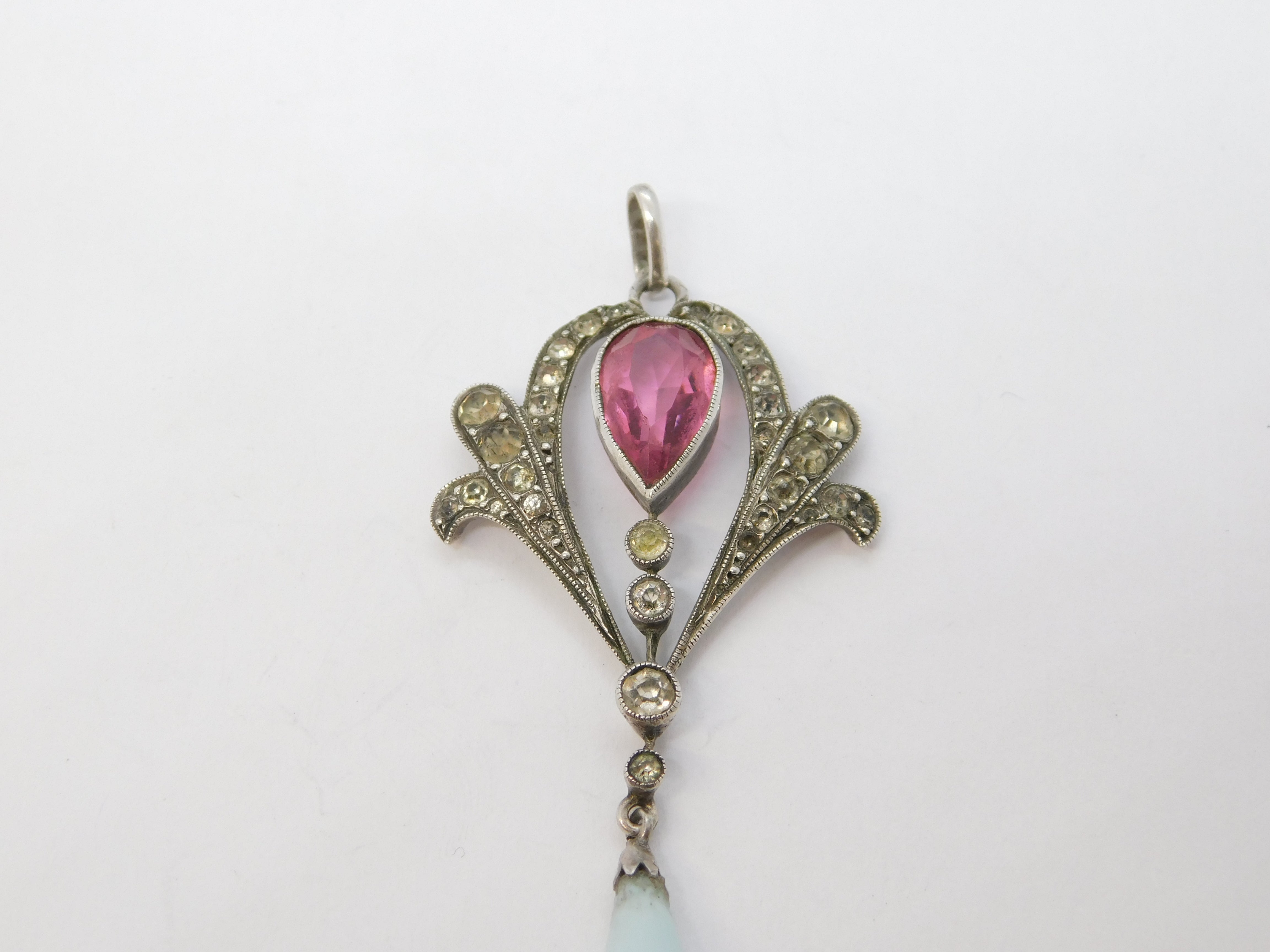 Edwardian Sterling Silver, Pink-White Paste & Glass Lavalier Pendant Antique c1910